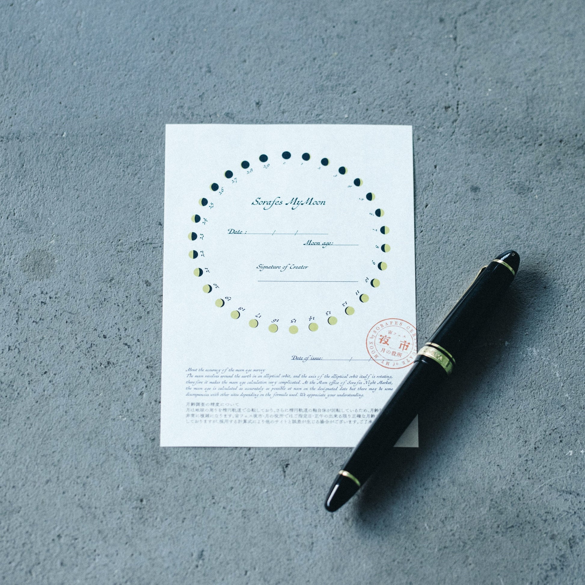 宙フェス夜市「月の役所」が発行するMyMoon証明書付き。