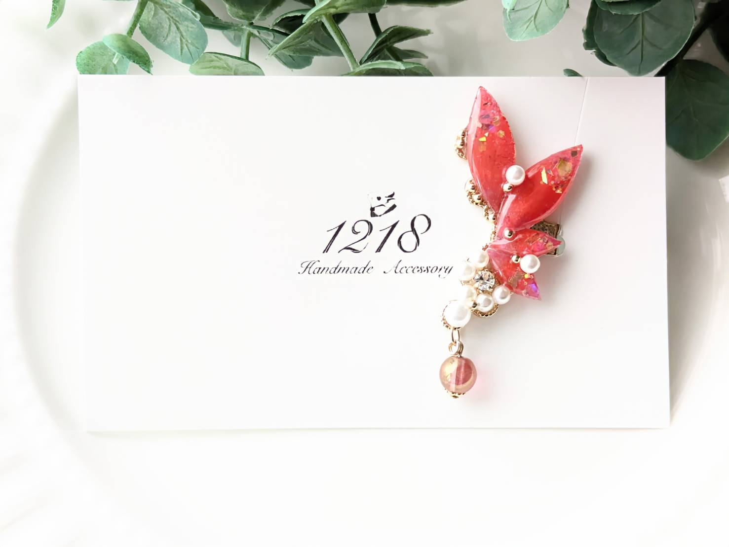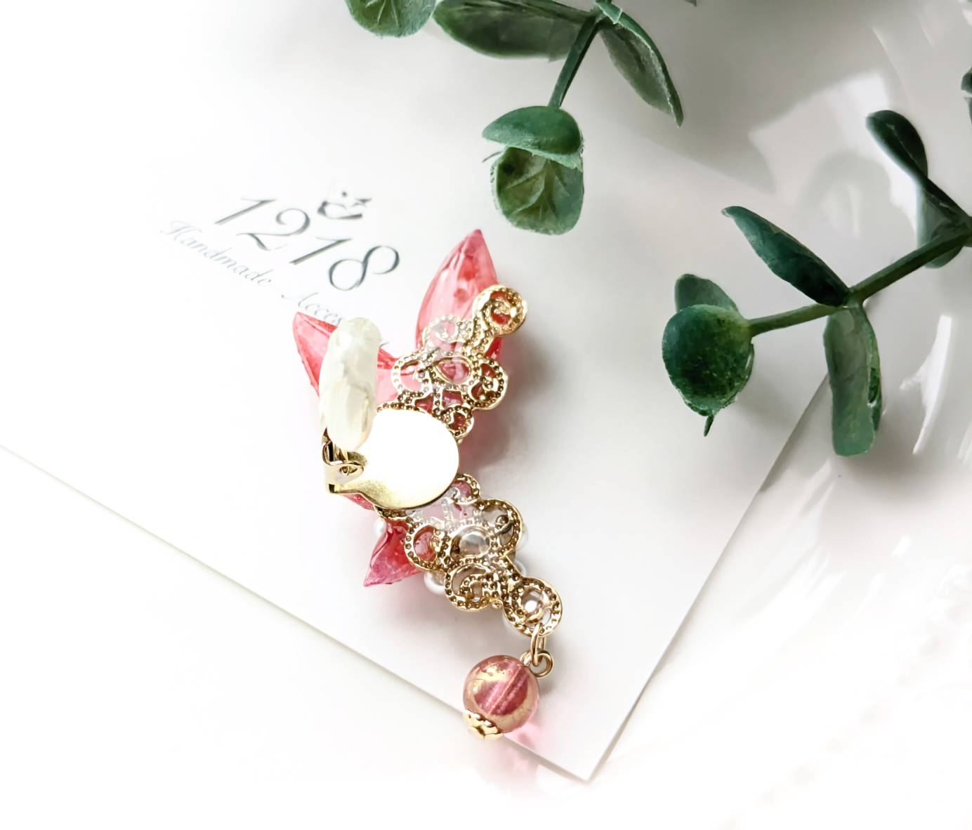 柔らかな日差しに包まれた花畑で軽やかに羽ばたき甘い蜜を集める妖精の羽をイメージして美しいイヤーカフを作成しました。
