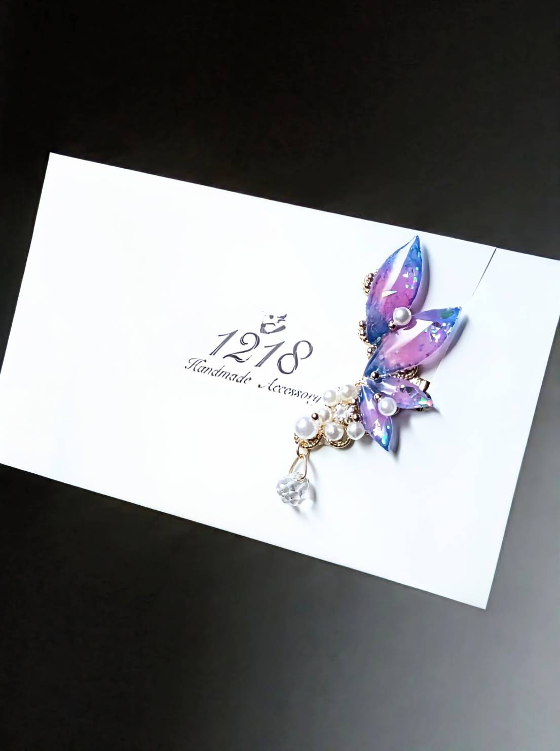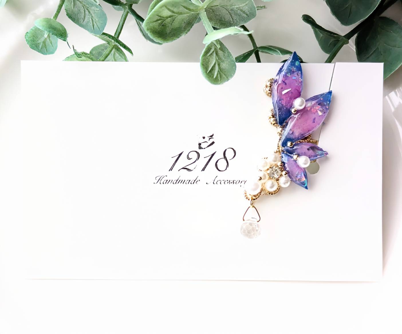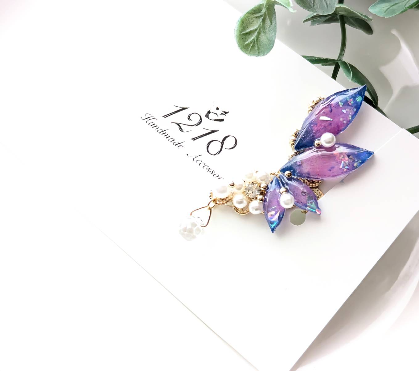 静かな夜、穏やかな夢に寄り添う優しい妖精の羽をイメージして美しいイヤーカフを作成しました。