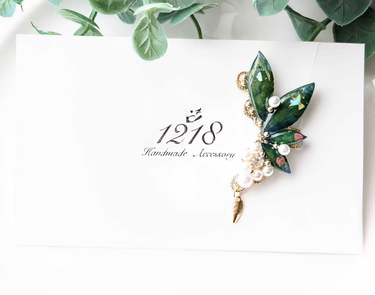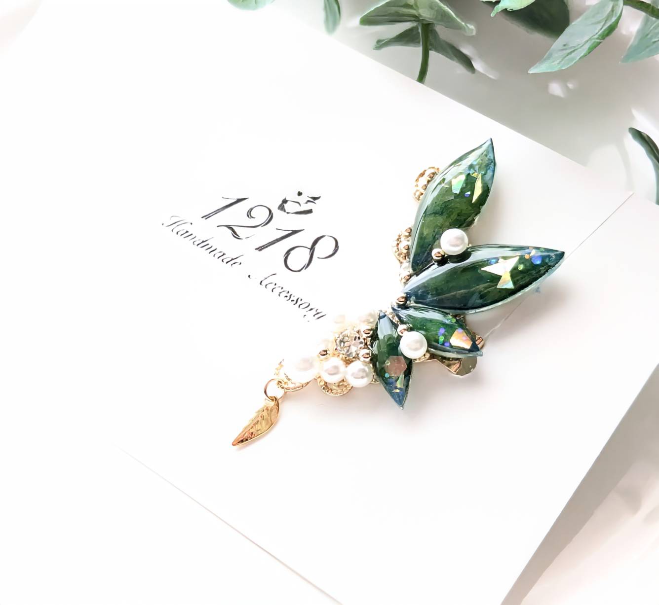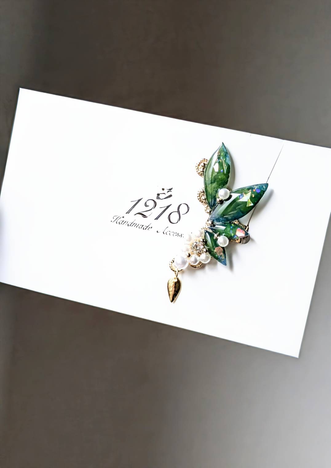 柔らかな風が木々の葉を揺らす、軽やかに木と共に歌う妖精の羽をイメージして美しいイヤーカフを作成しました。