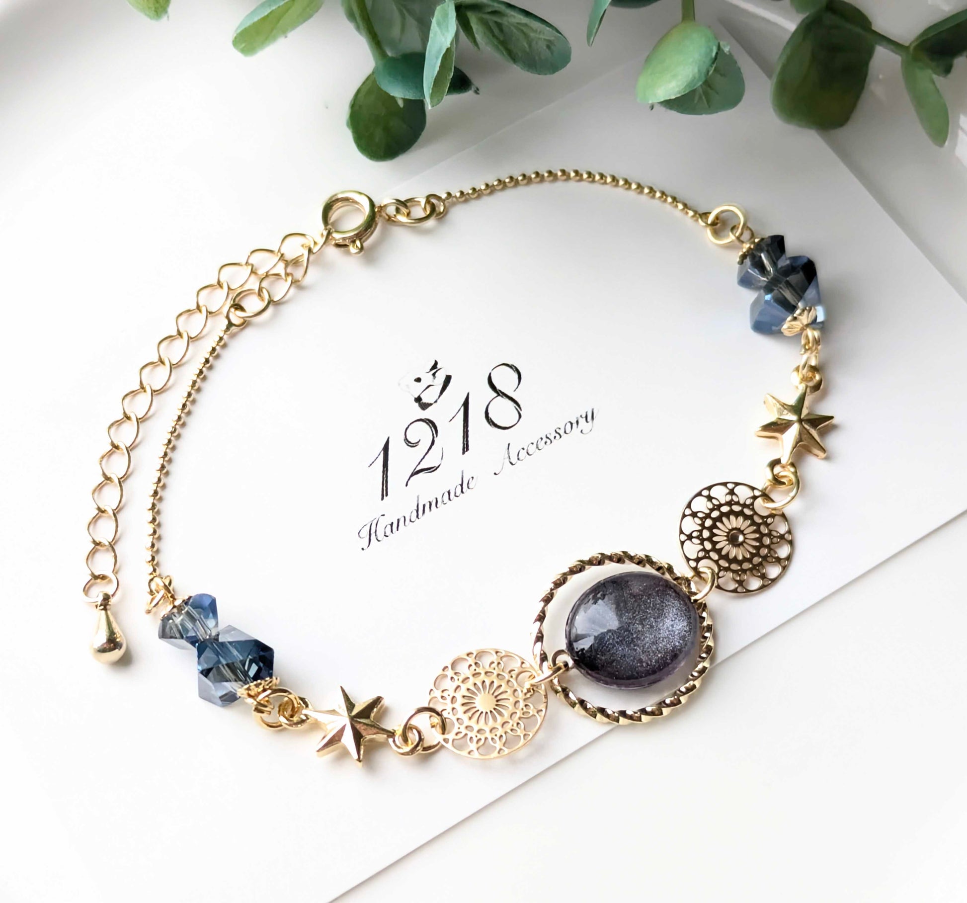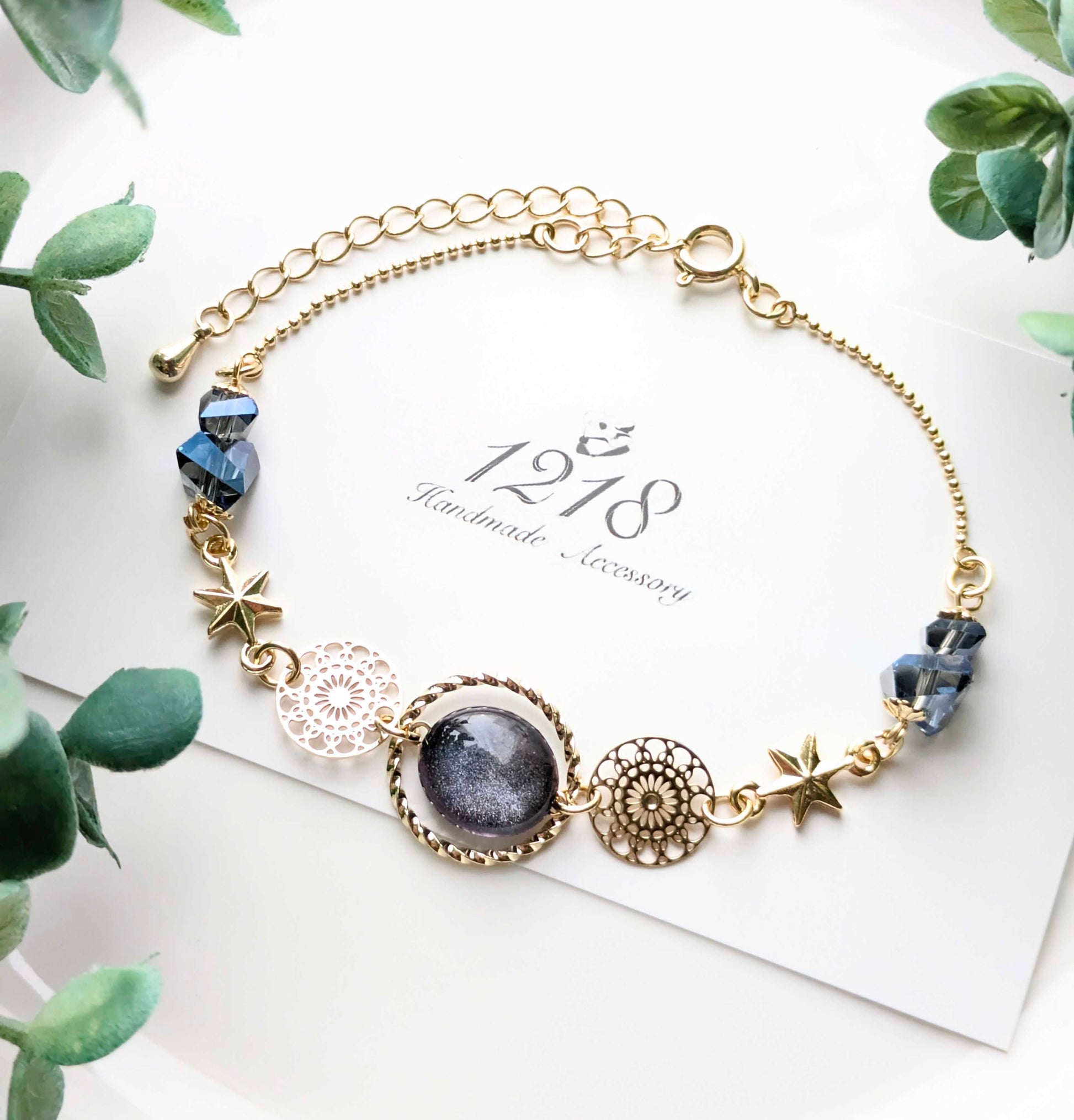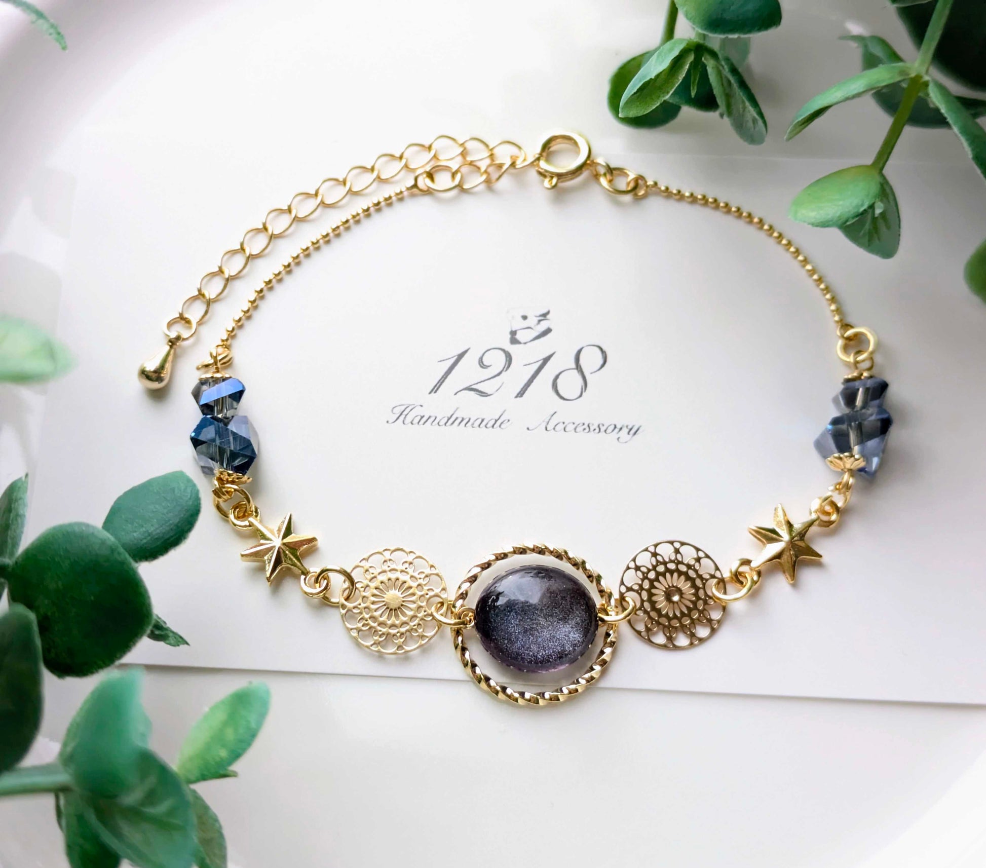 キラキラと輝く宇宙の光を1粒のシズクに変えて、美しいブレスレットを作成しました。