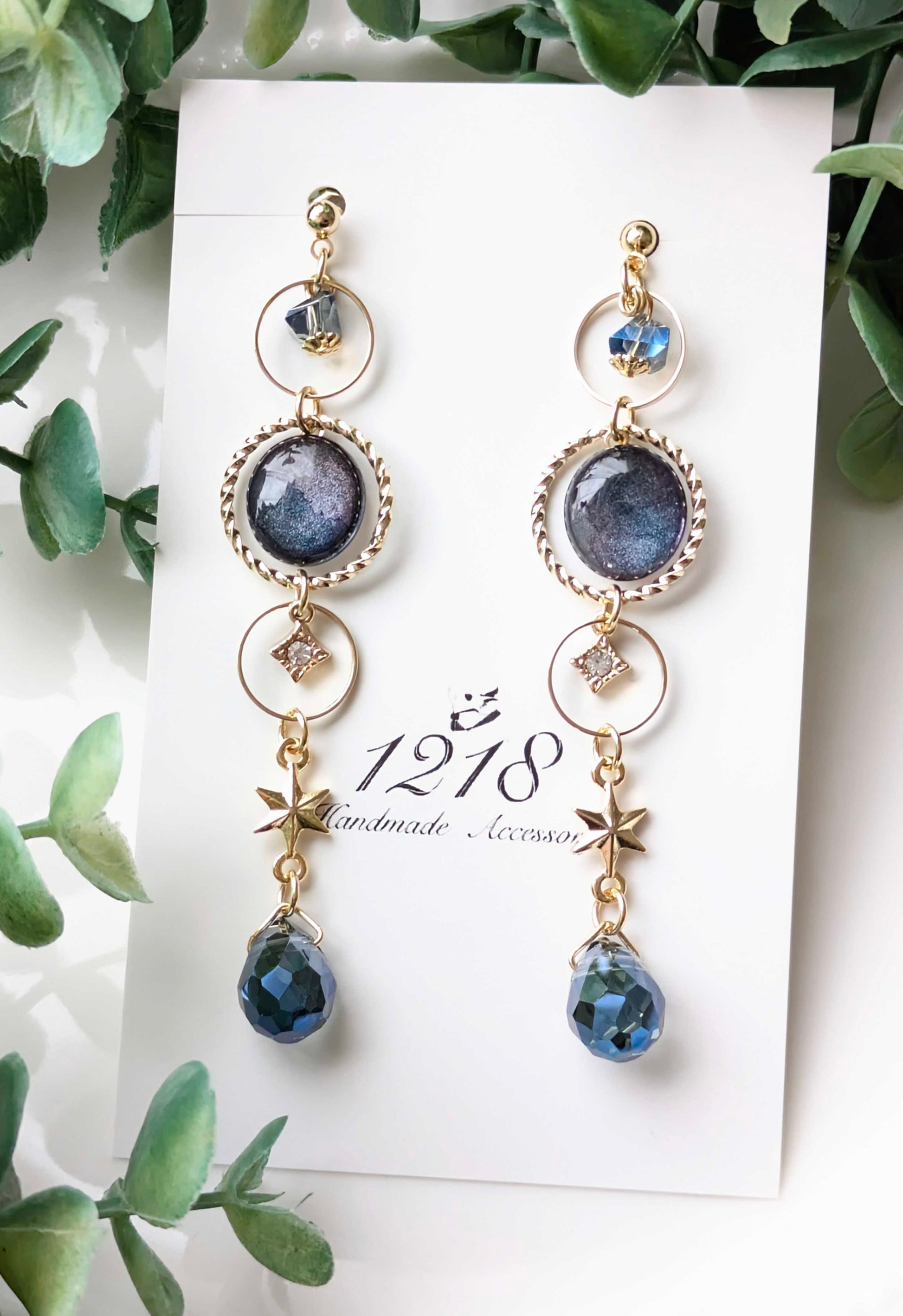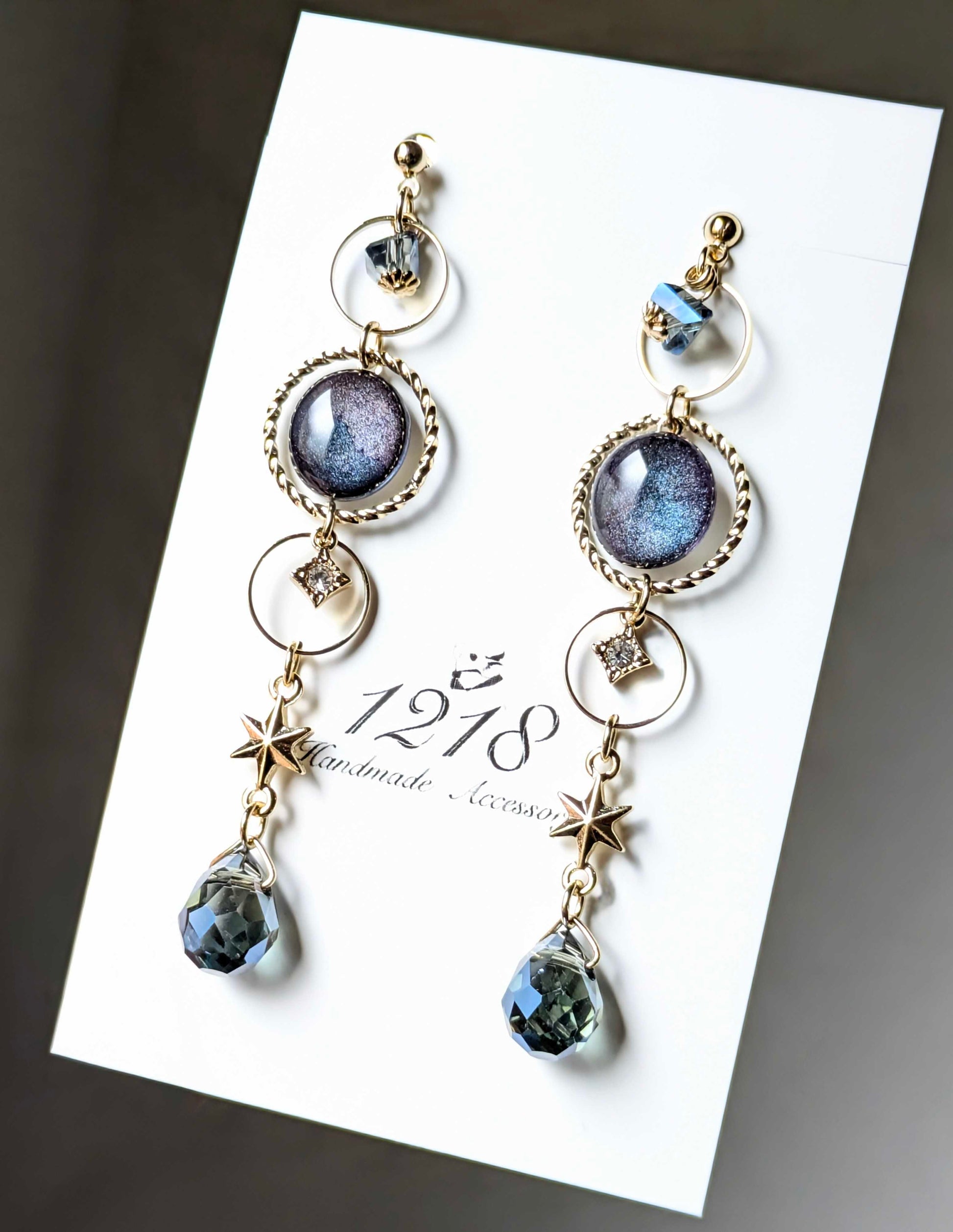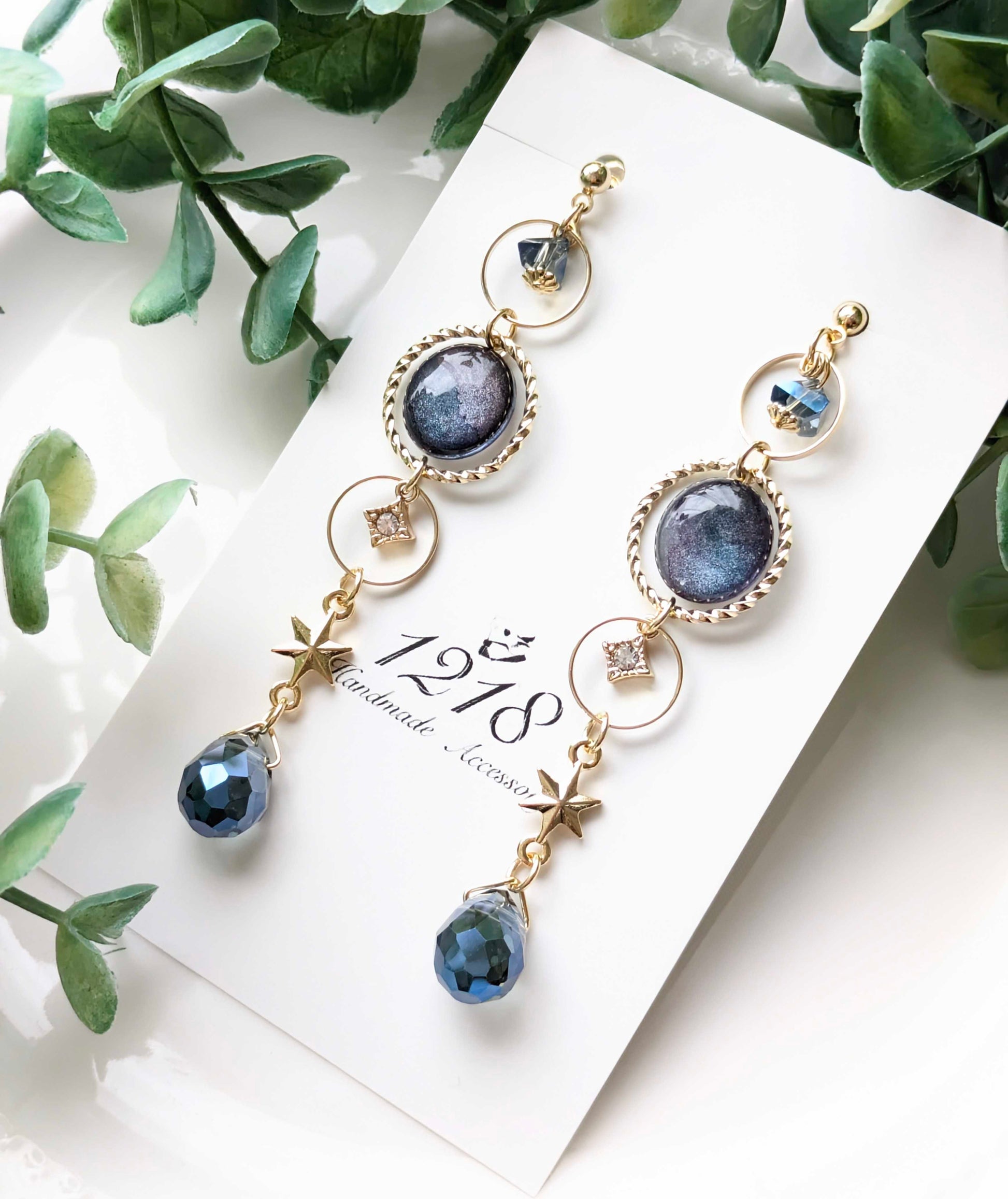 キラキラと輝く宇宙の光を1粒のシズクに変えて、美しいイヤリング・ピアスを作成しました。