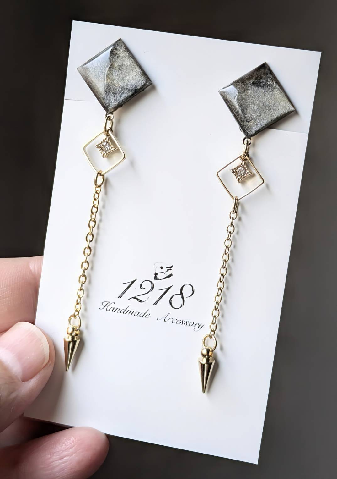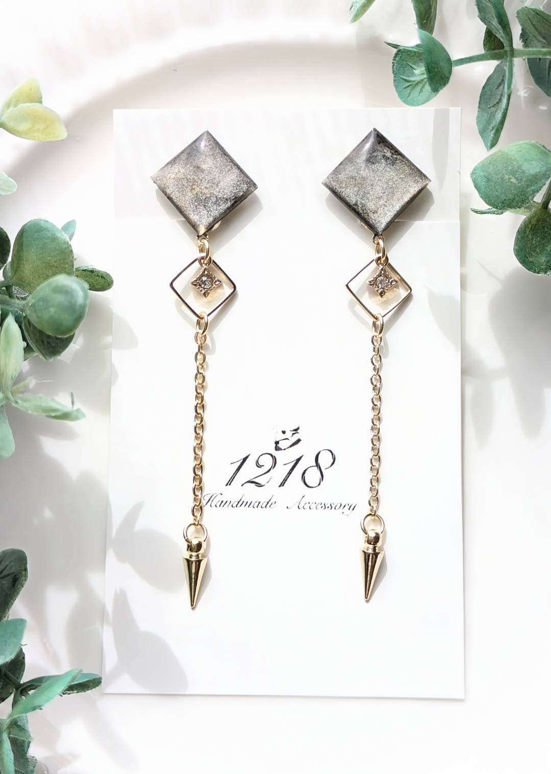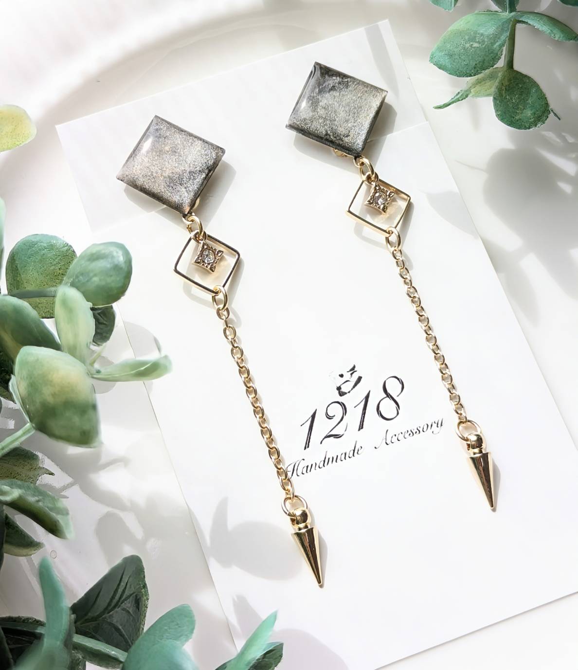 優しく撫でるように揺れ、耳に寄り添う小さな夜の黒色をイメージして美しいイヤリング・ピアスを作成しました。