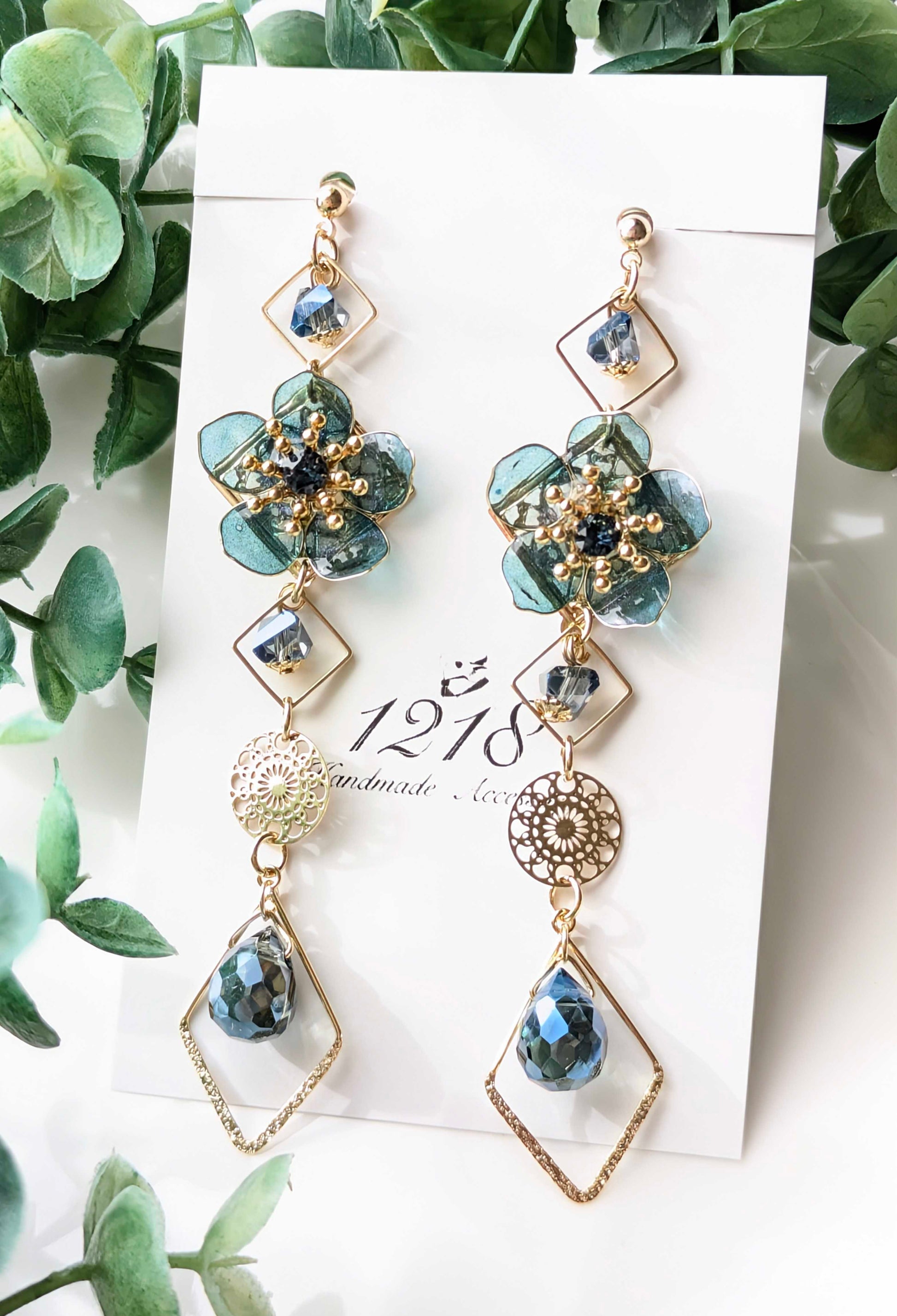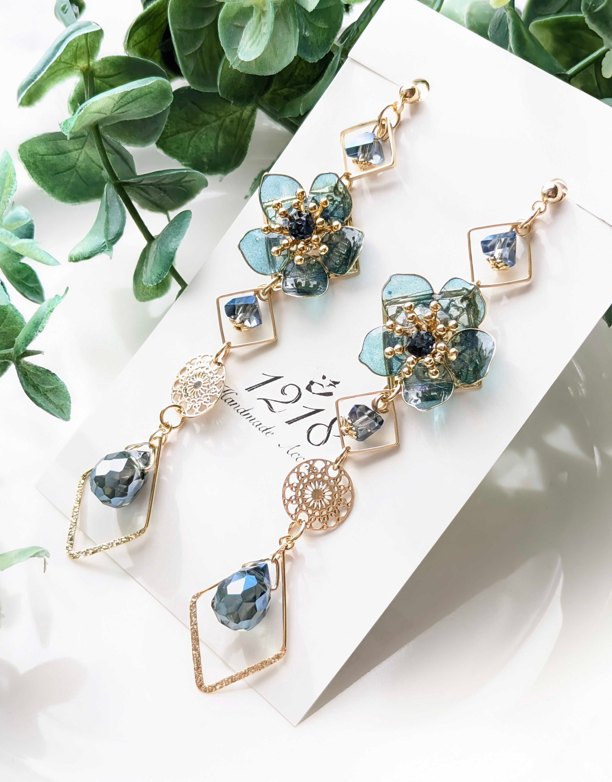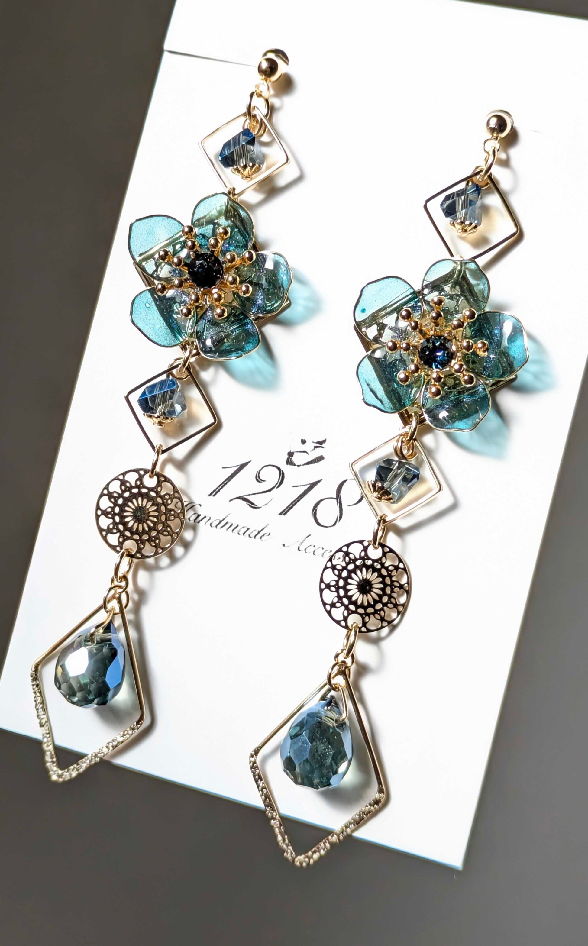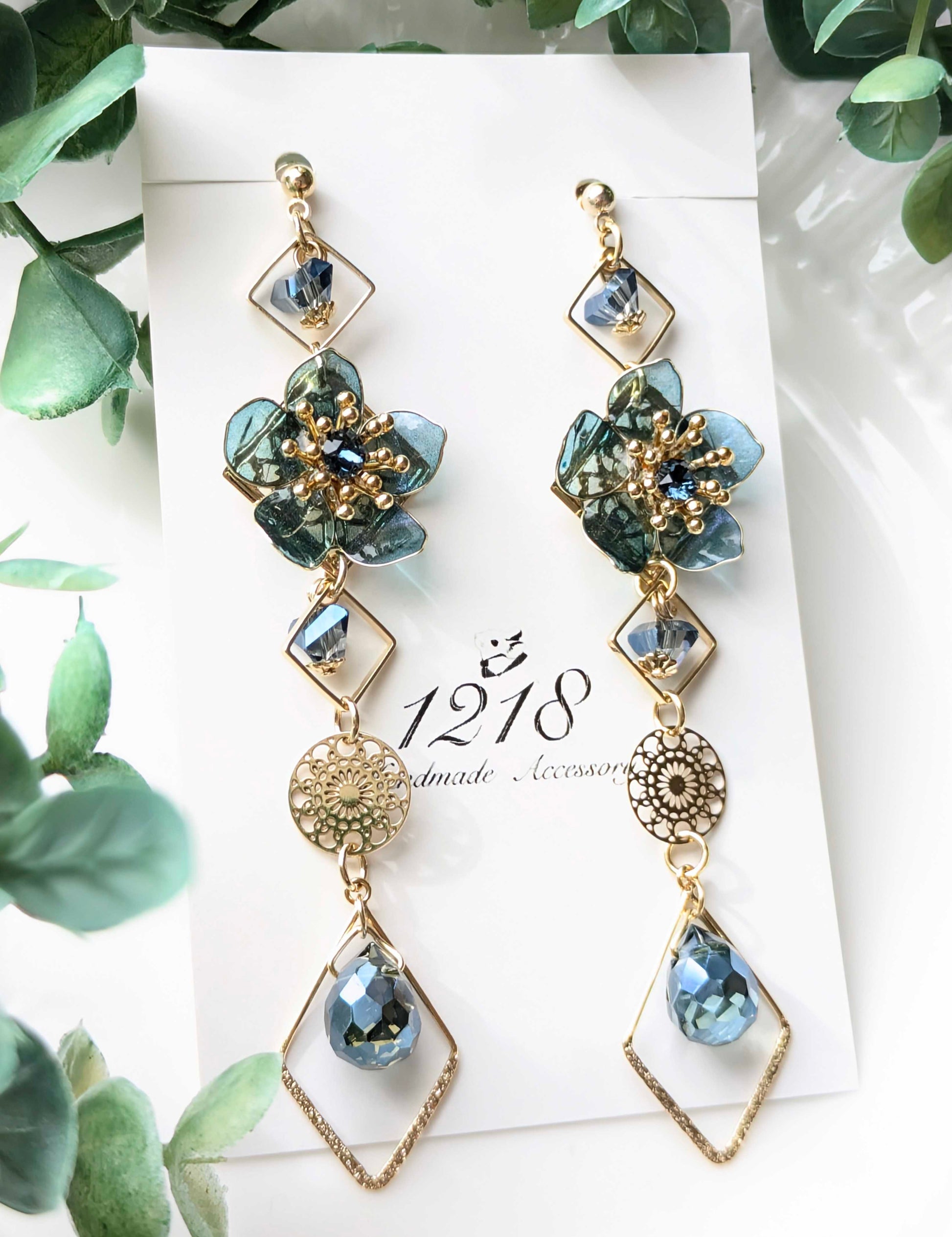 静かに空色を吸い上げ青く染まっていく可憐な花をイメージして美しいイヤリング・ピアスを作成しました。
