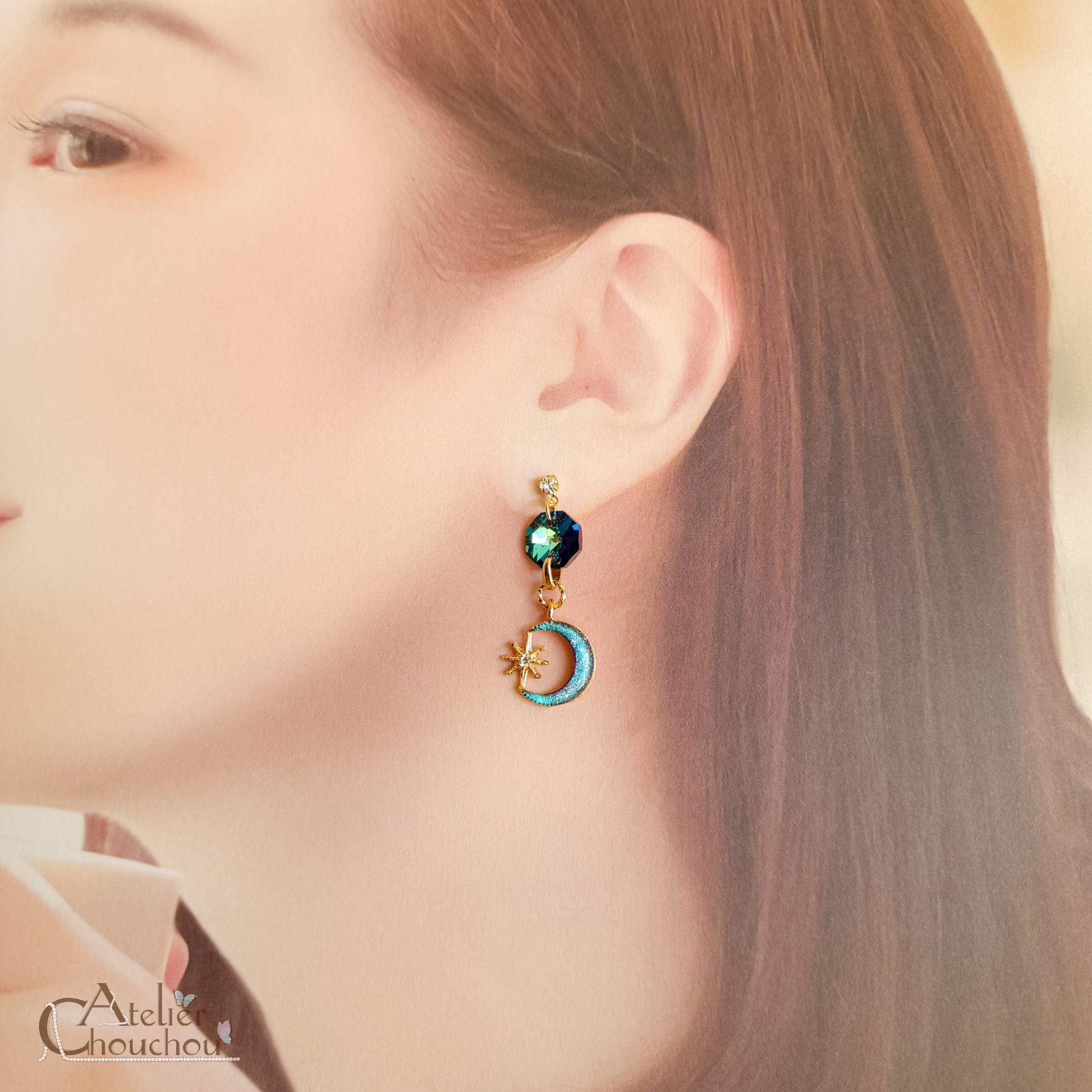 幻想的に輝く月灯りをイメージした耳飾りです。