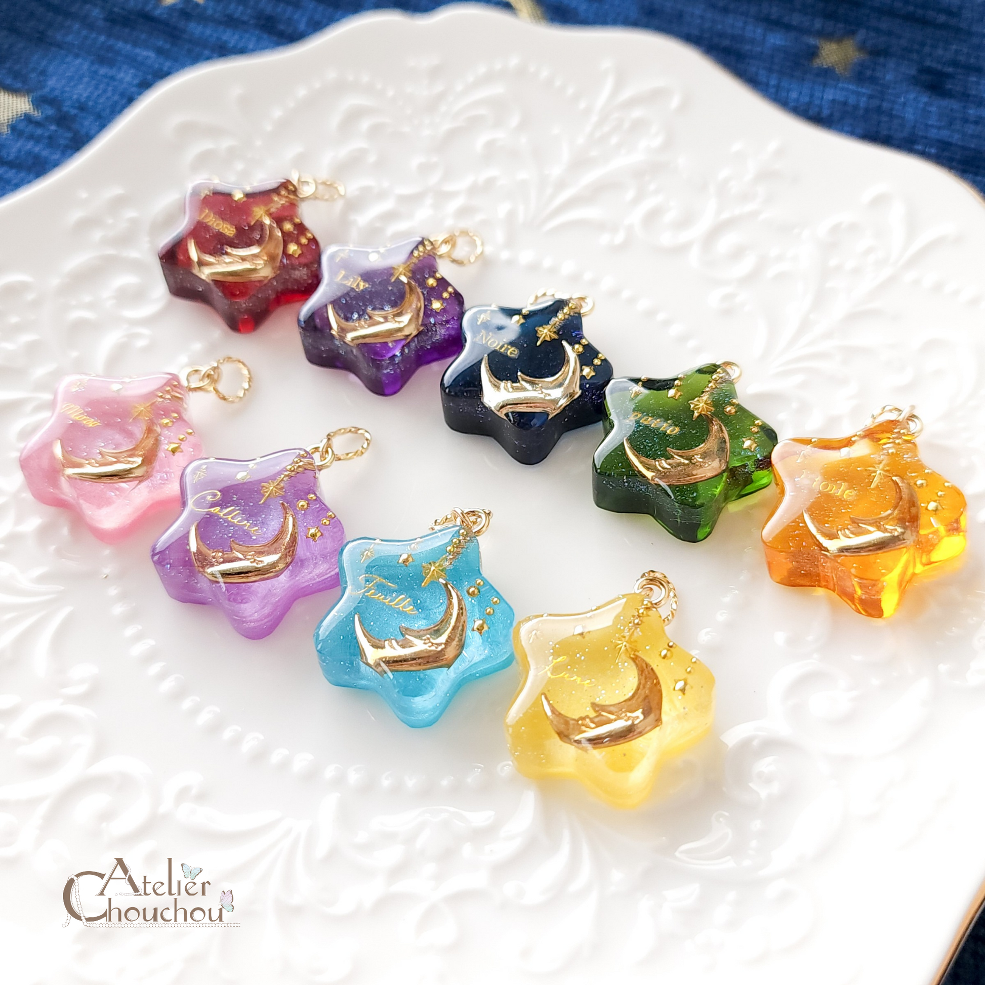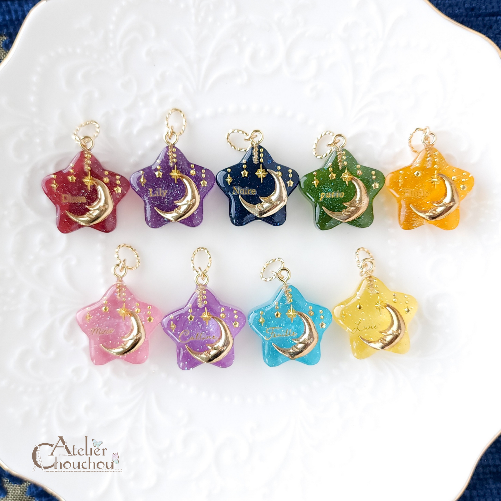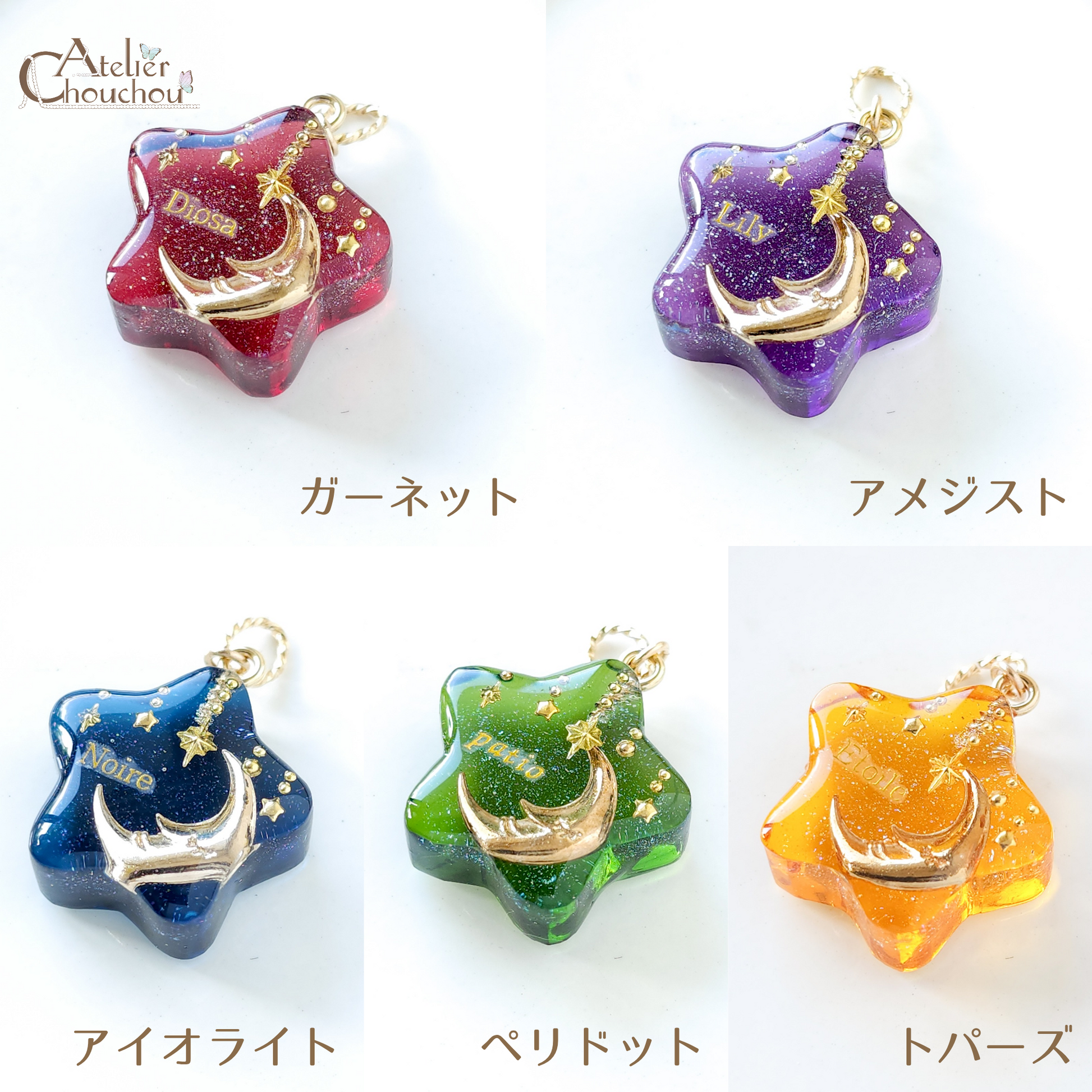 お星さまに入っているゴールドの文字は一例です。