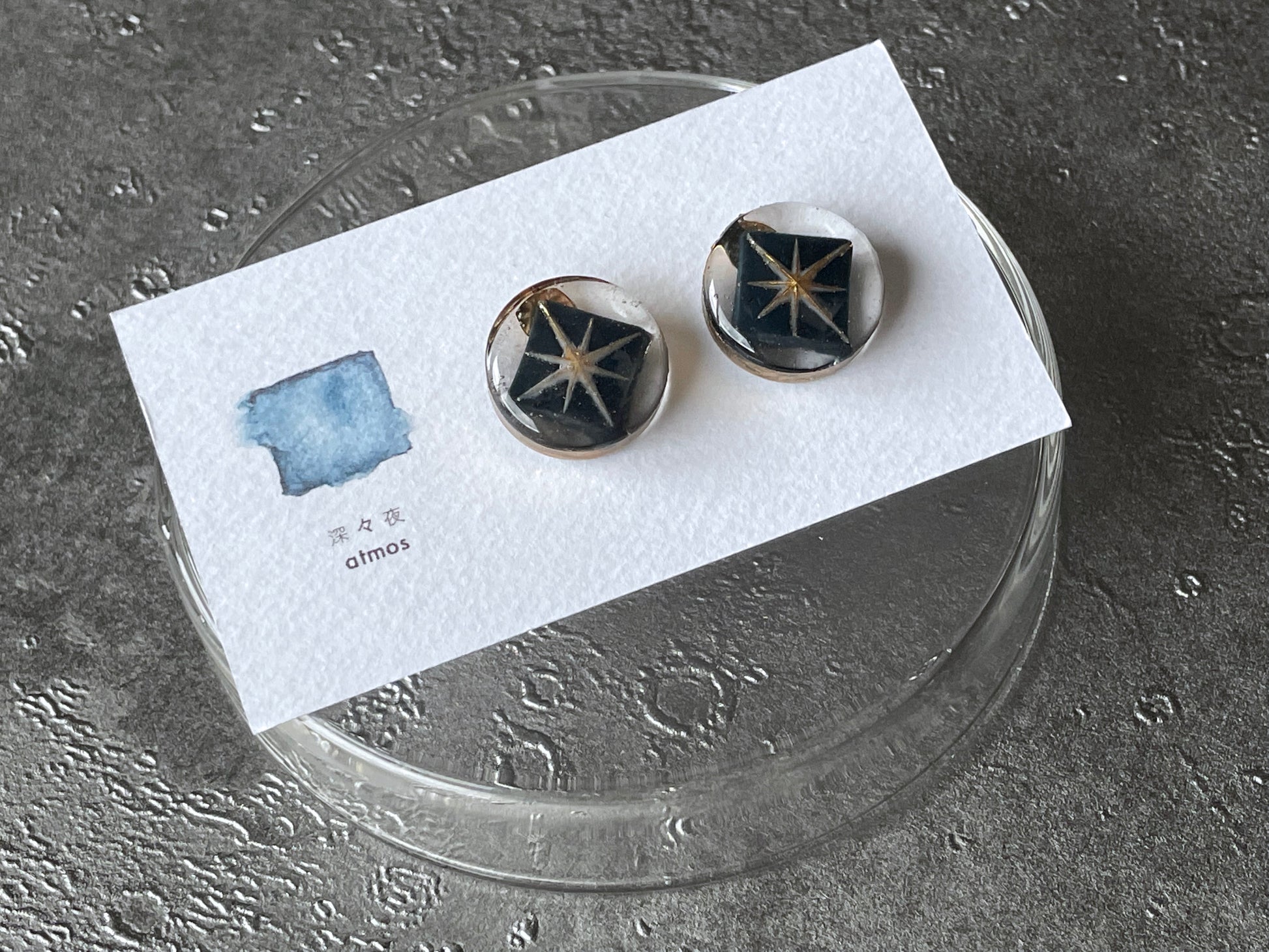 墨を溶かしたような夜空に浮遊した星の耳飾りです。