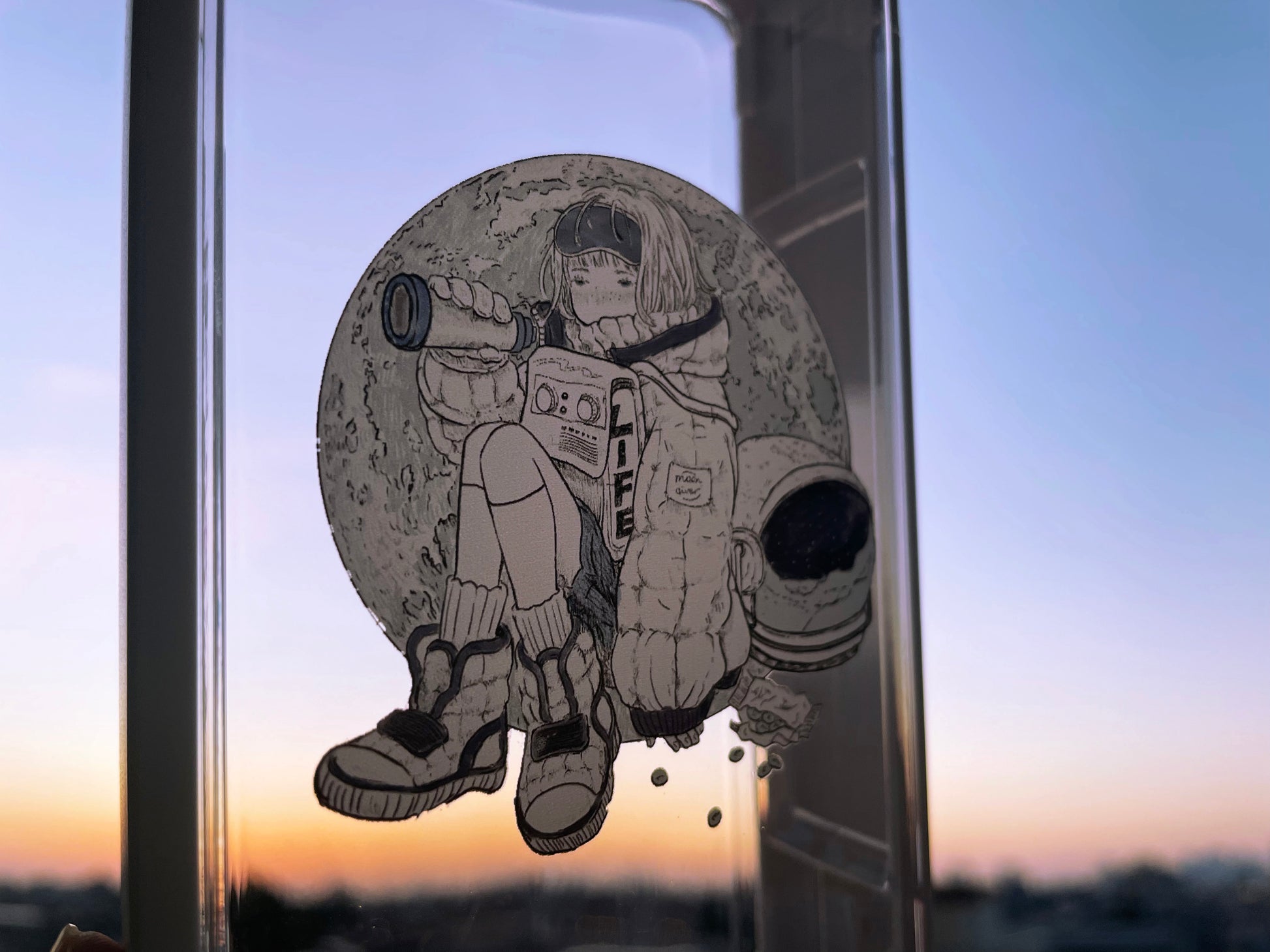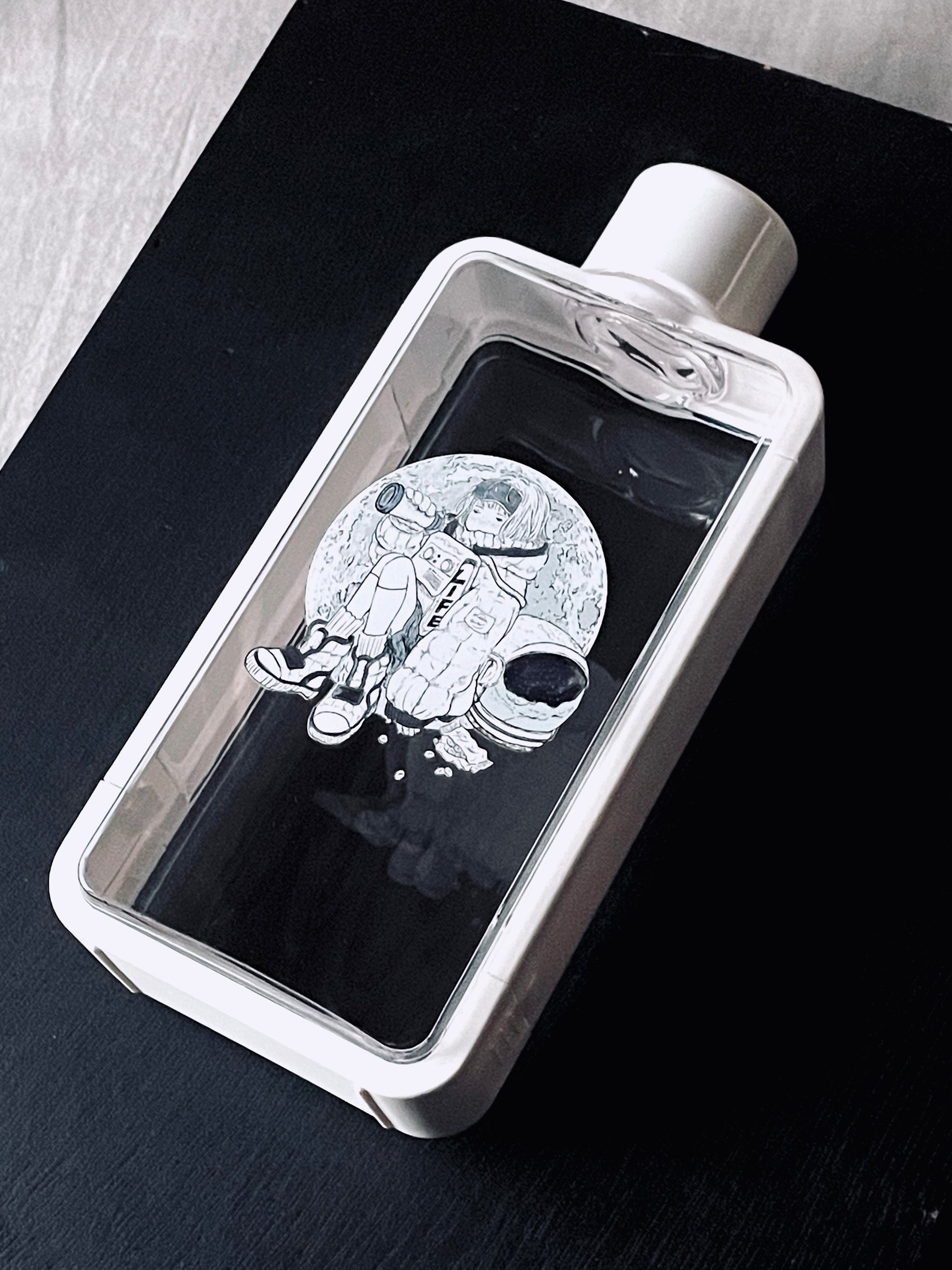イラスト「白昼夢を観測」をフレームスクエアボトルに印刷しました。
