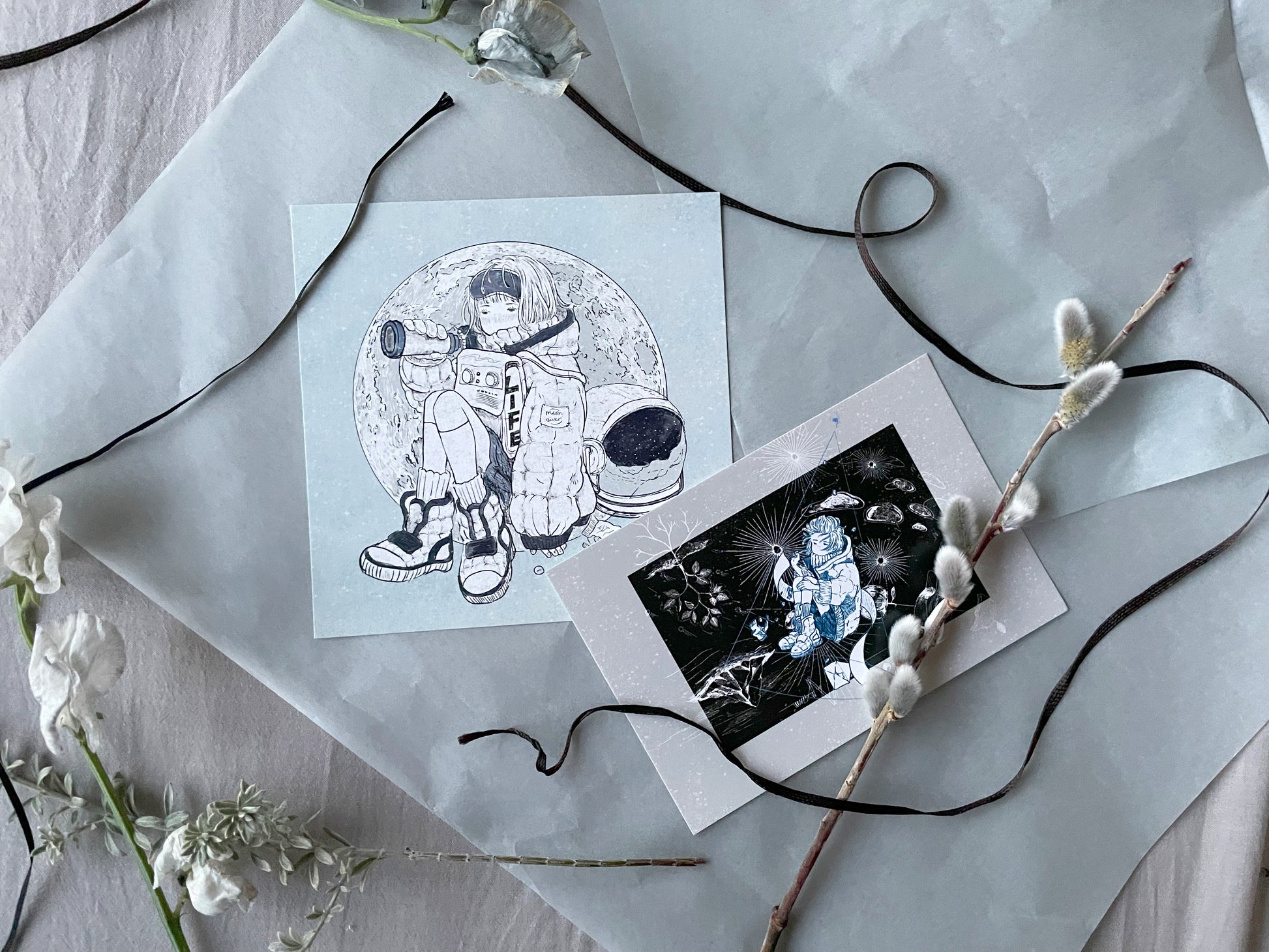 オリジナルのイラスト作品を印刷した、