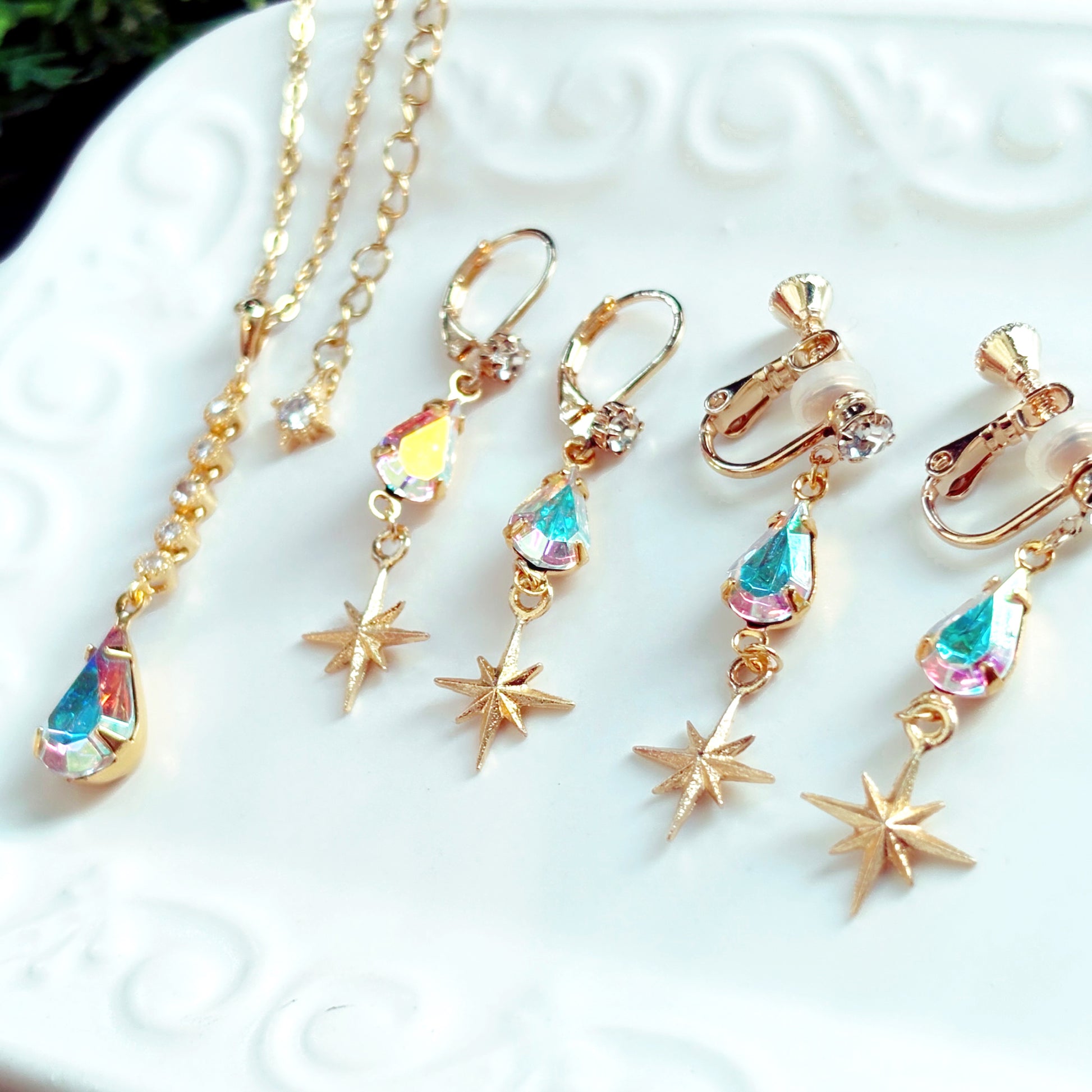 まいにち魔法限定〈オーロラの雫セット〉ペンダント&ピアス/イヤリング