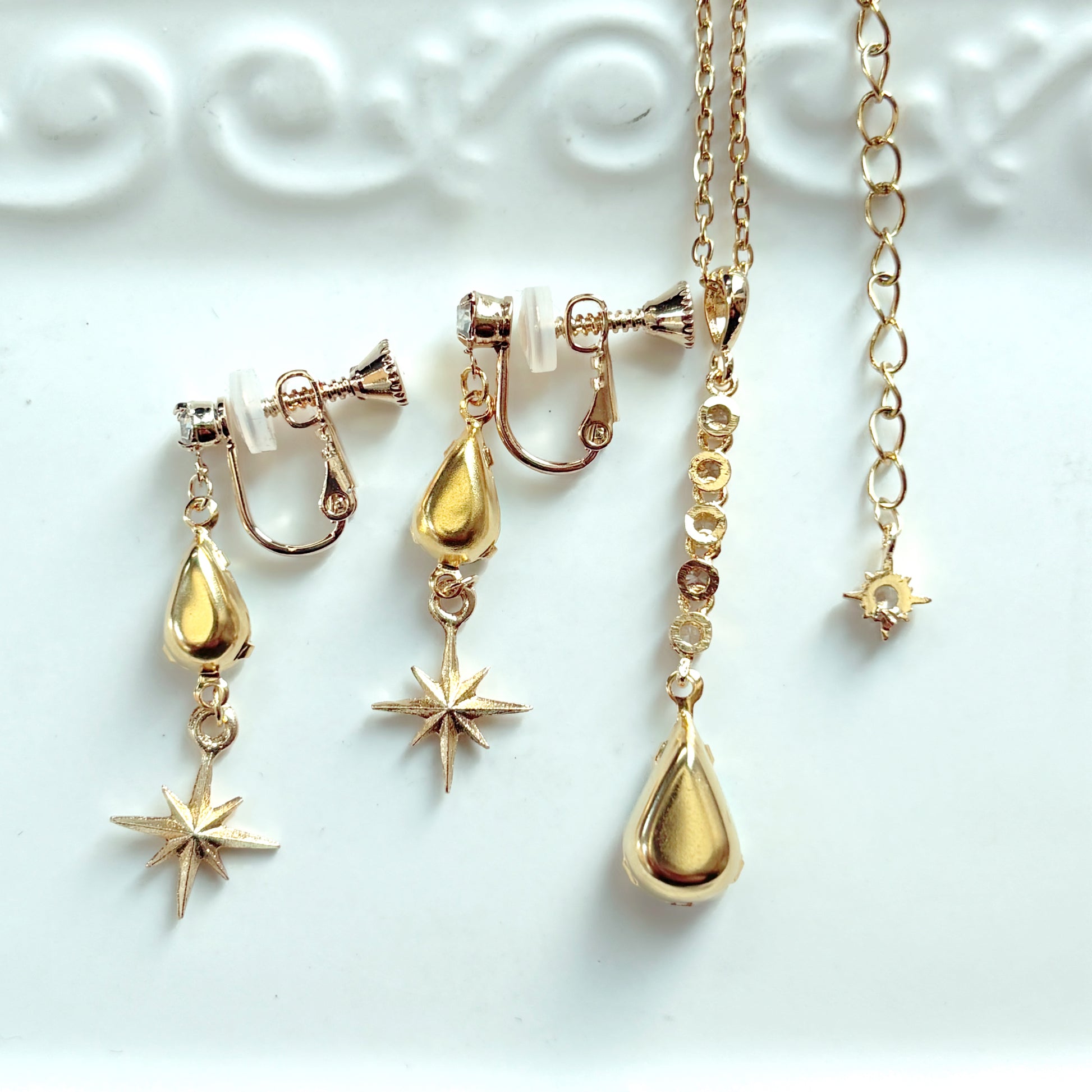 まいにち魔法限定&2025冬新作のペンダントと耳飾りのセットです。