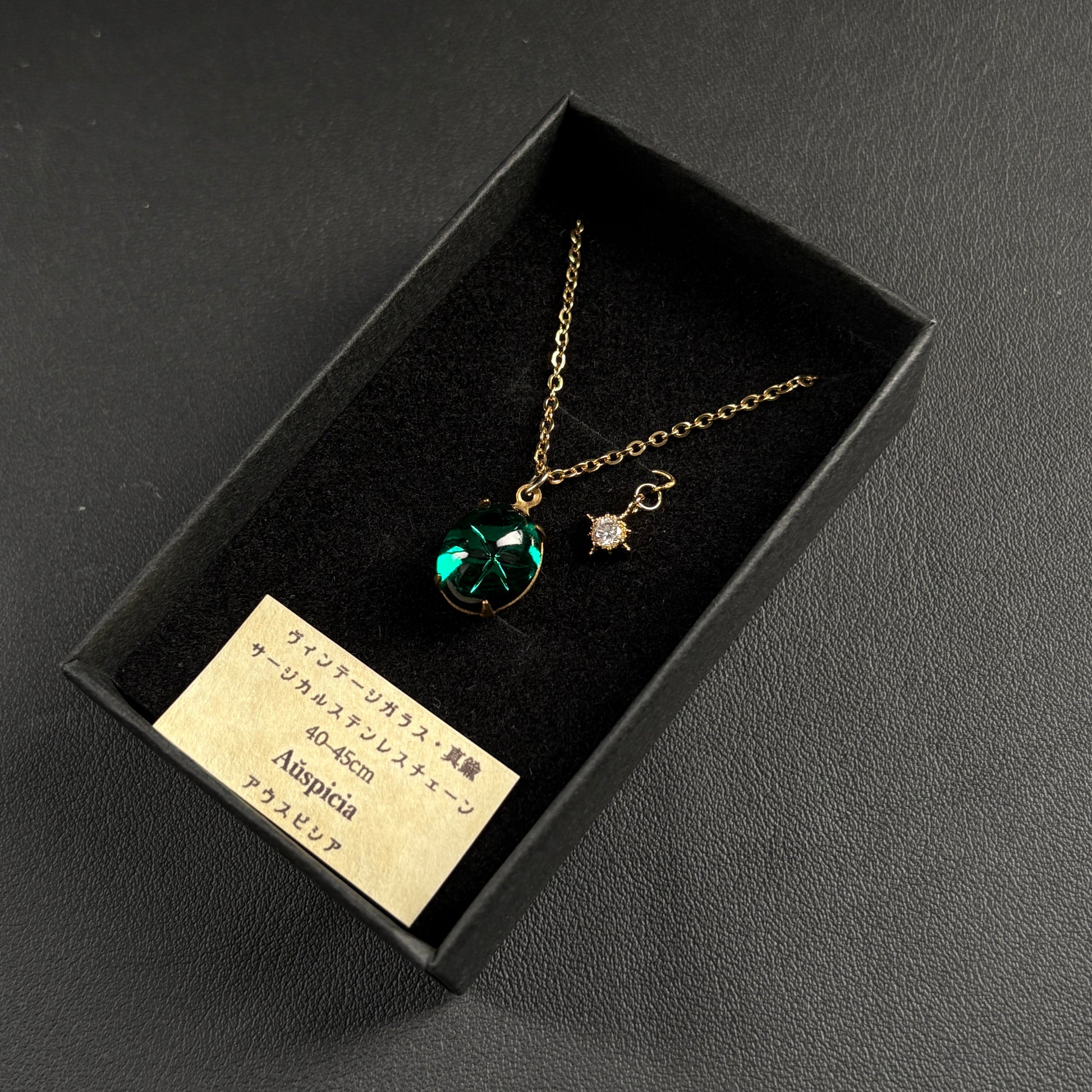 珍しいガラスを集めてお仕立てしたペンダントです。