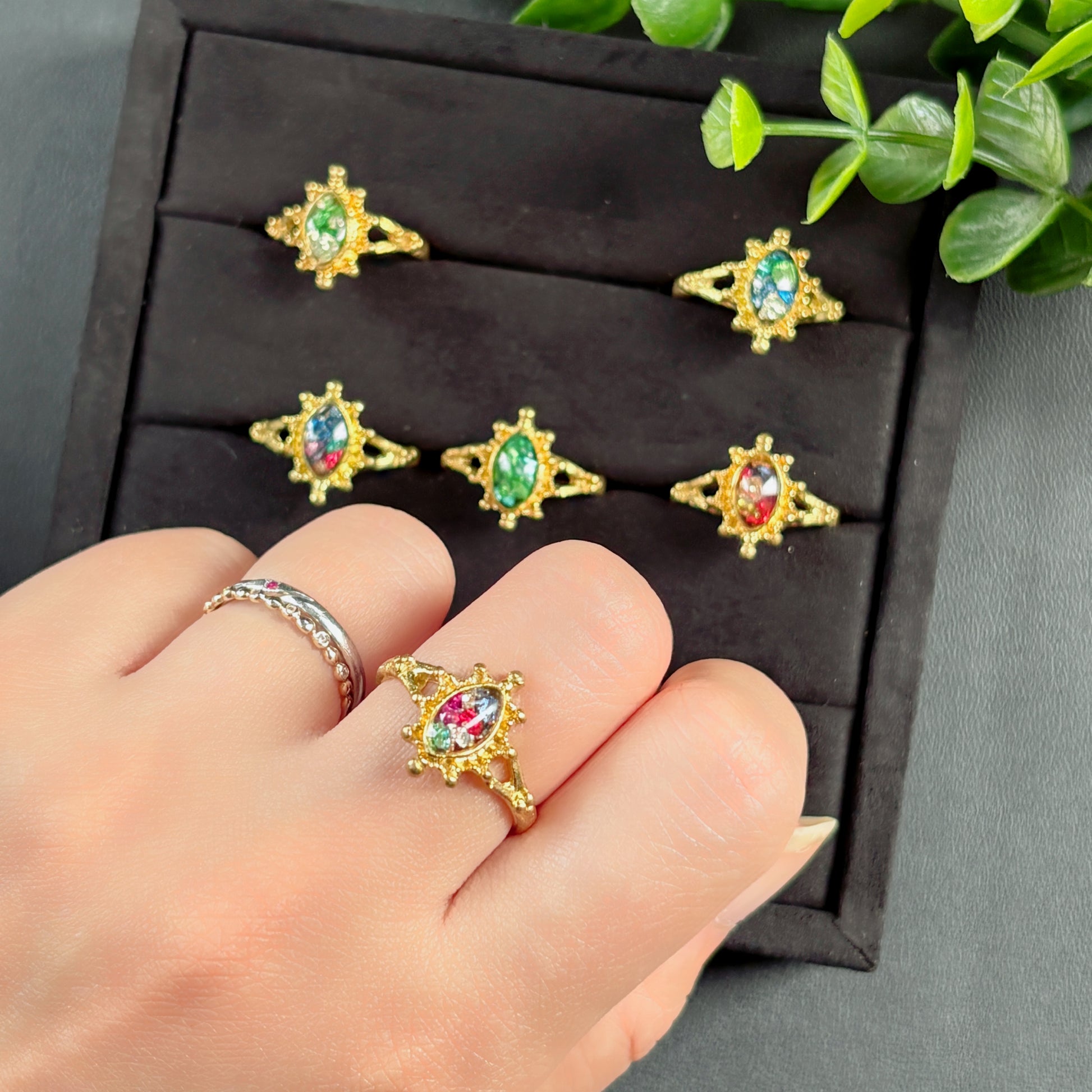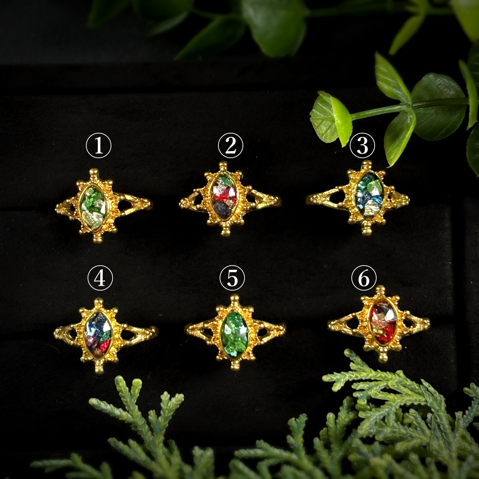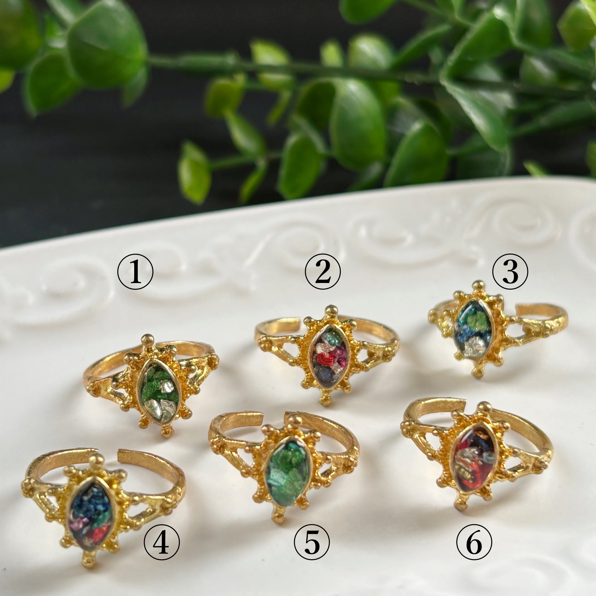 レジンでお作りした真鍮製のリングです。ひとつひとつ個性がある1点ものデザインです。