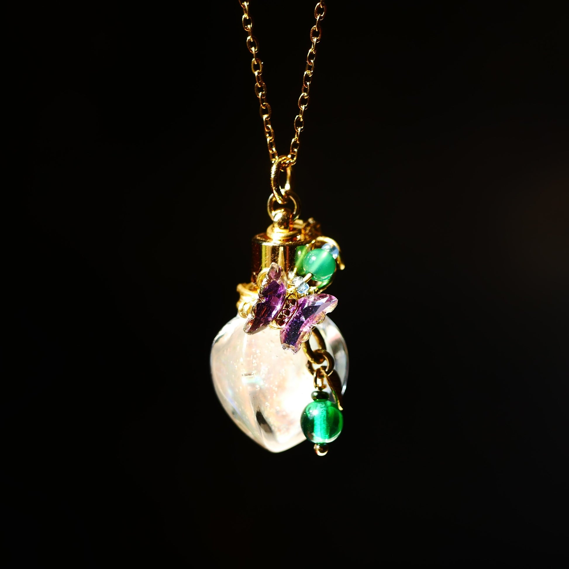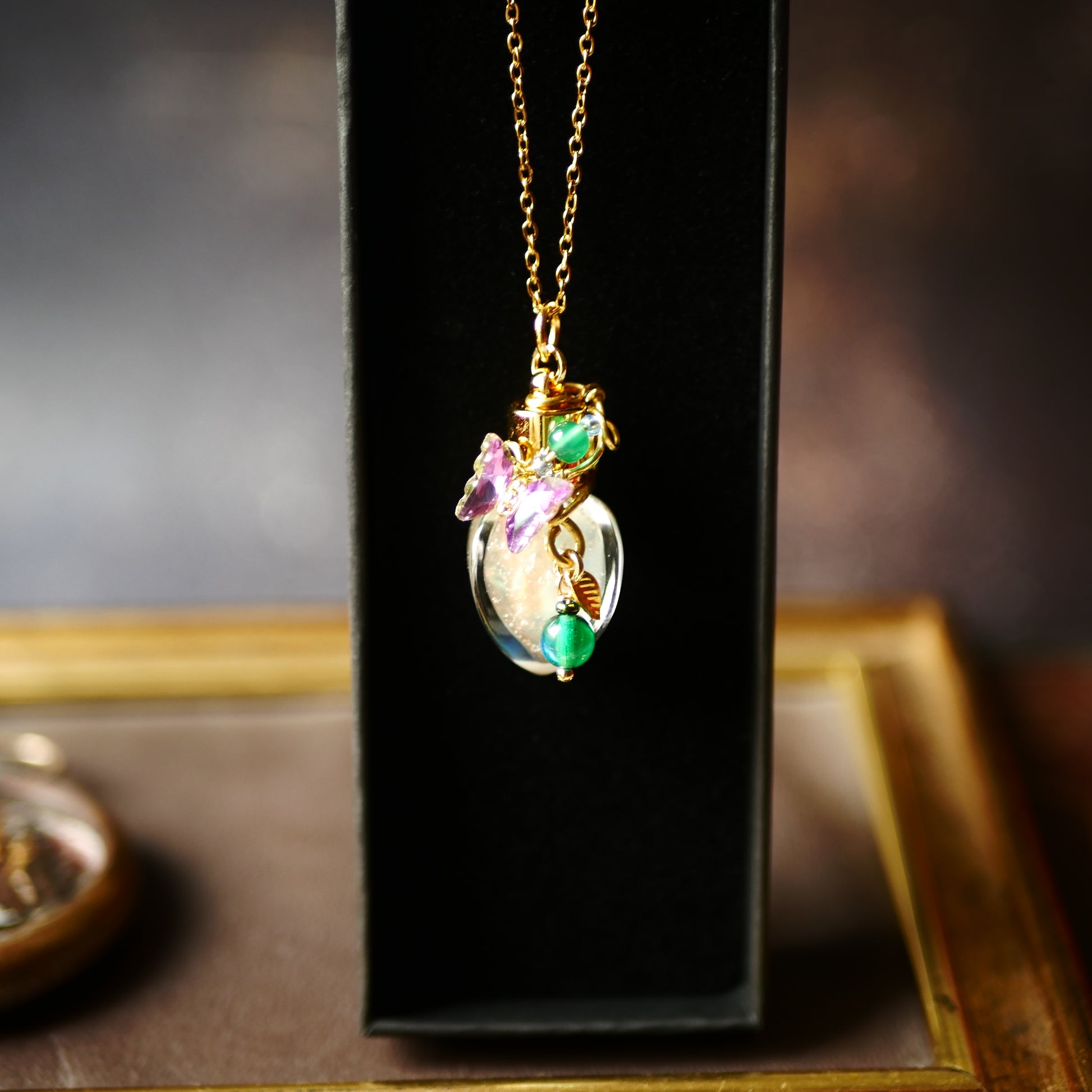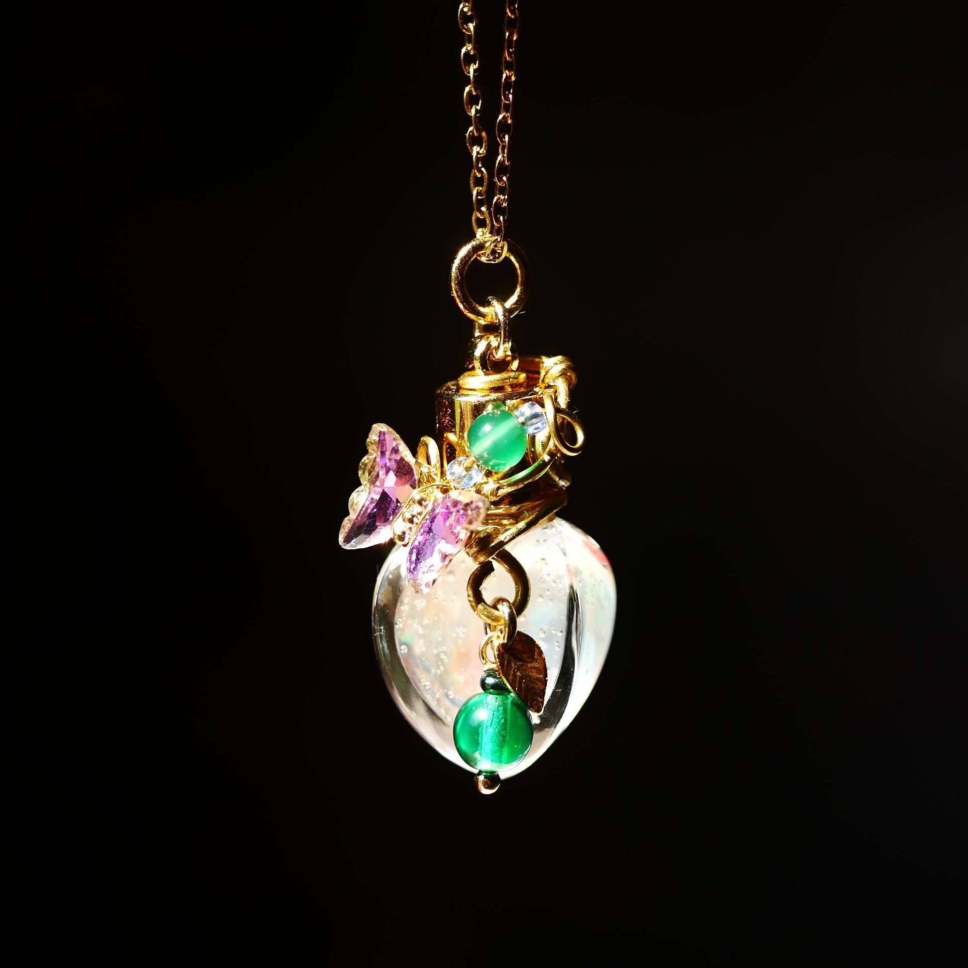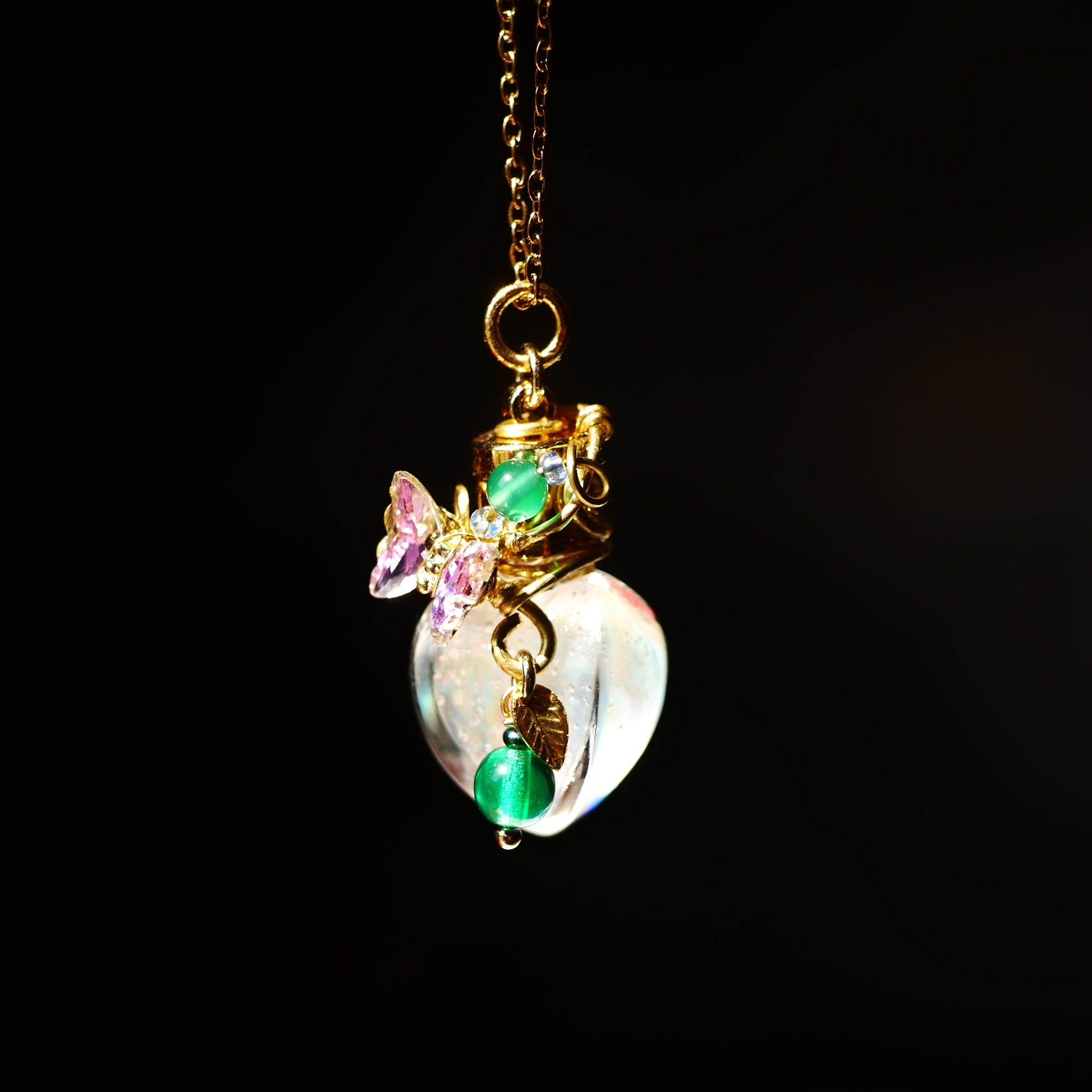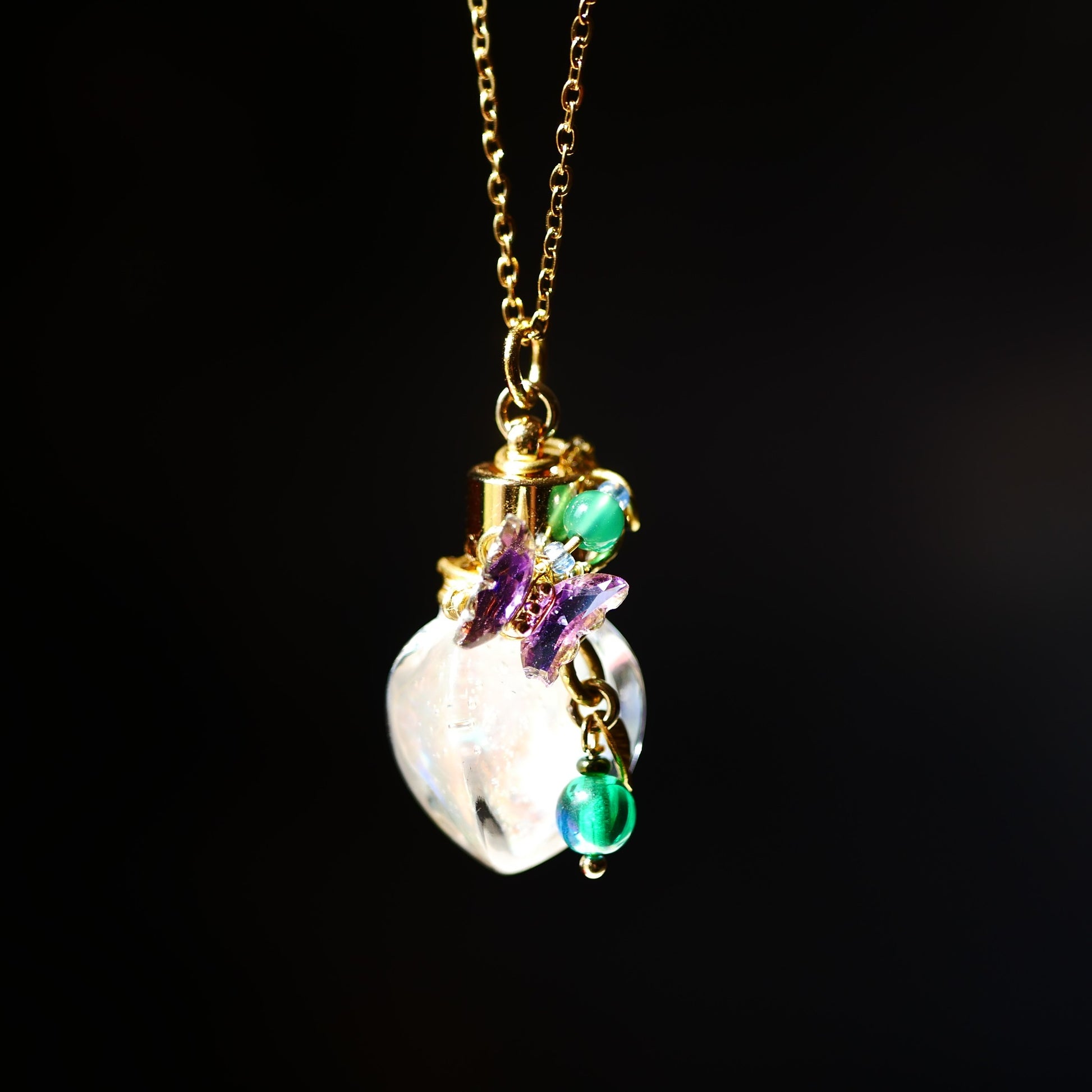 ガラスボトルに虹色の光り輝く液体(ジェル状)を閉じ込めています。
