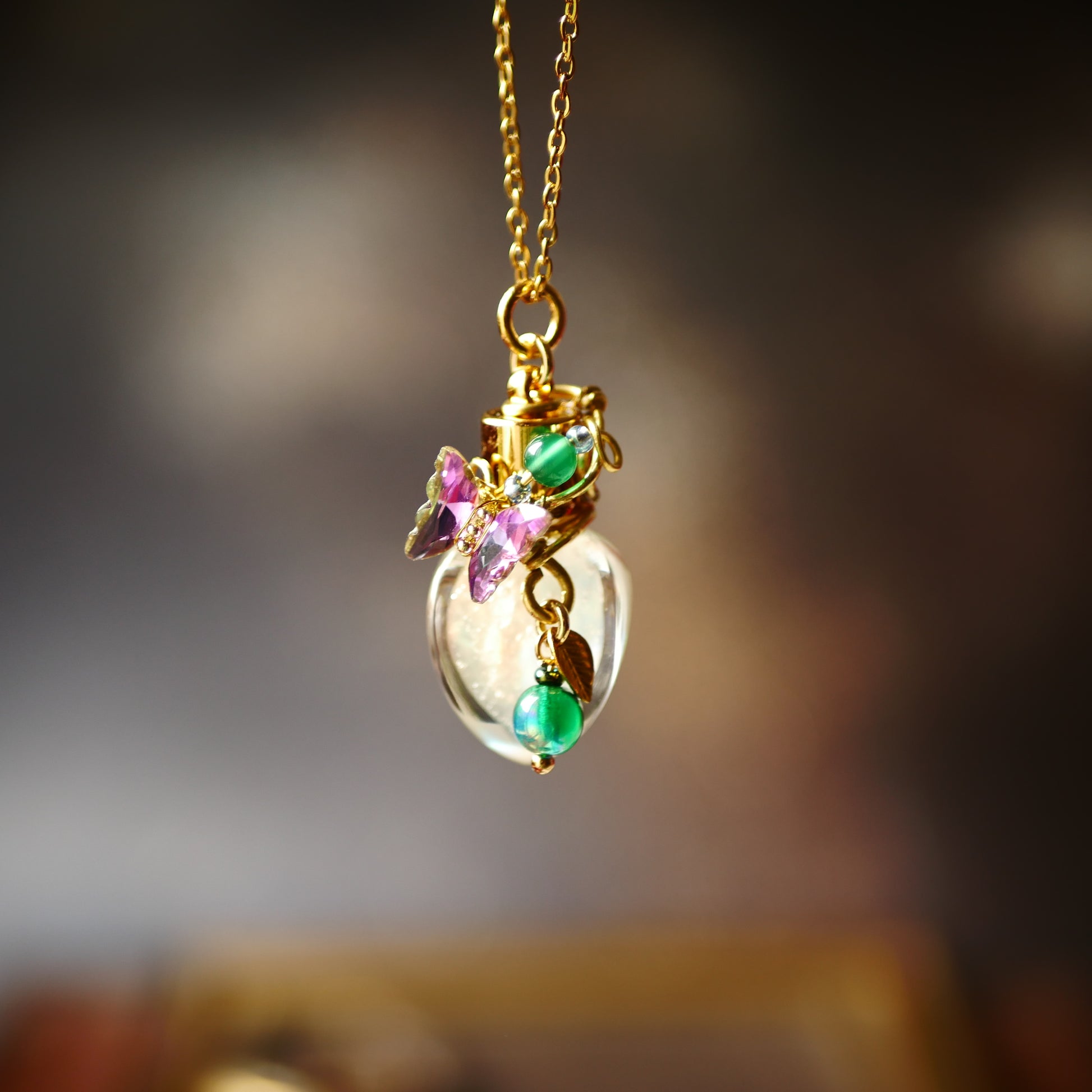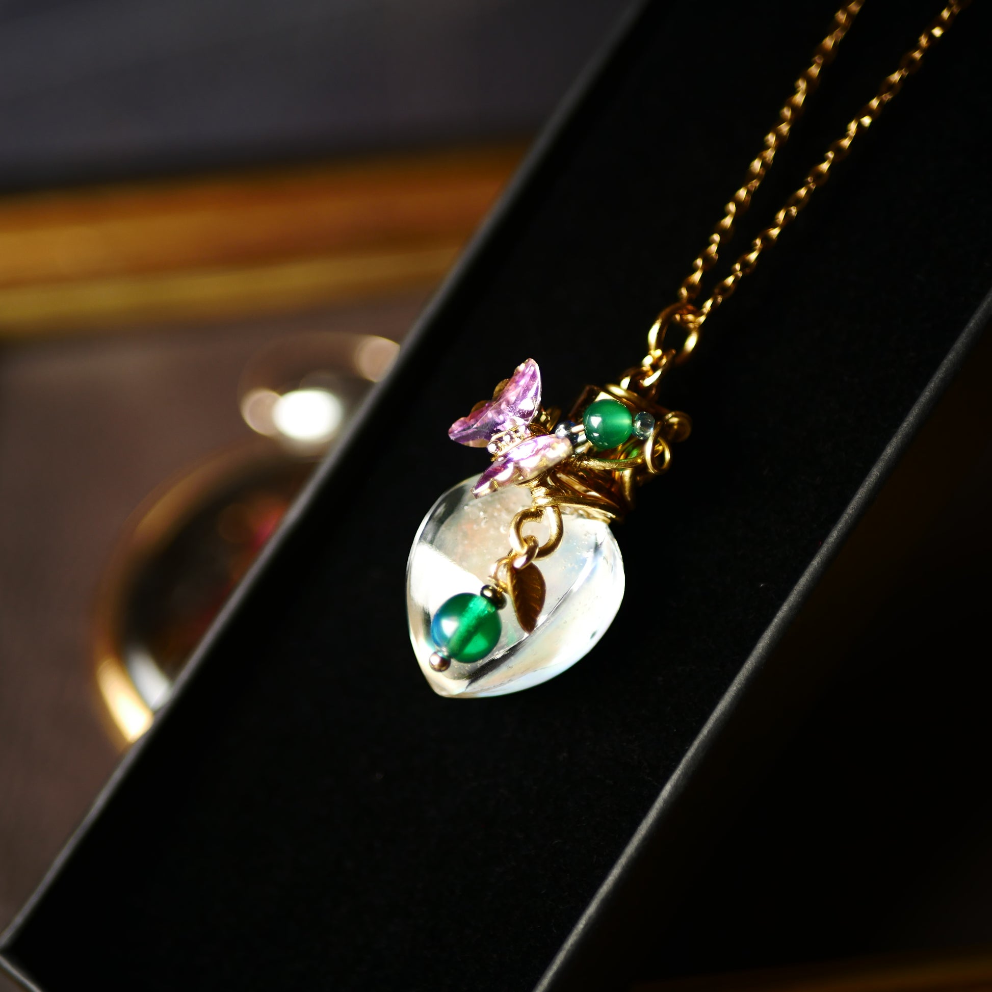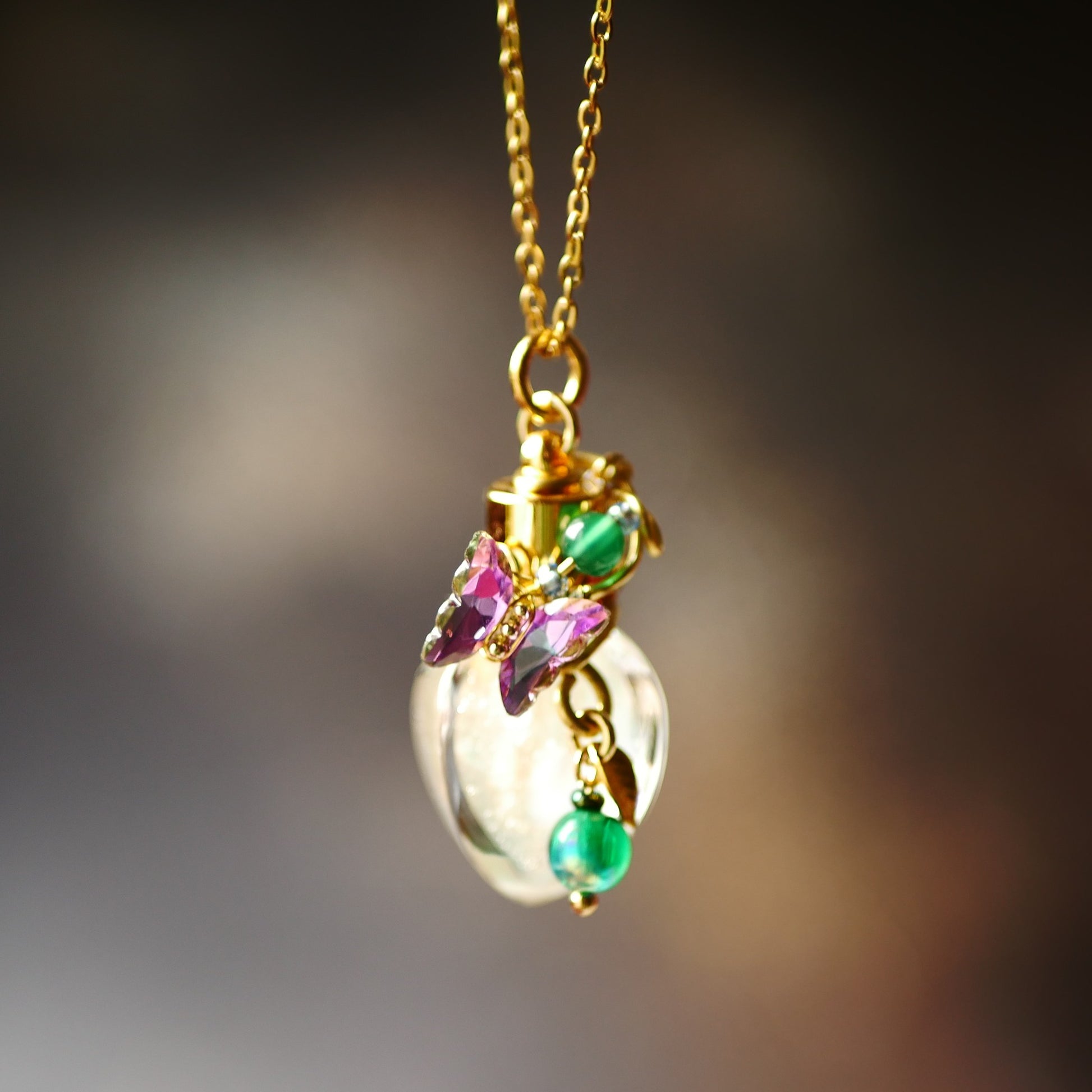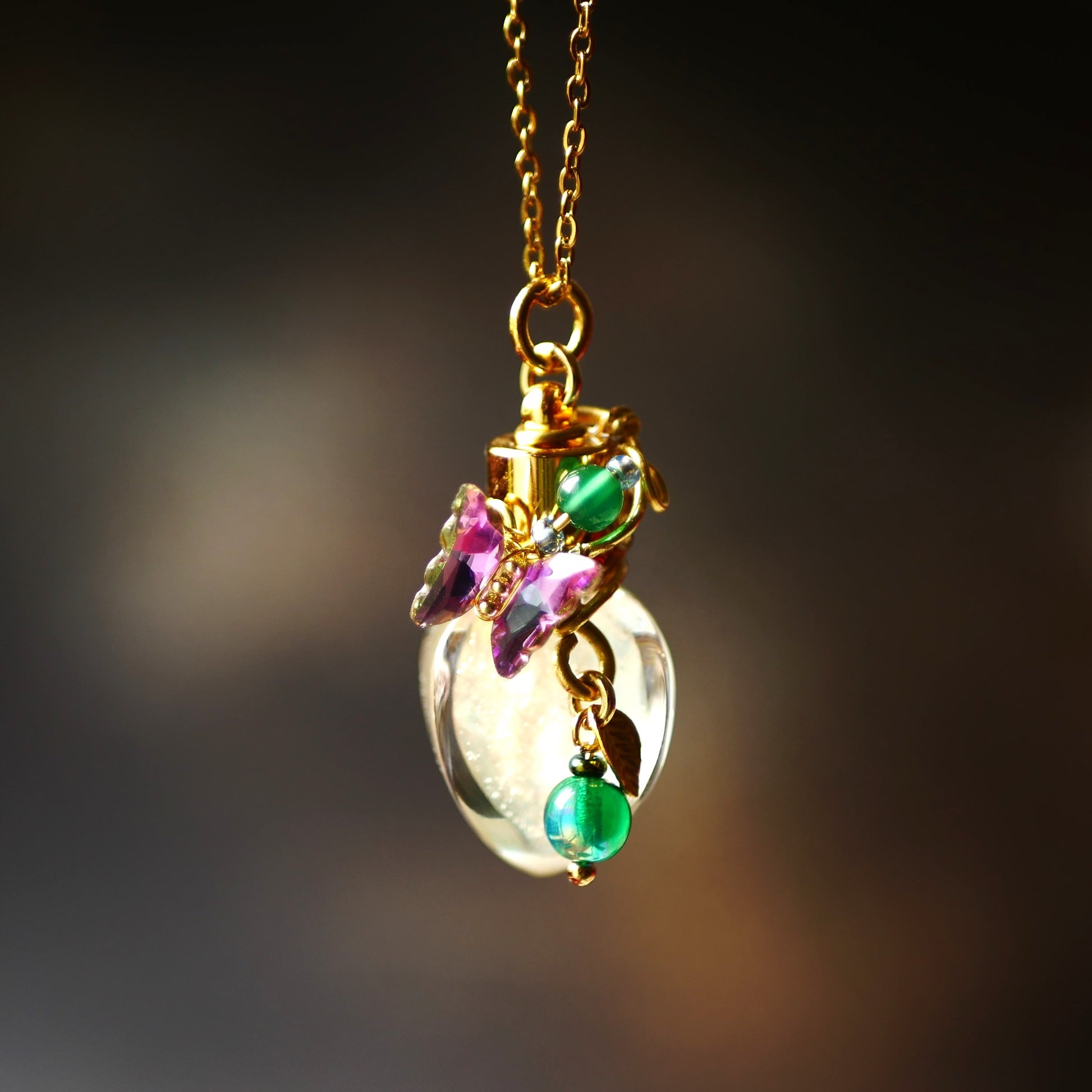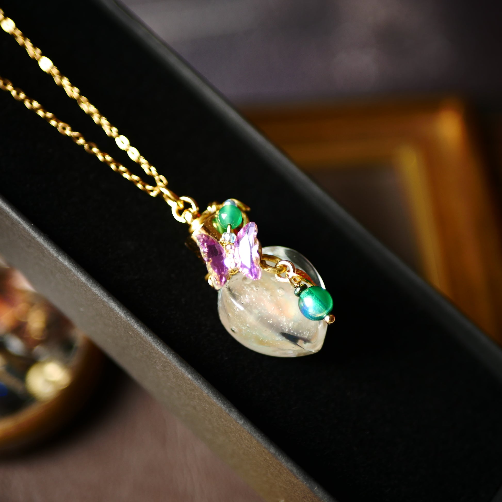 ガラスボトルに虹色の光り輝く液体(ジェル状)を閉じ込めています。