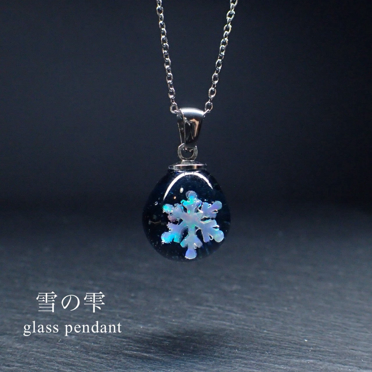 夜空に落ちる一粒の雪のようなイメージでデザインしたガラスペンダントです。