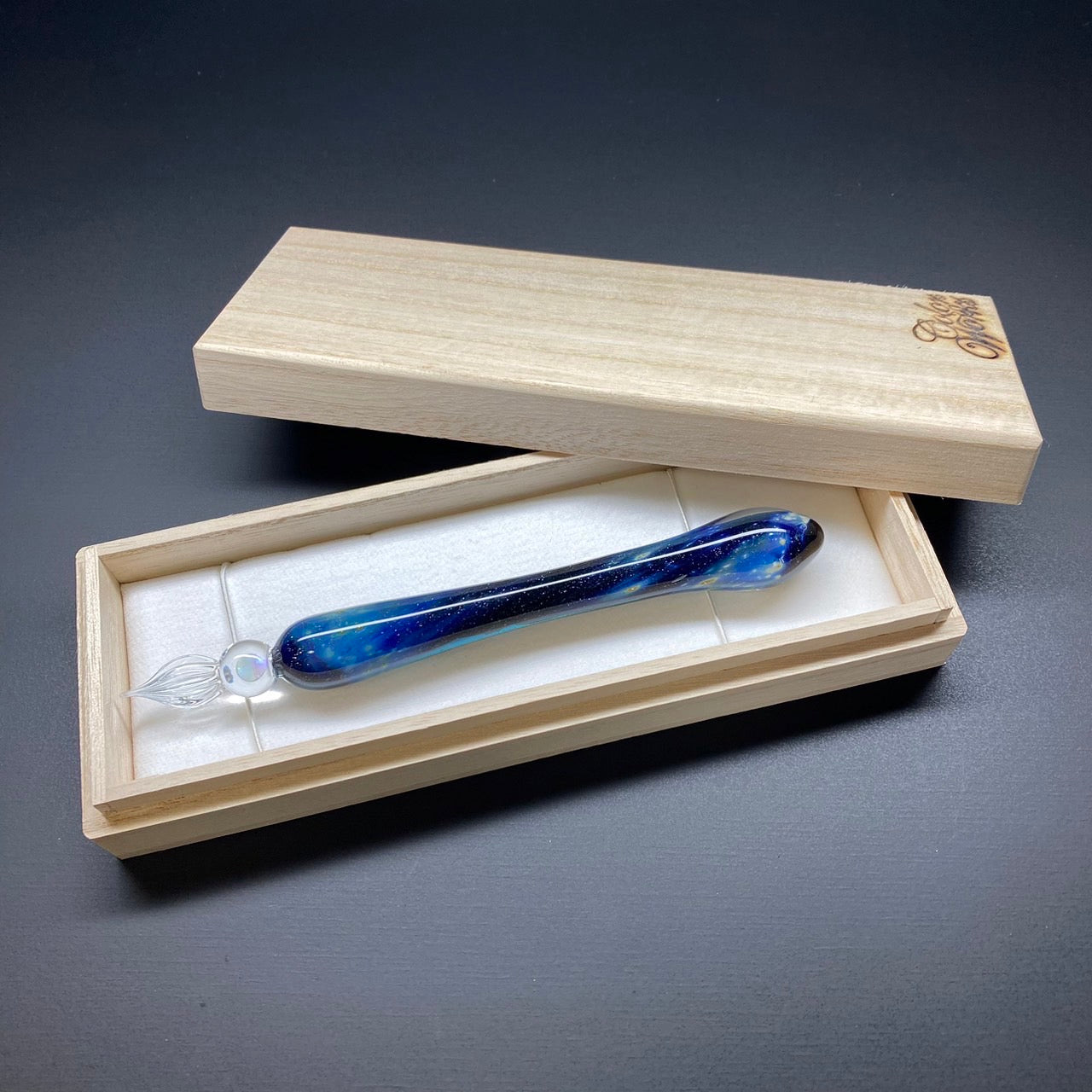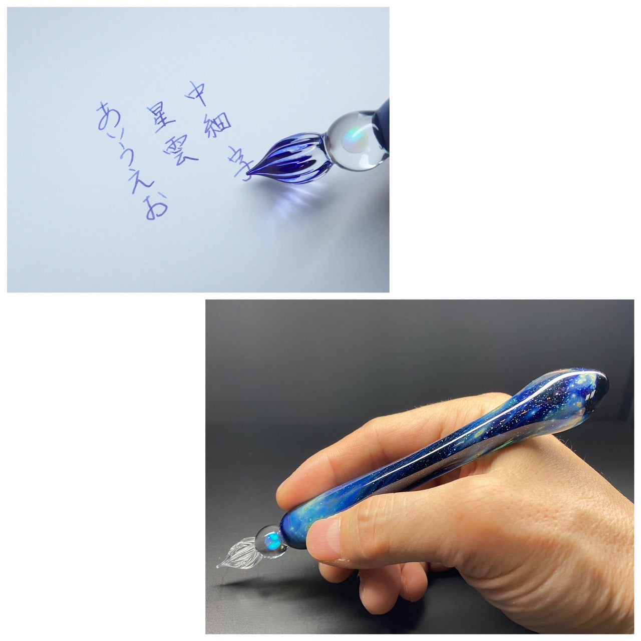 ペン先には地球の様に輝くブルーオパールが入っています。