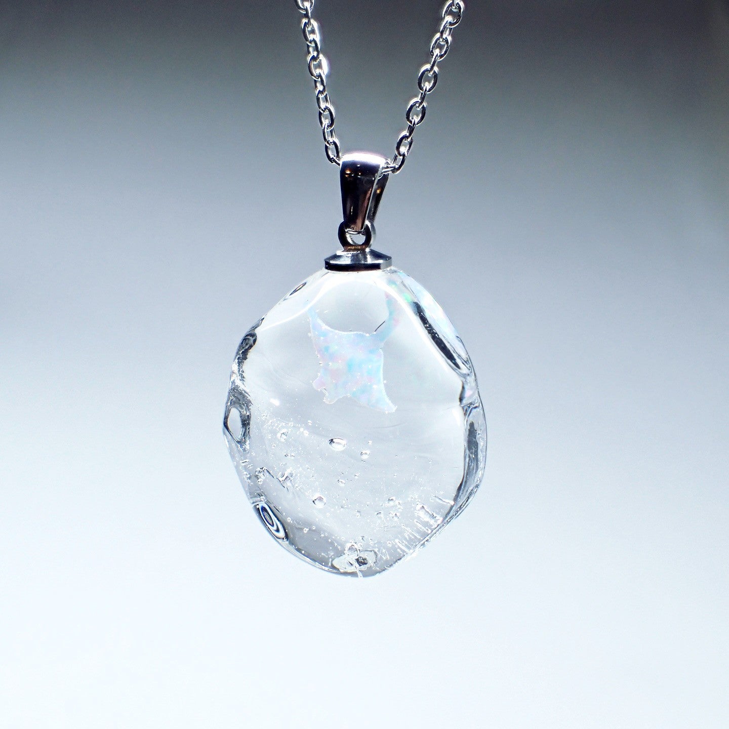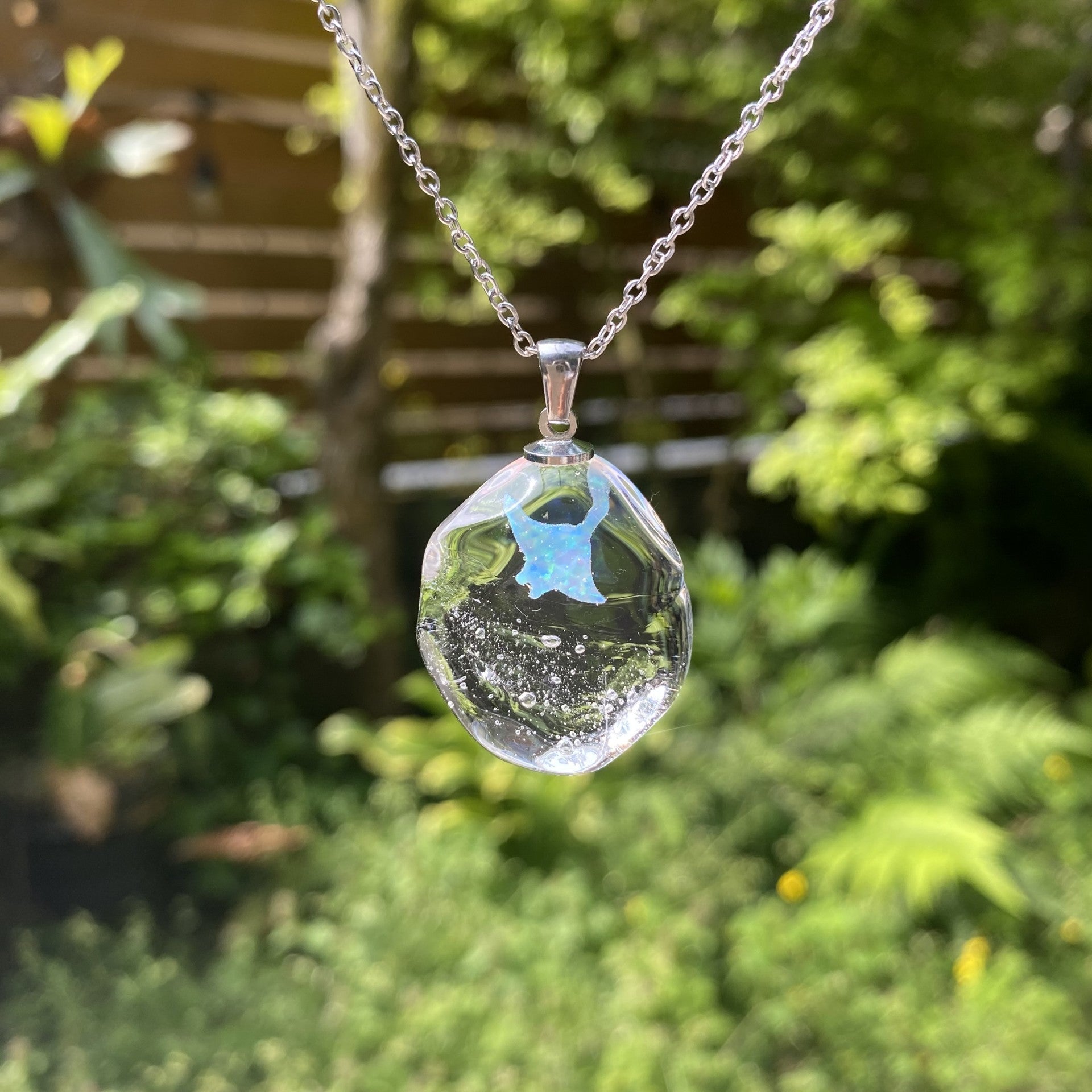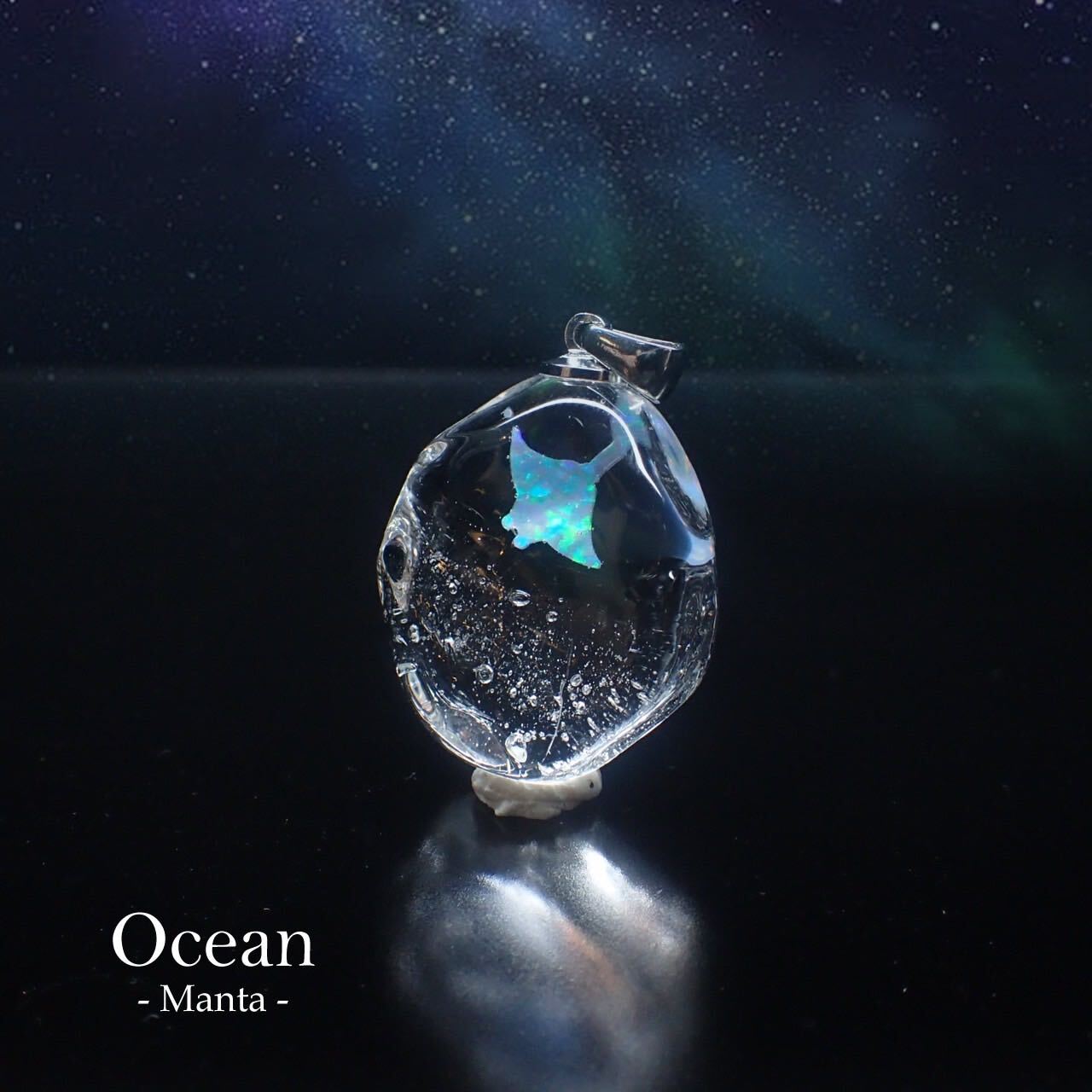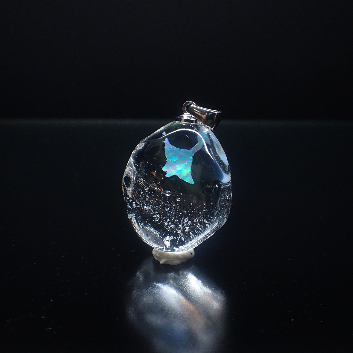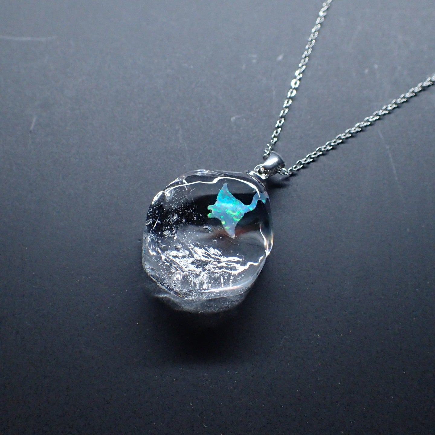 マンタの形をしたオパールを贅沢にガラスで包んだとても綺麗なペンダントです。