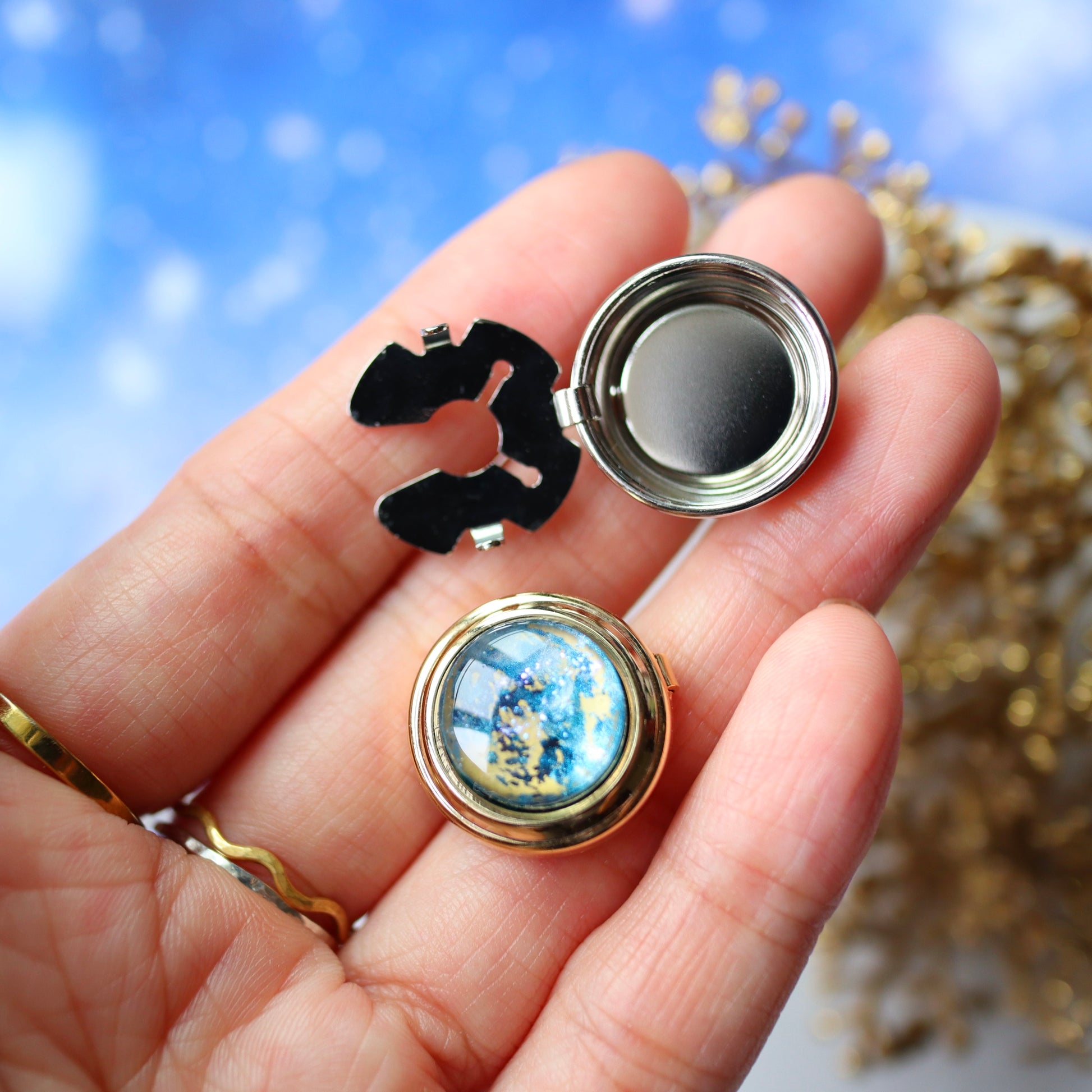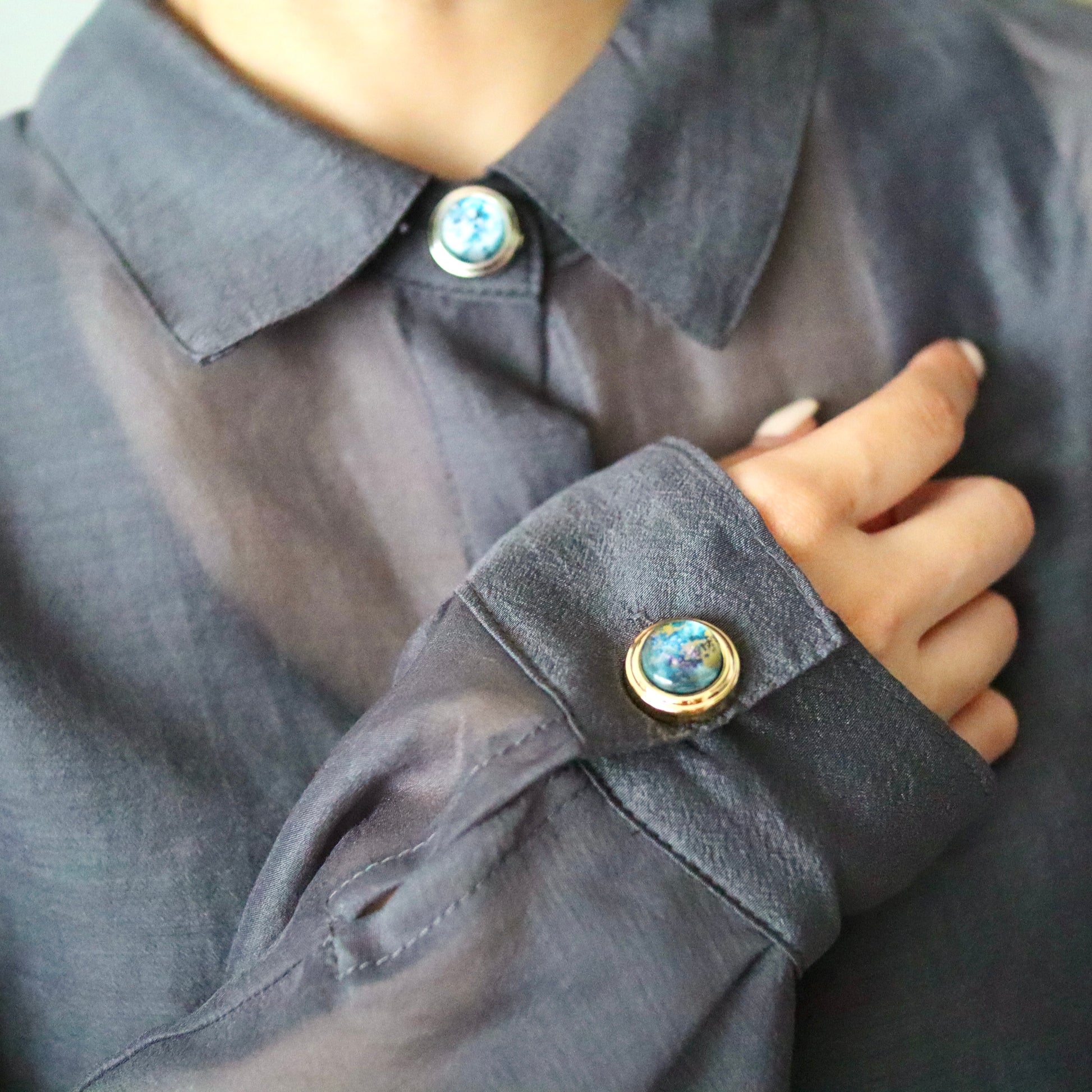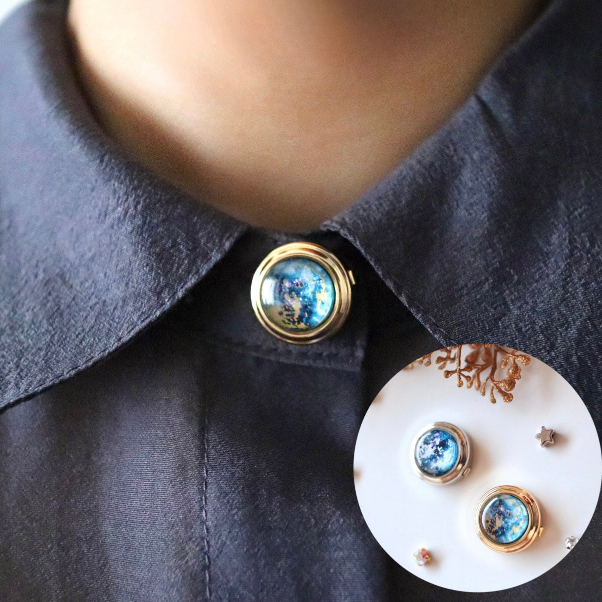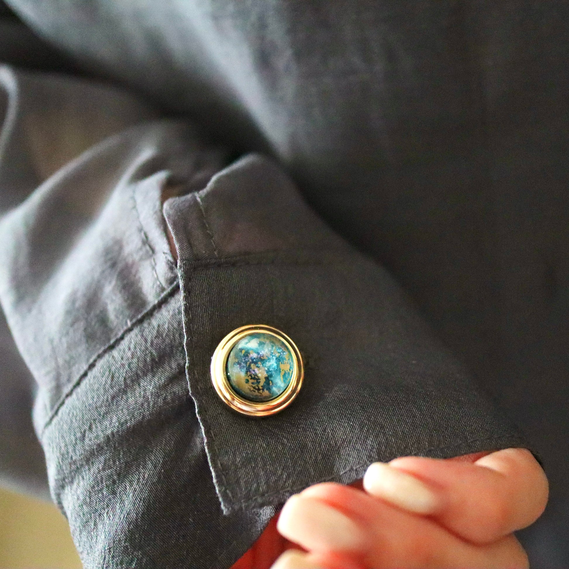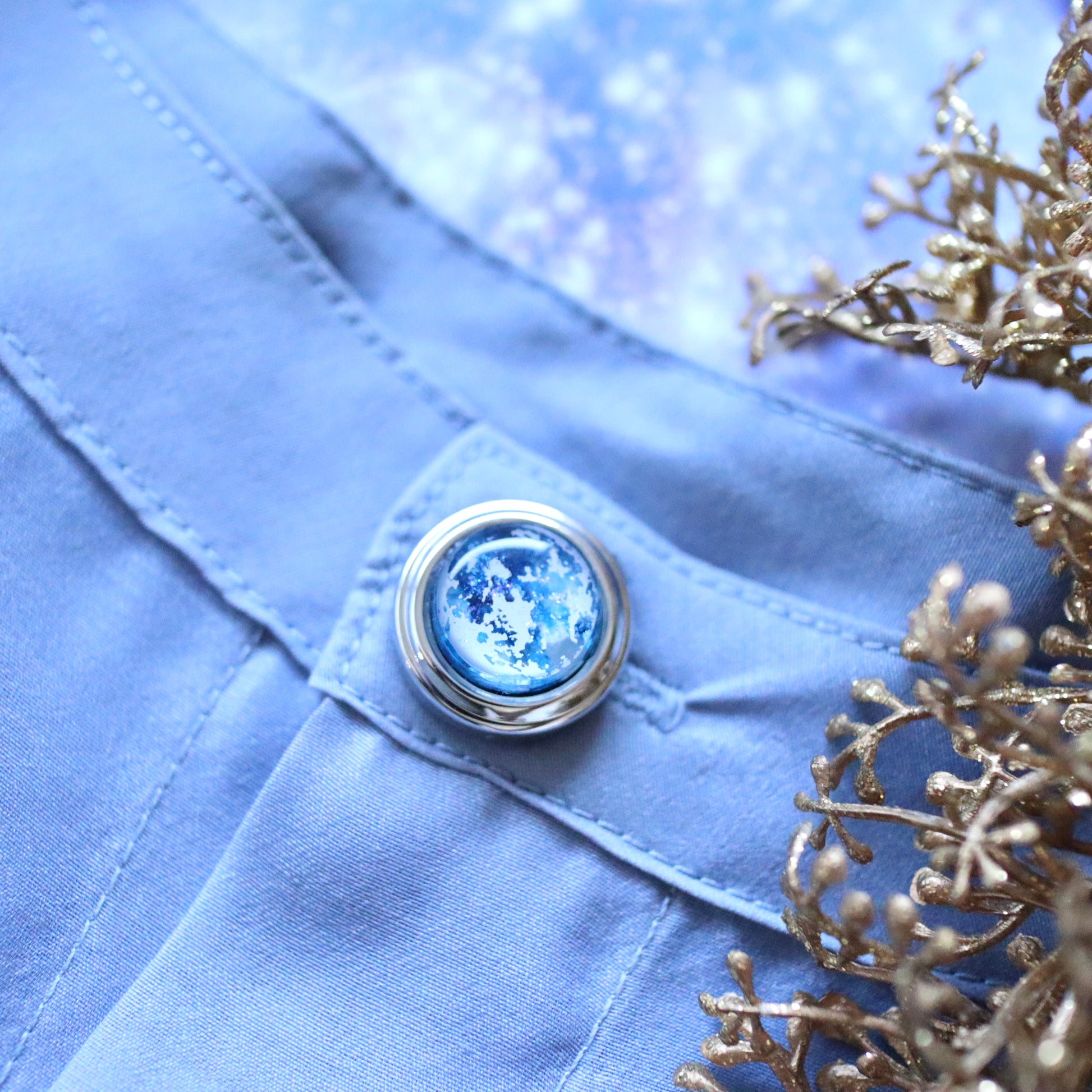 宙色に彩った満月モチーフのボタンカバーです。