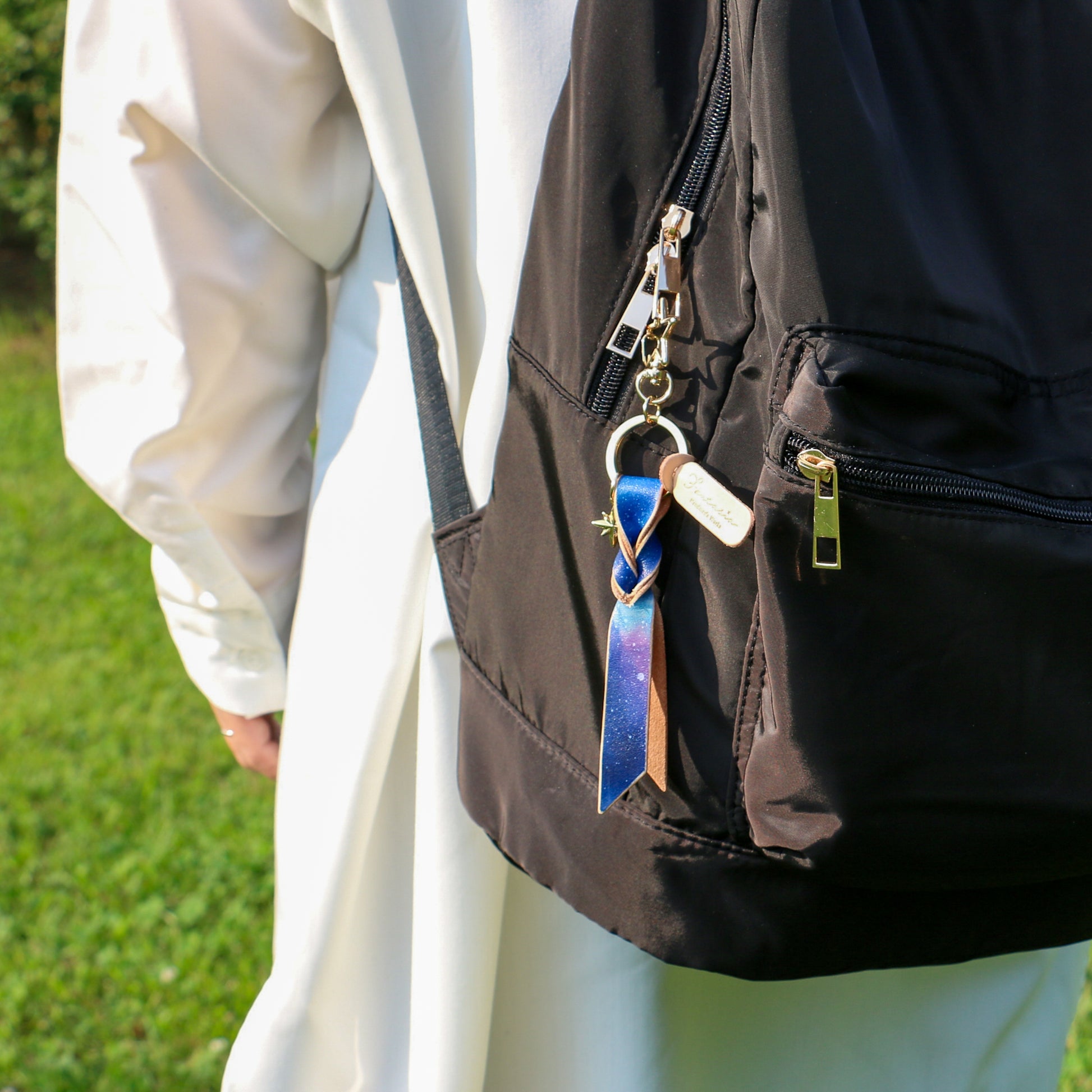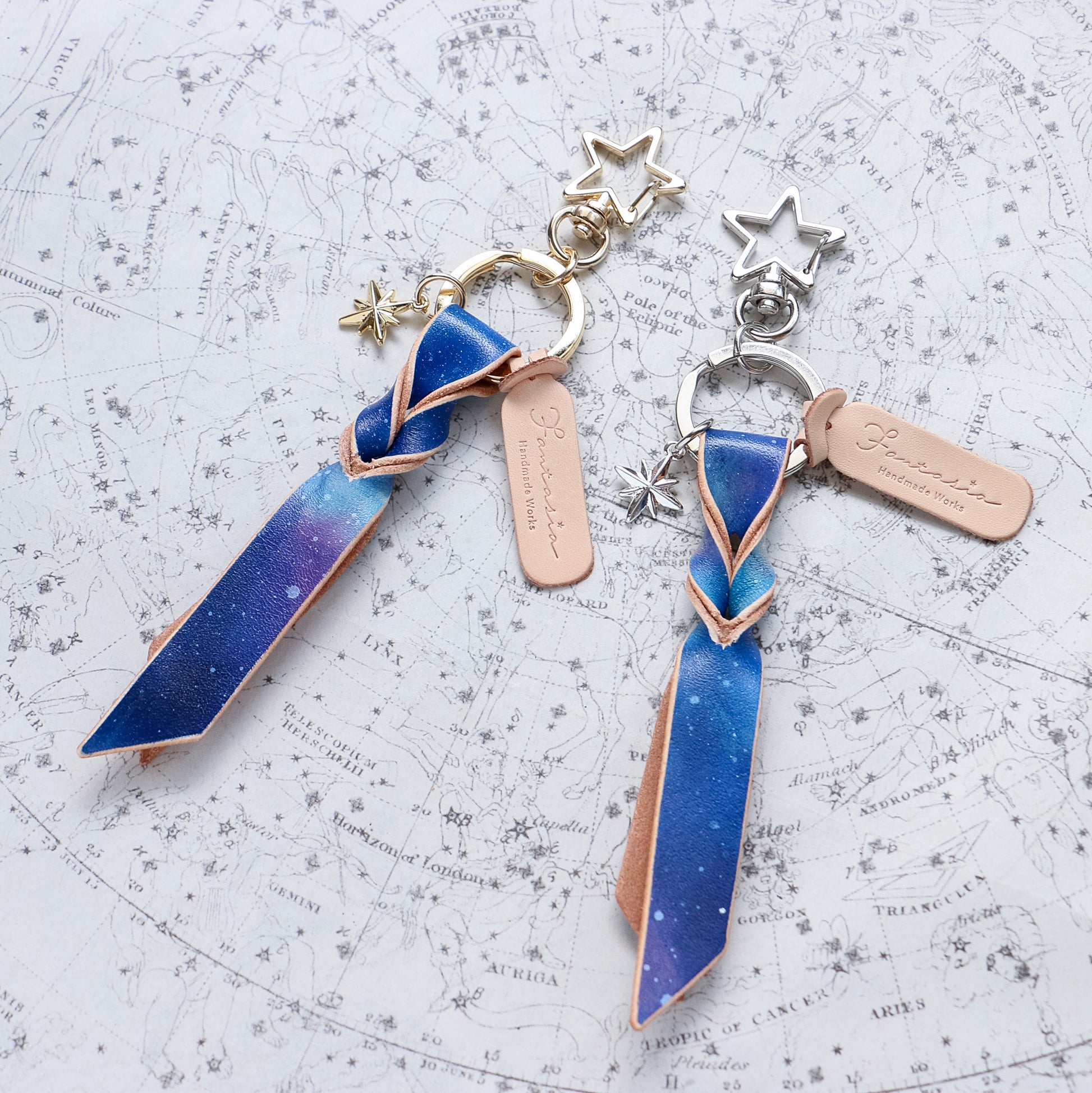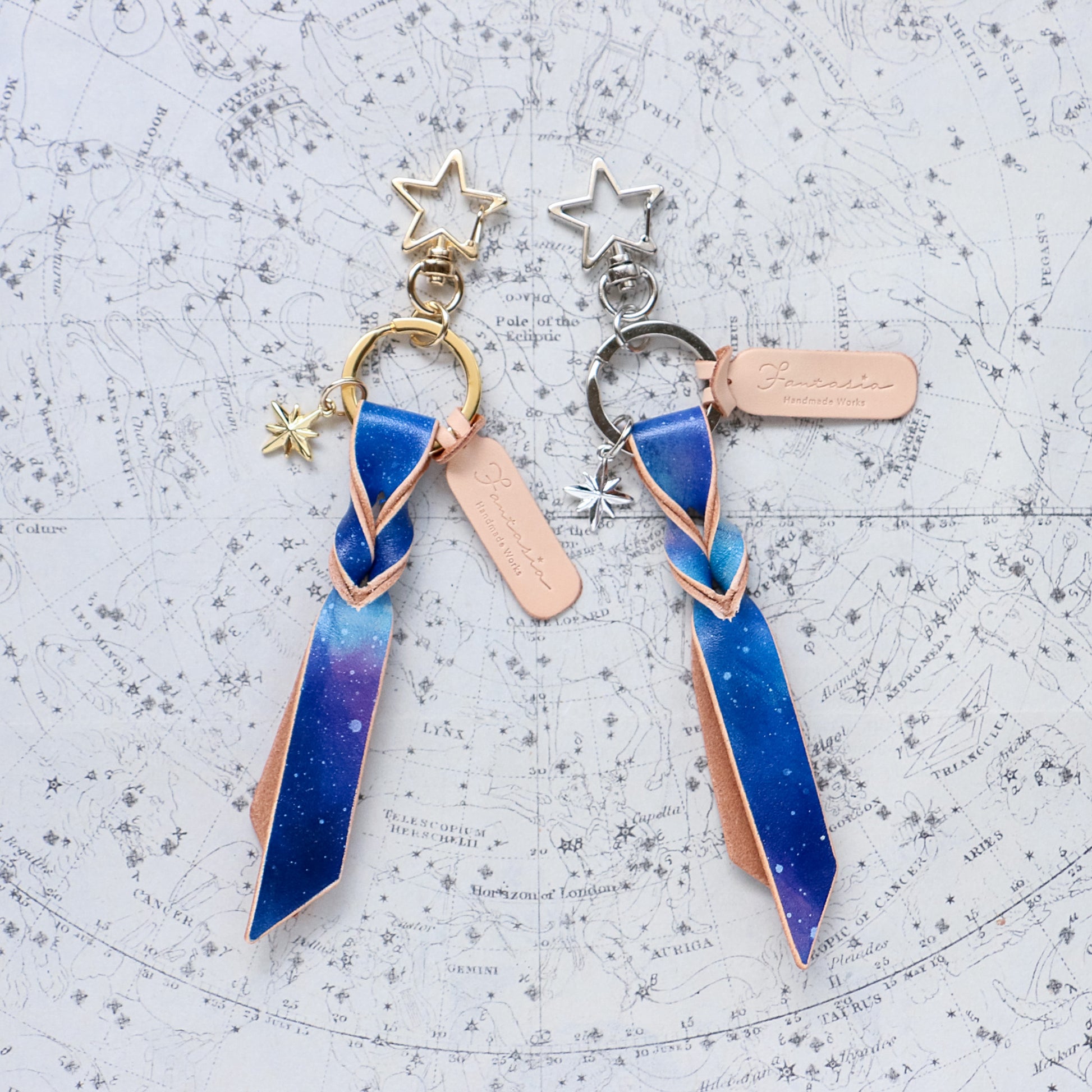 宇宙色に手染めした本革のキーリング「宙結(そらゆい)」。