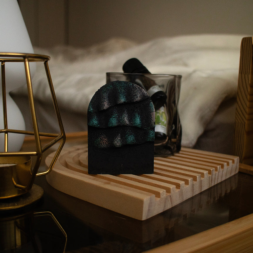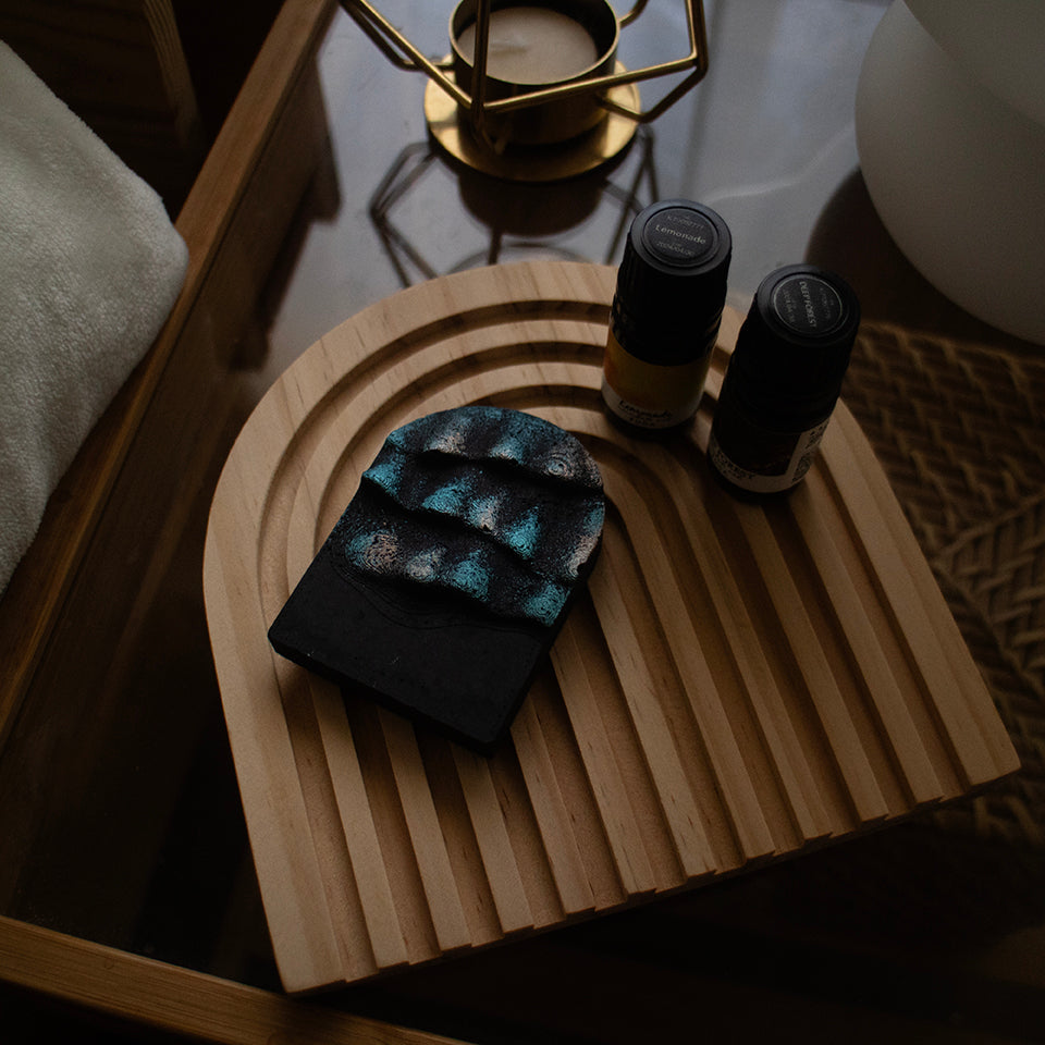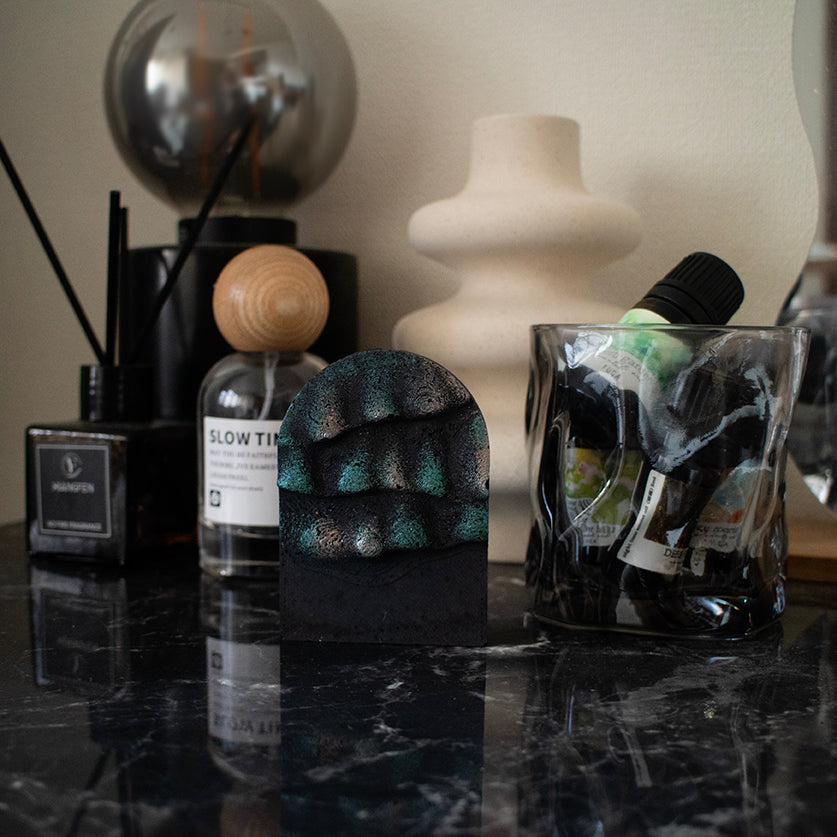 夜空に輝くオーロラを手のひらサイズに閉じ込めた、アロマストーンオブジェ。