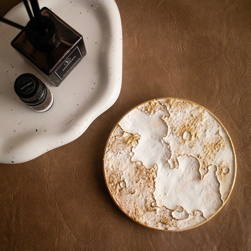 繊細な月のクレーター模様が特徴のアロマプレート。