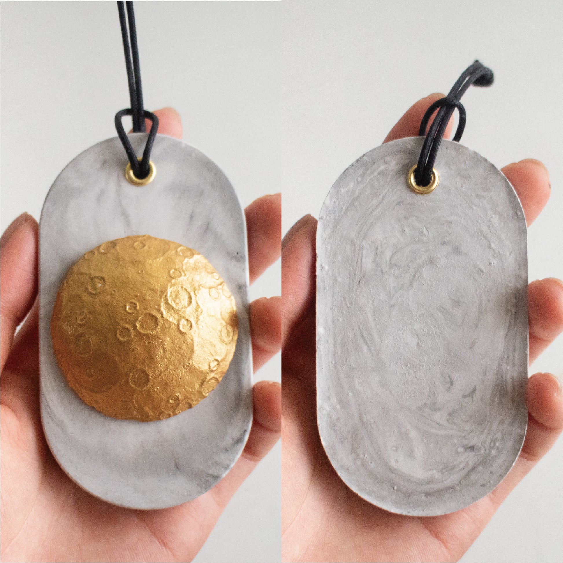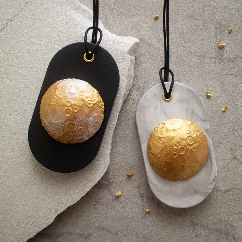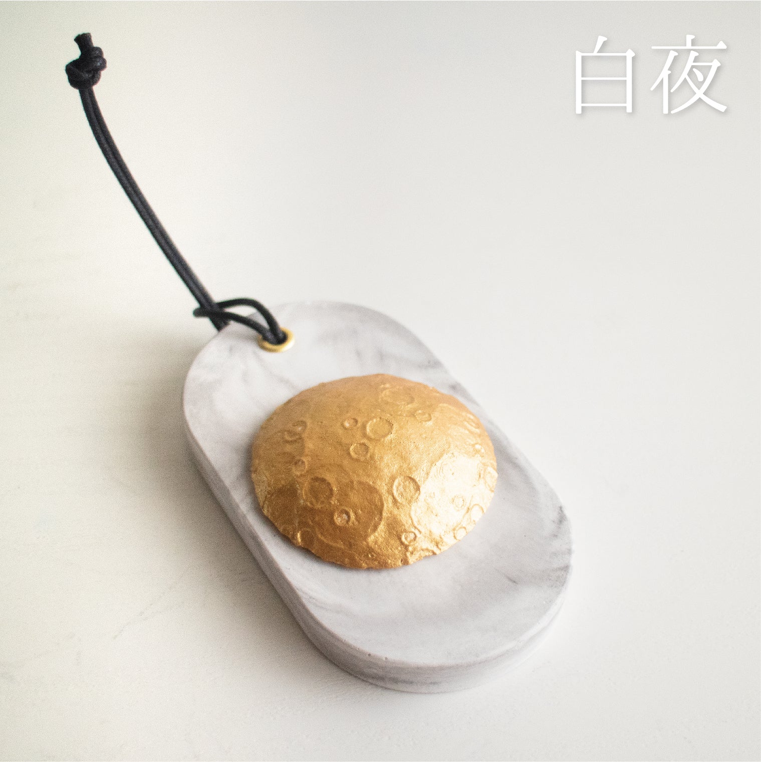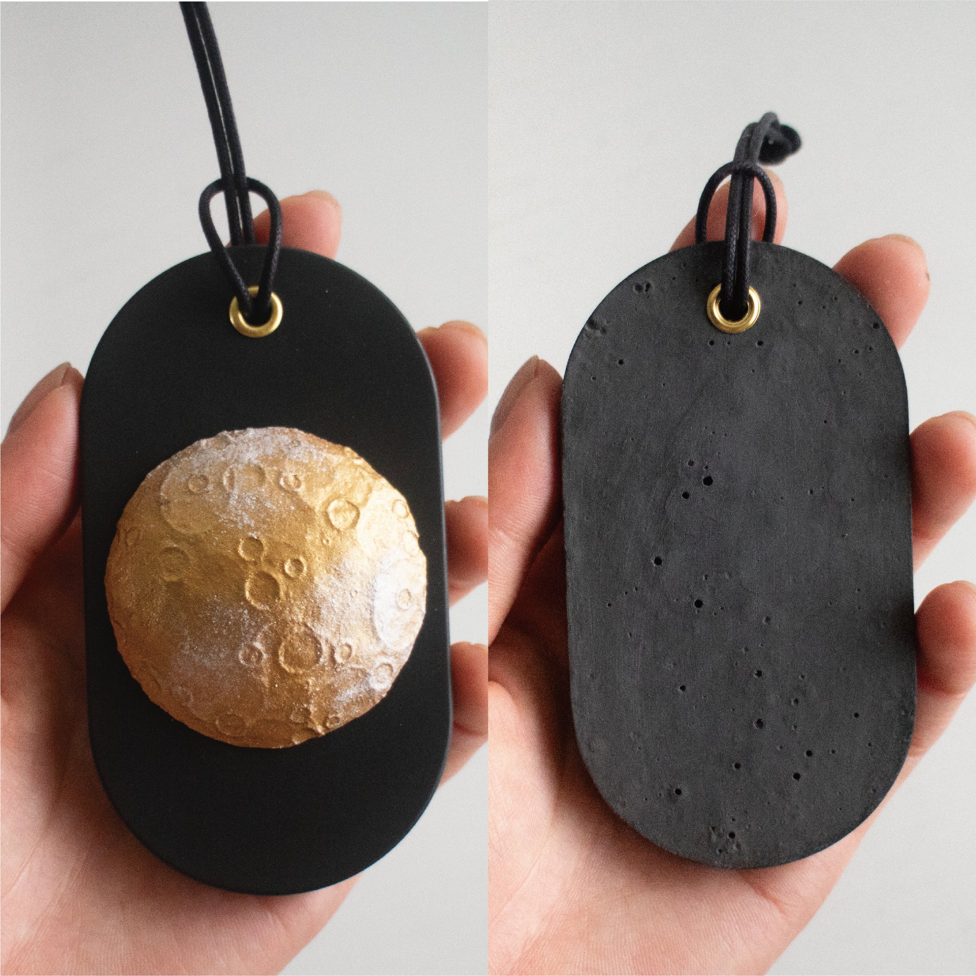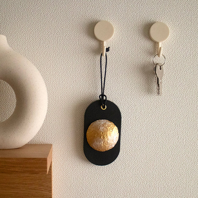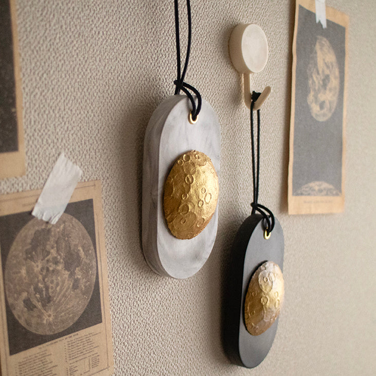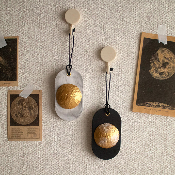 夜空をきらりと照らしてくれる、大きな満月モチーフの吊り下げ型アロマストーン。 キャンバスから飛び出したように立体的で、繊細なクレーター模様が特徴です。