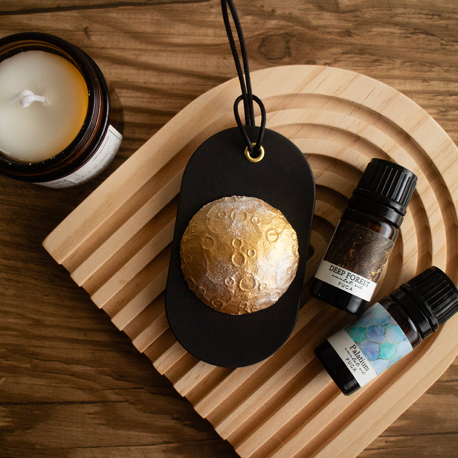 大きく立体的な満月が特徴的な、吊り下げ型のアロマストーンです。