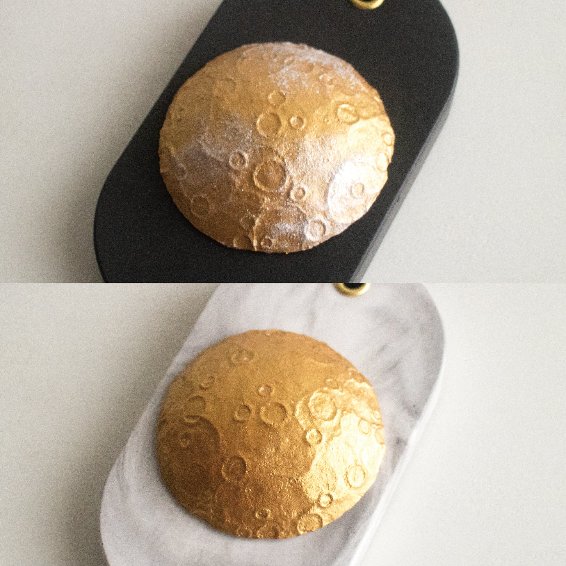 スミクロのような柔らかい黒の空に、シルバーのランダム塗装の入ったゴールドムーン