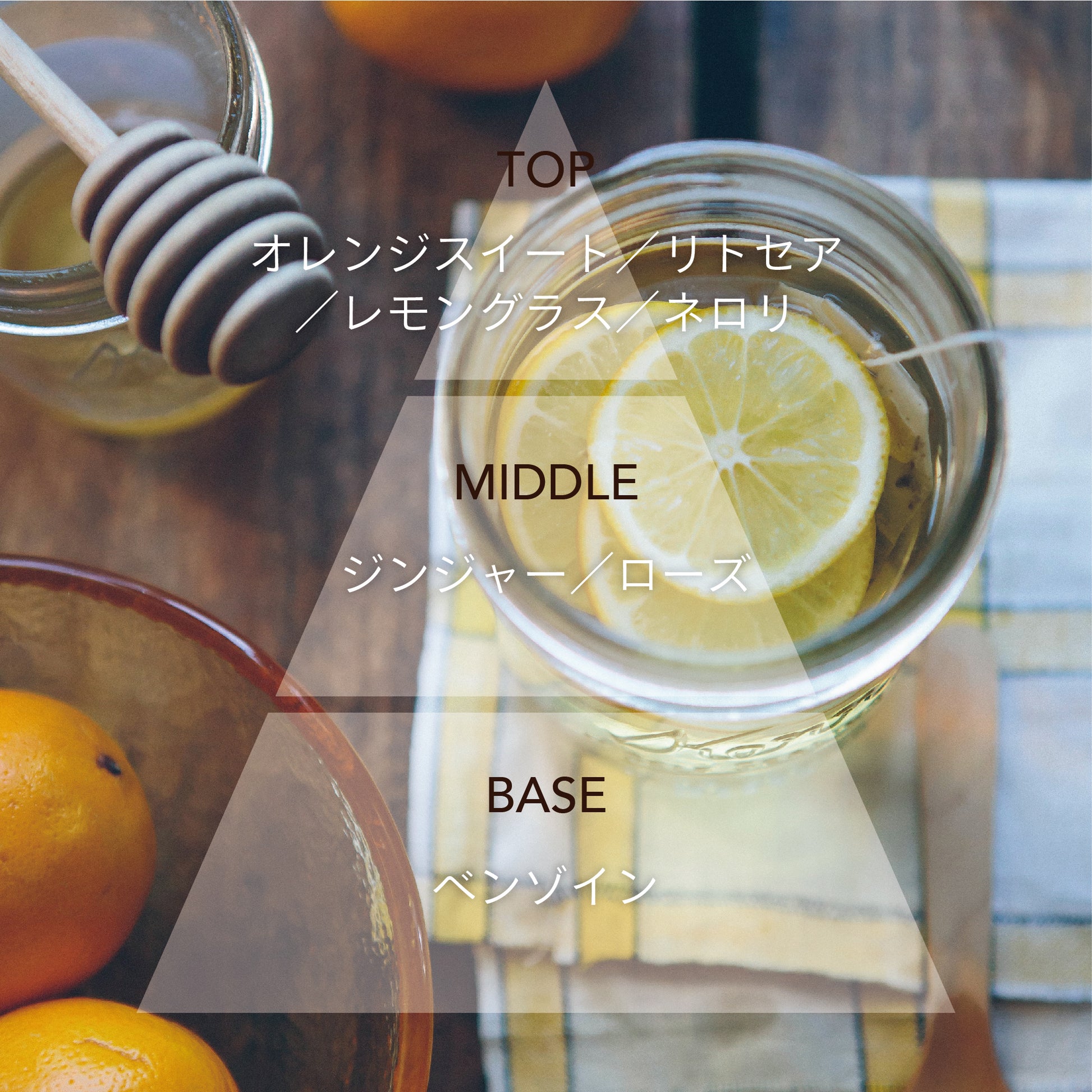 爽やかなレモンに甘いはちみつをかけたほっと落ち着くスイートシトラスノート。