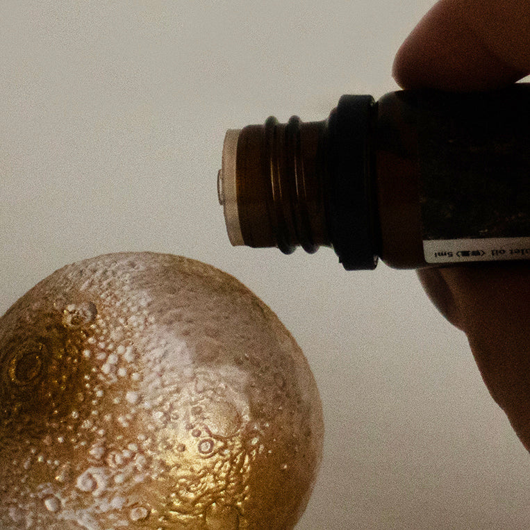 「オブジェとして映えることはもちろん、精油のシミも活かしたデザインに」と考えて製作いたしました。