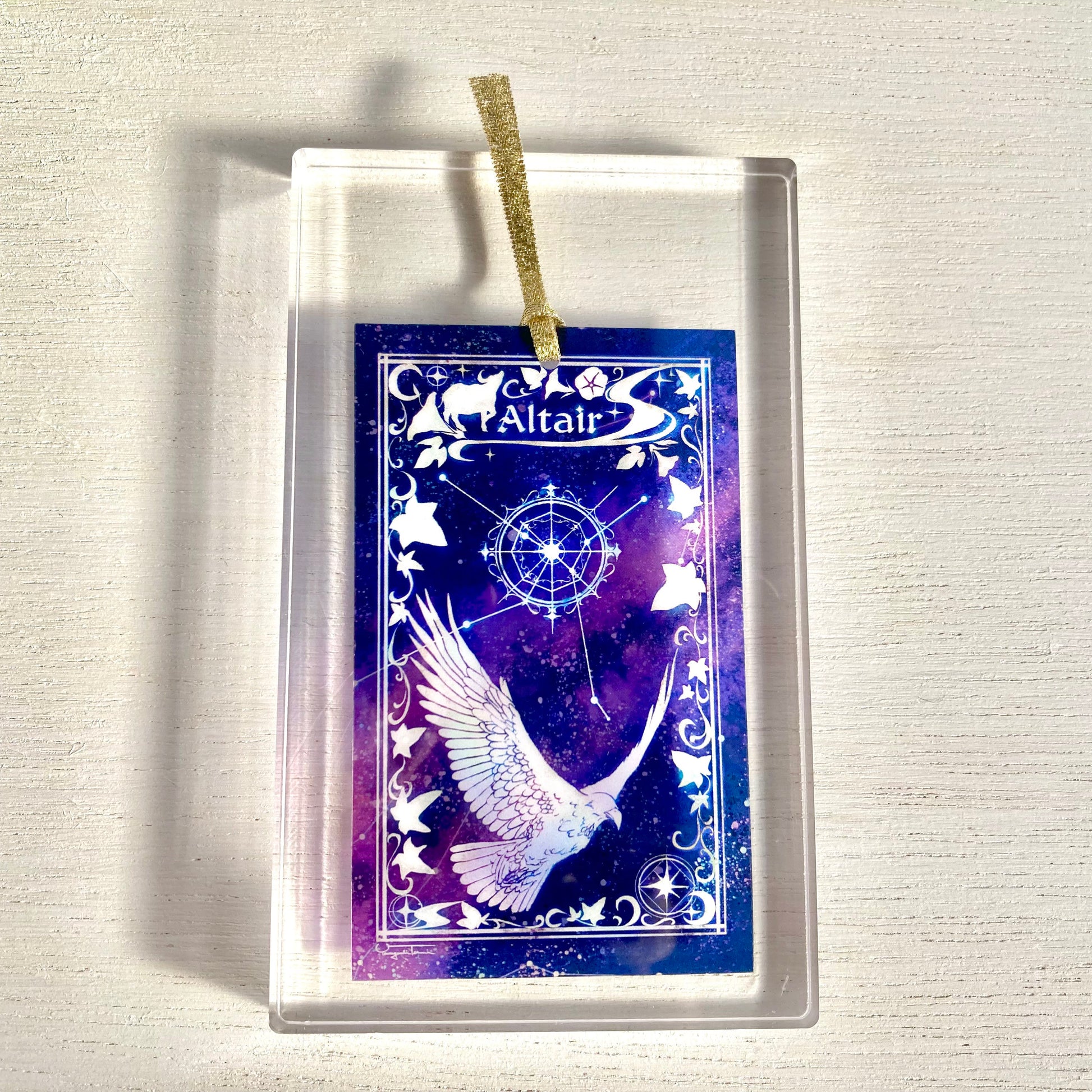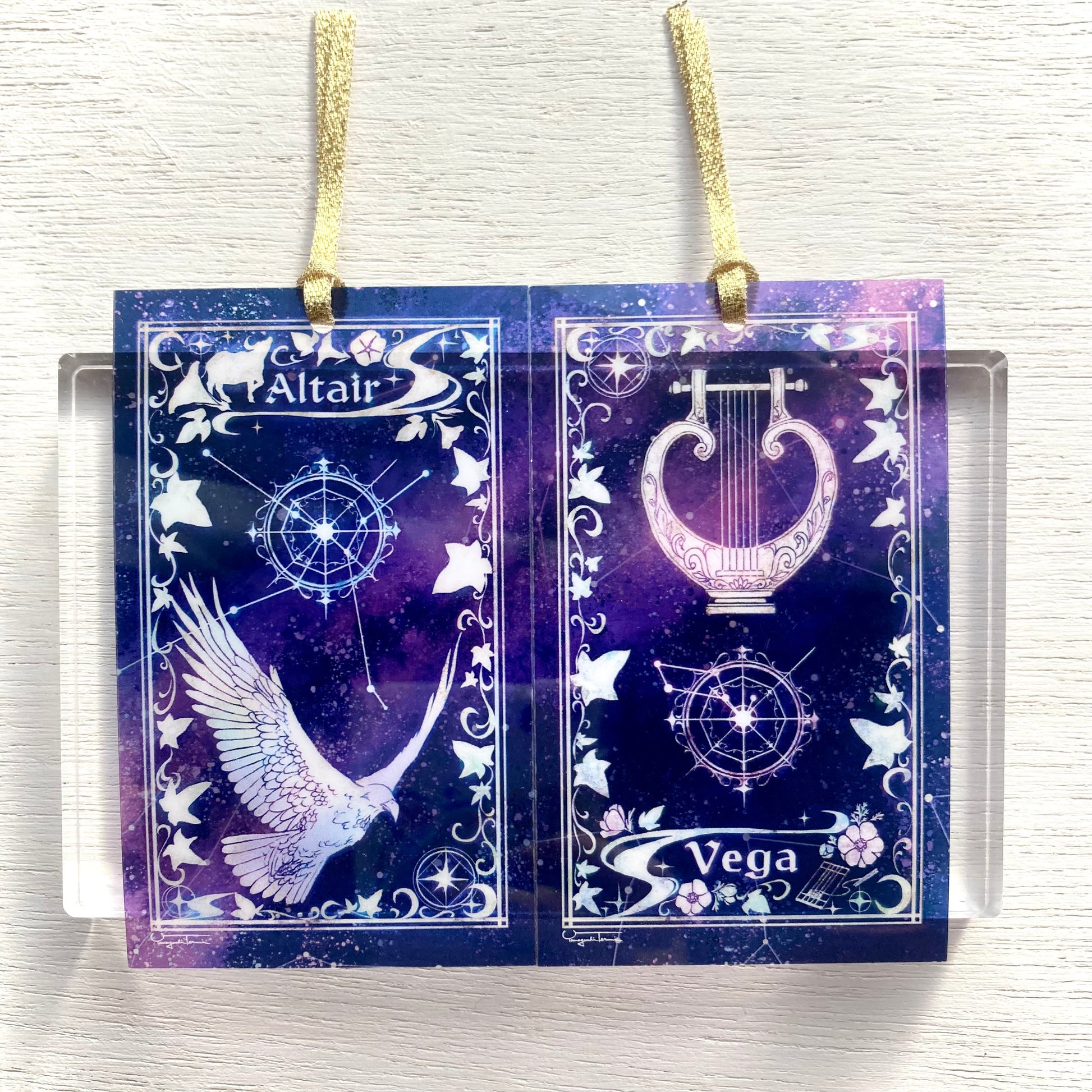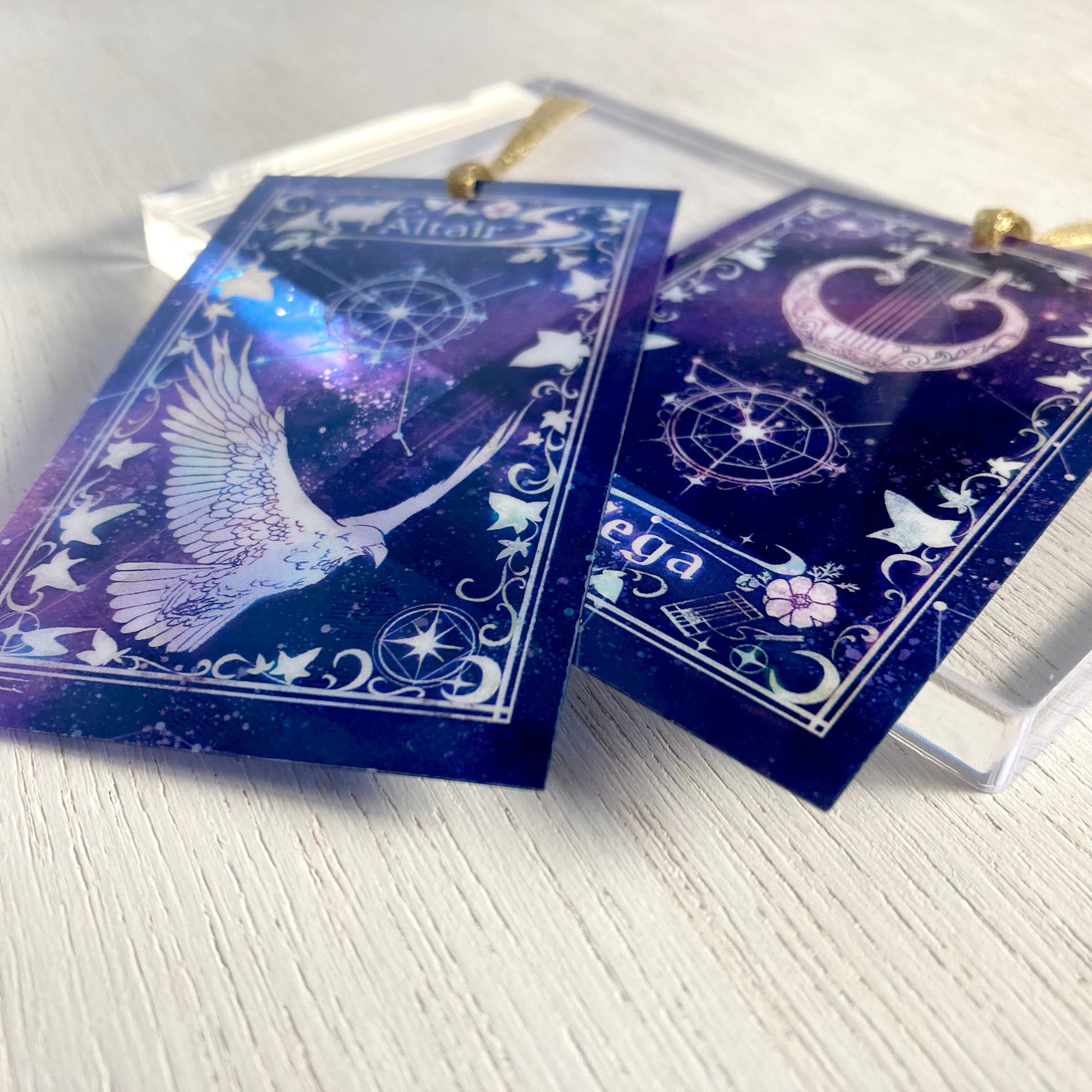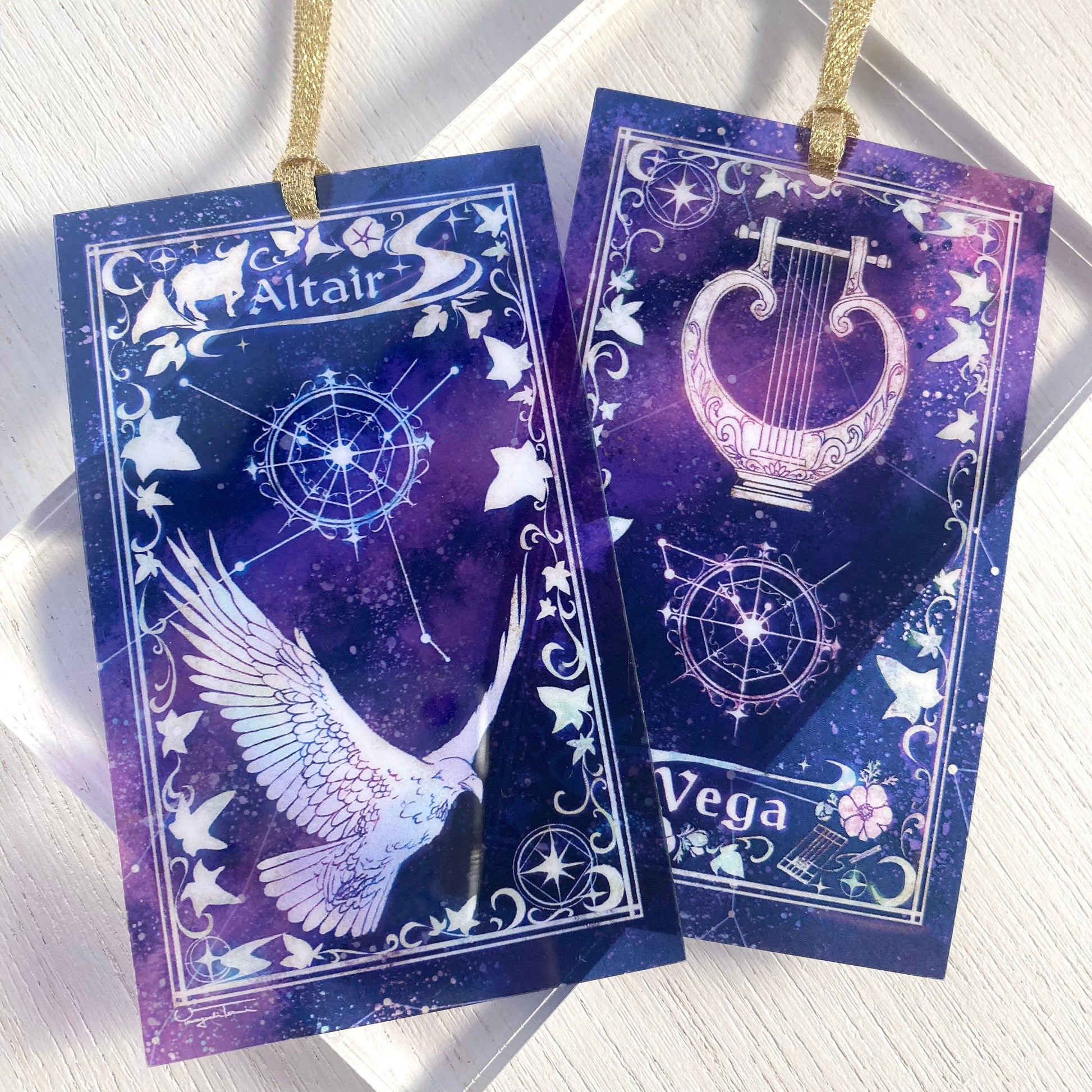牽牛星(アルタイル)と織姫星(ベガ)の透明しおりです。