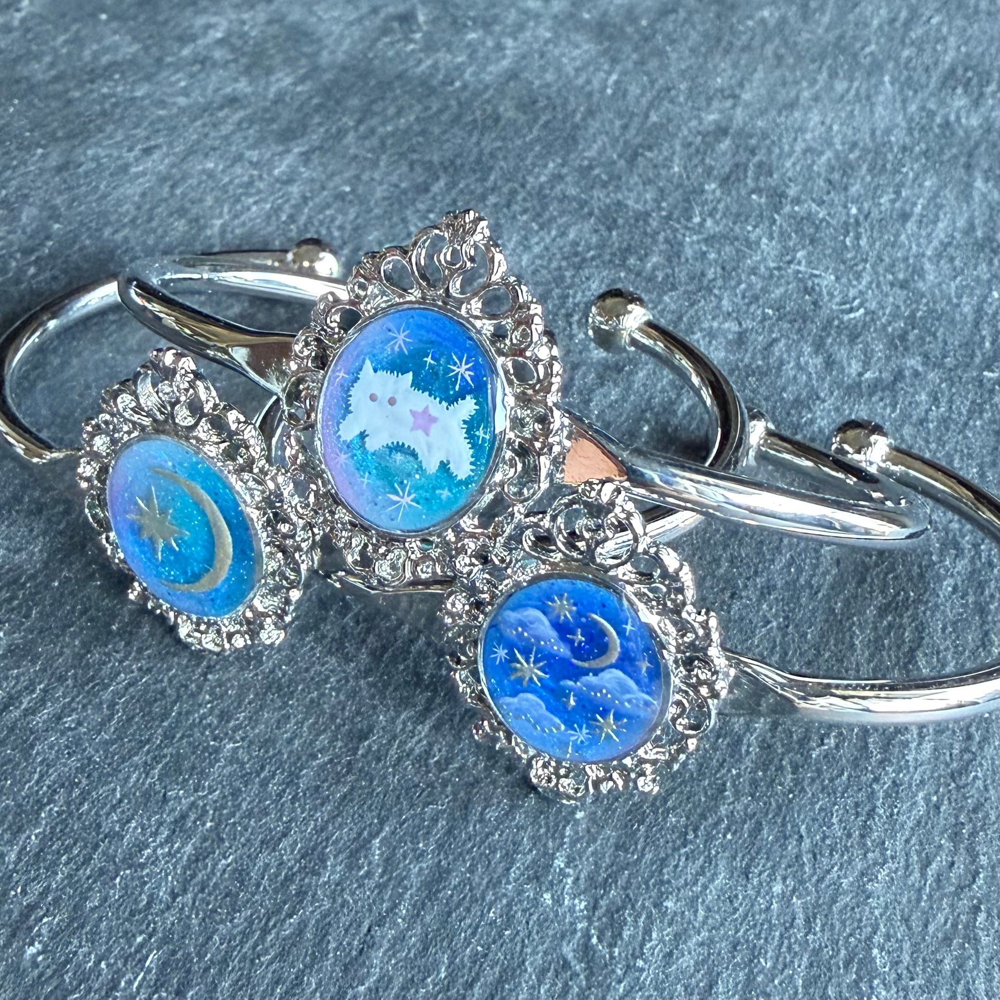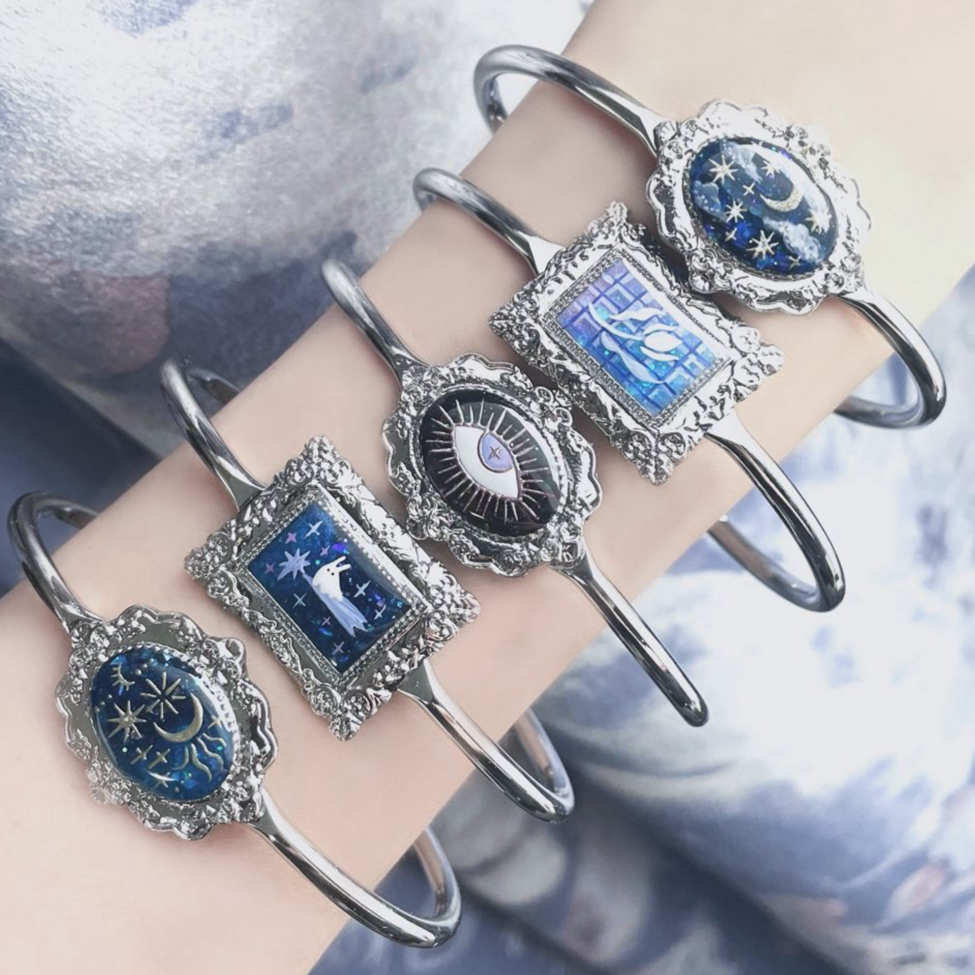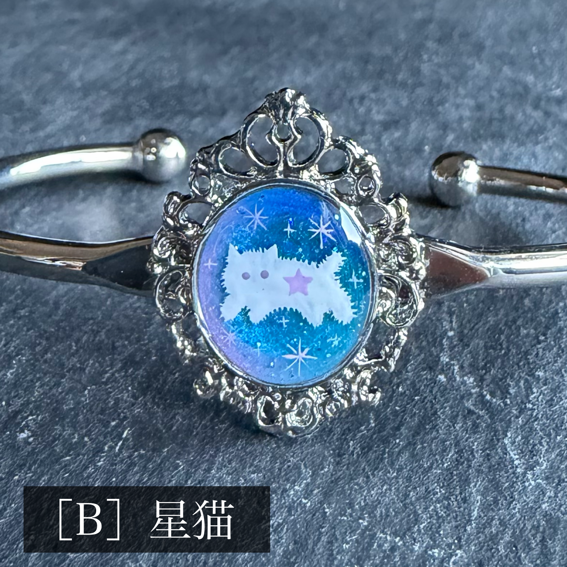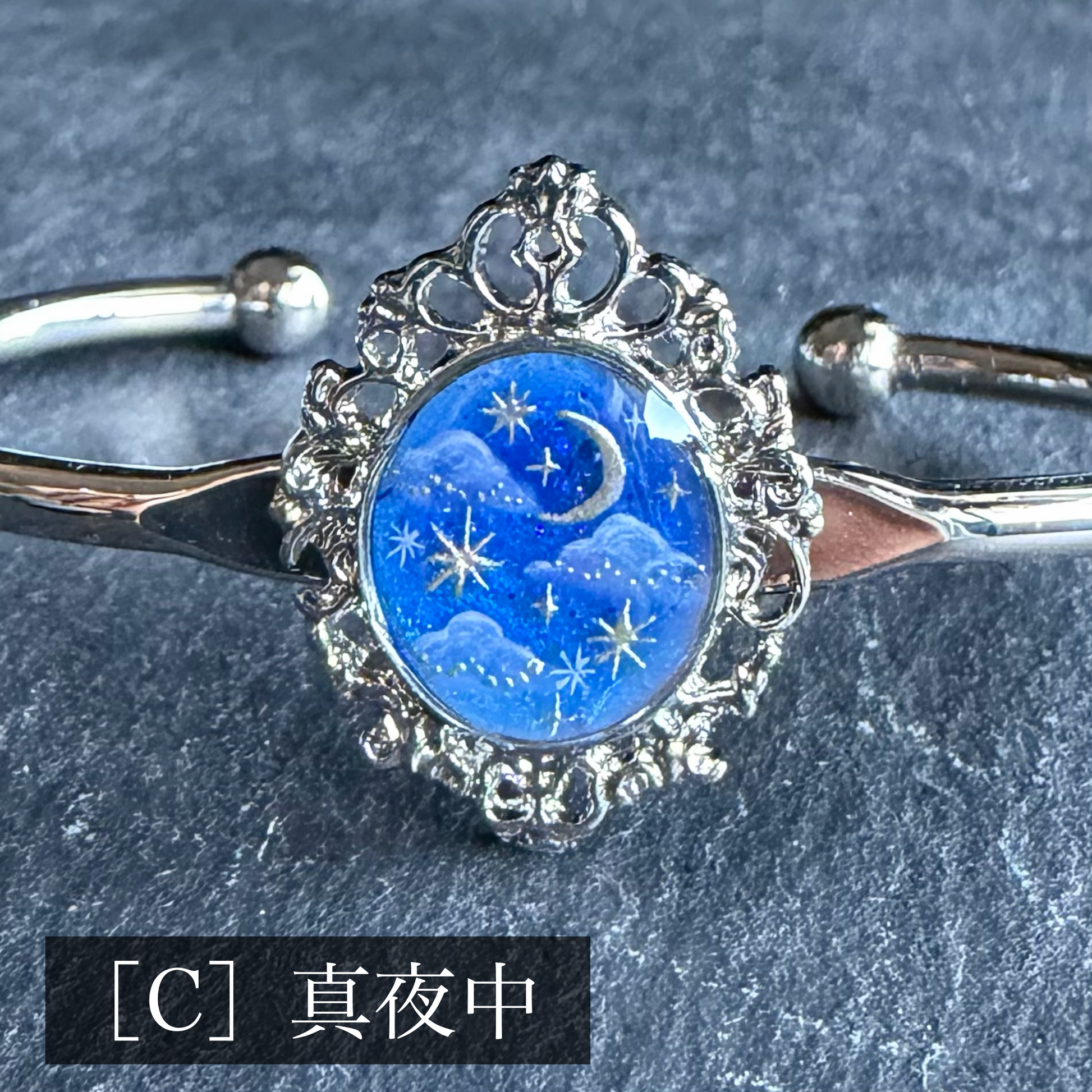 手描きで仕上げた絵画のバングル。