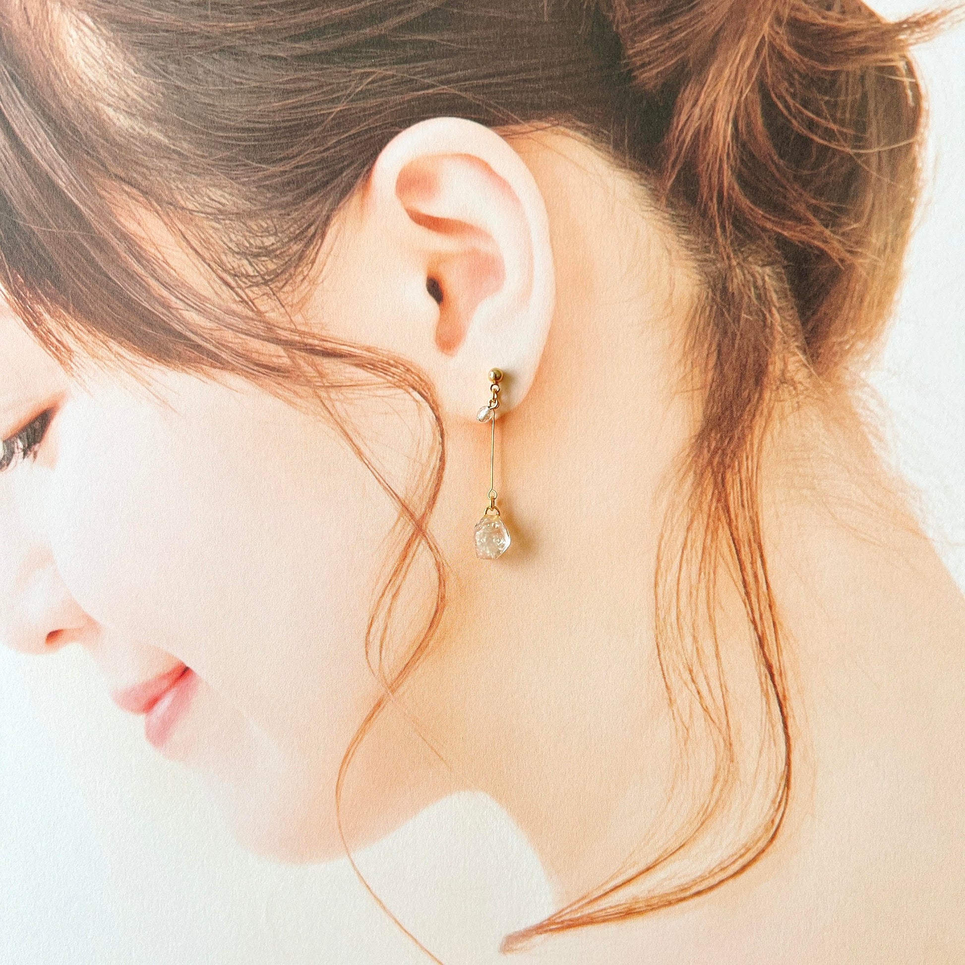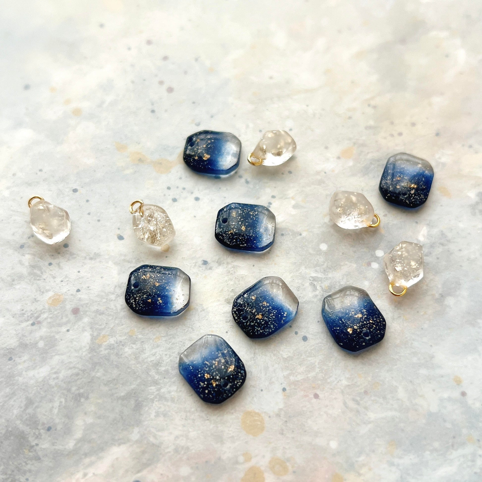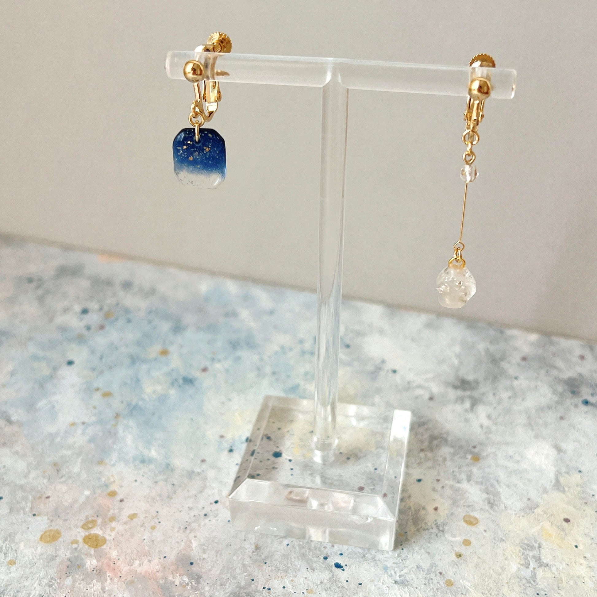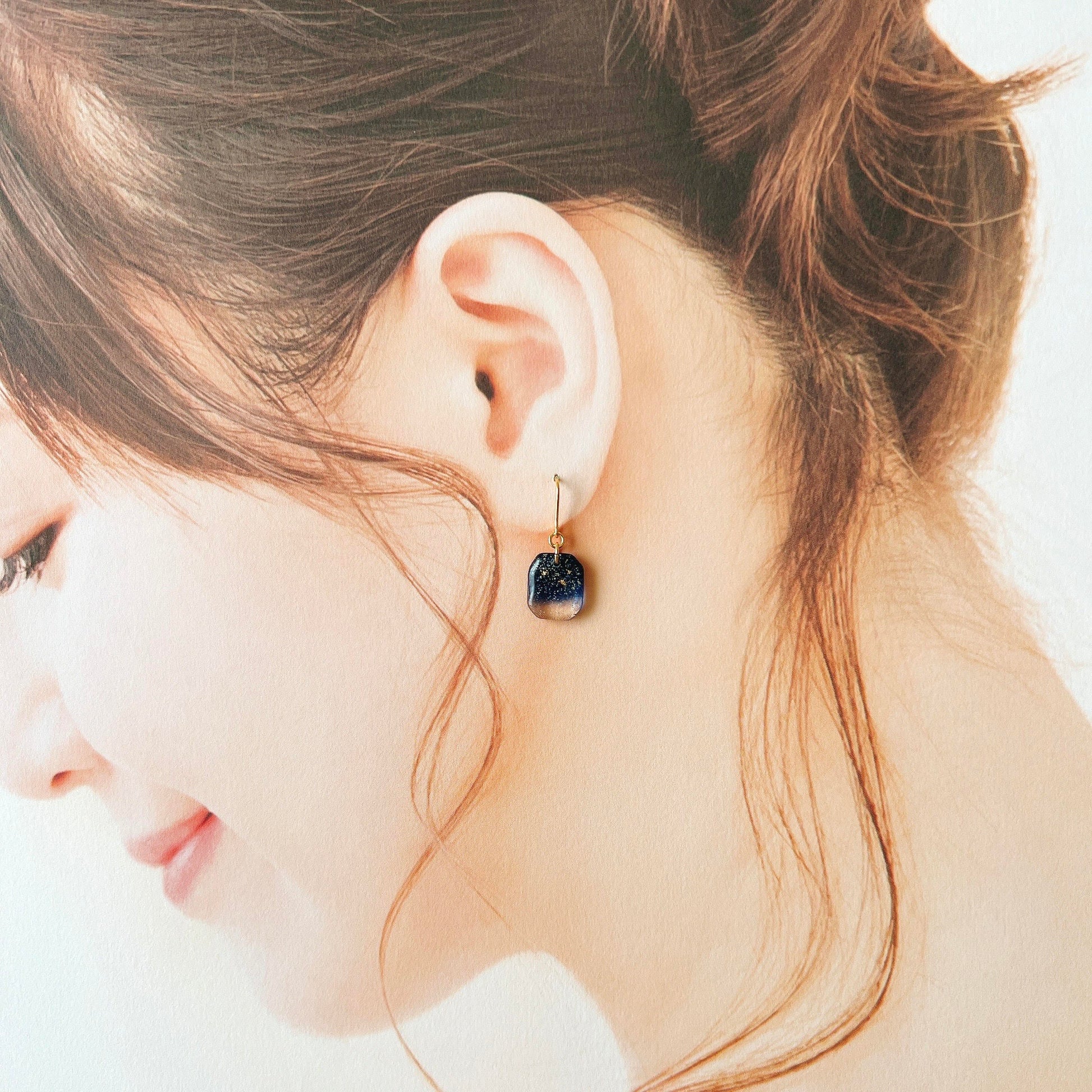 星が輝く夜空をイメージして製作したソラノシリーズの耳飾りです。