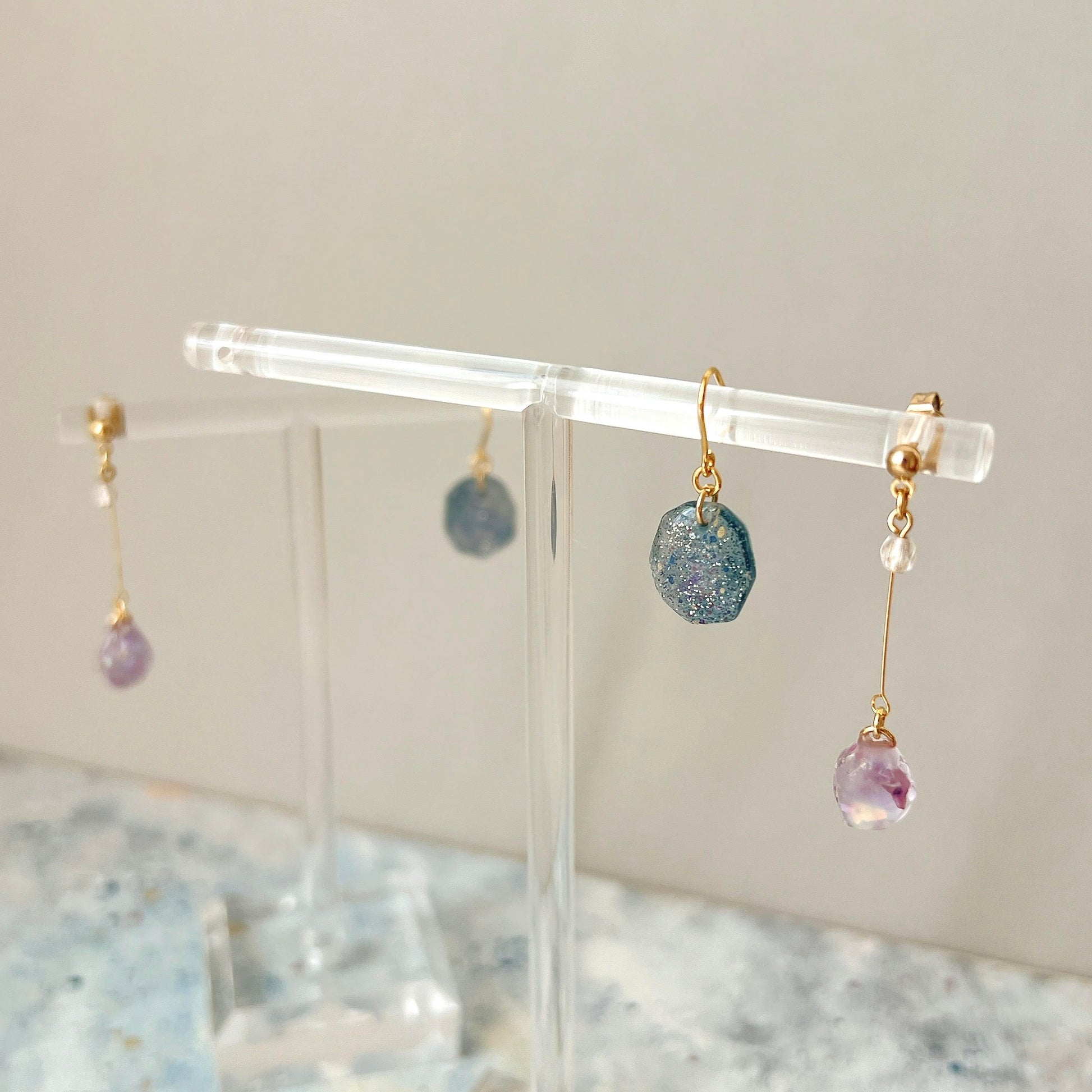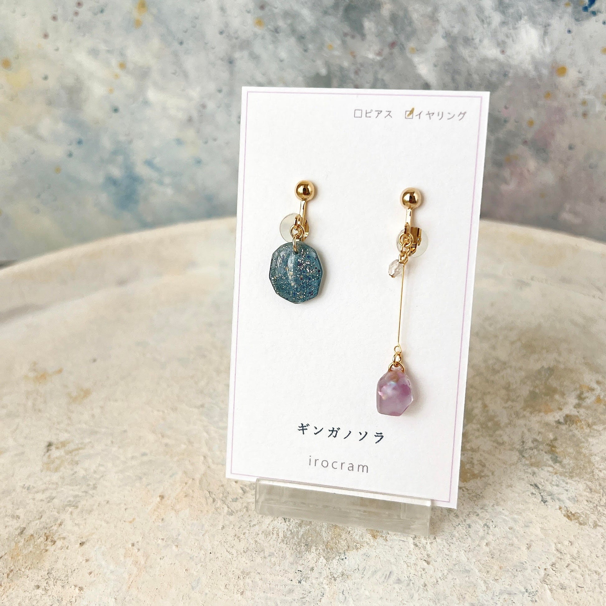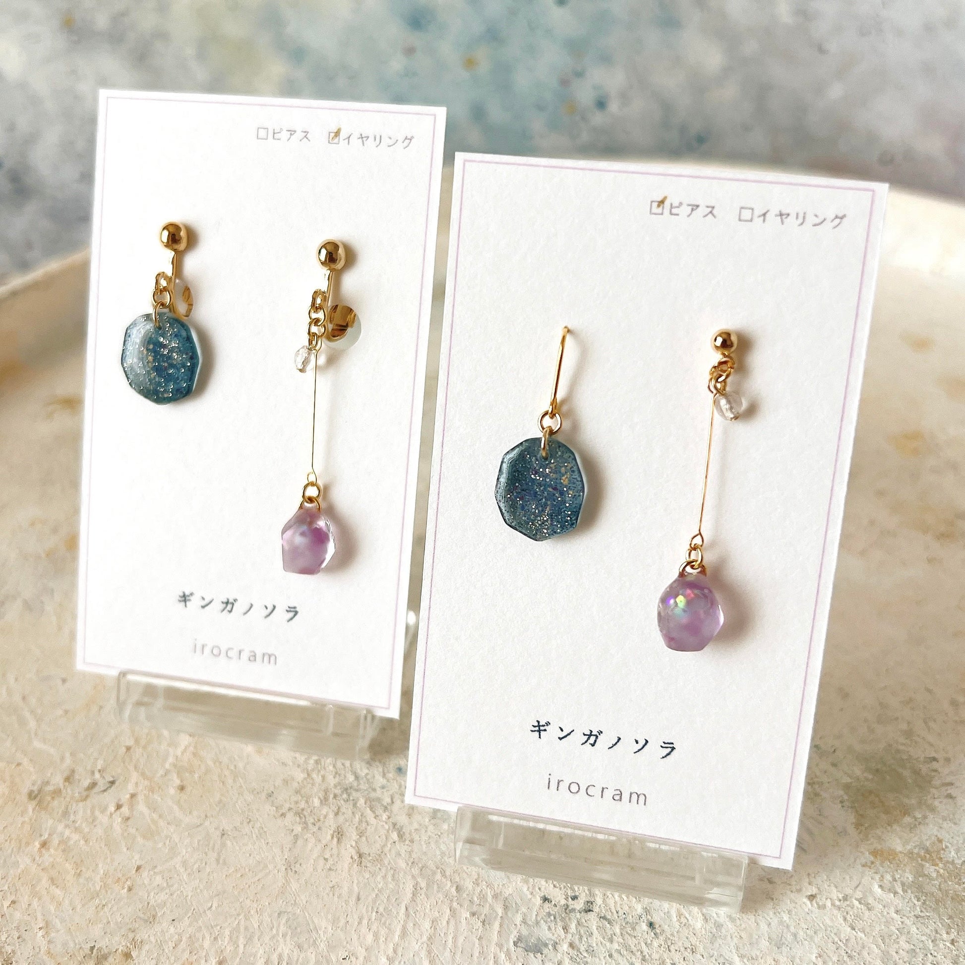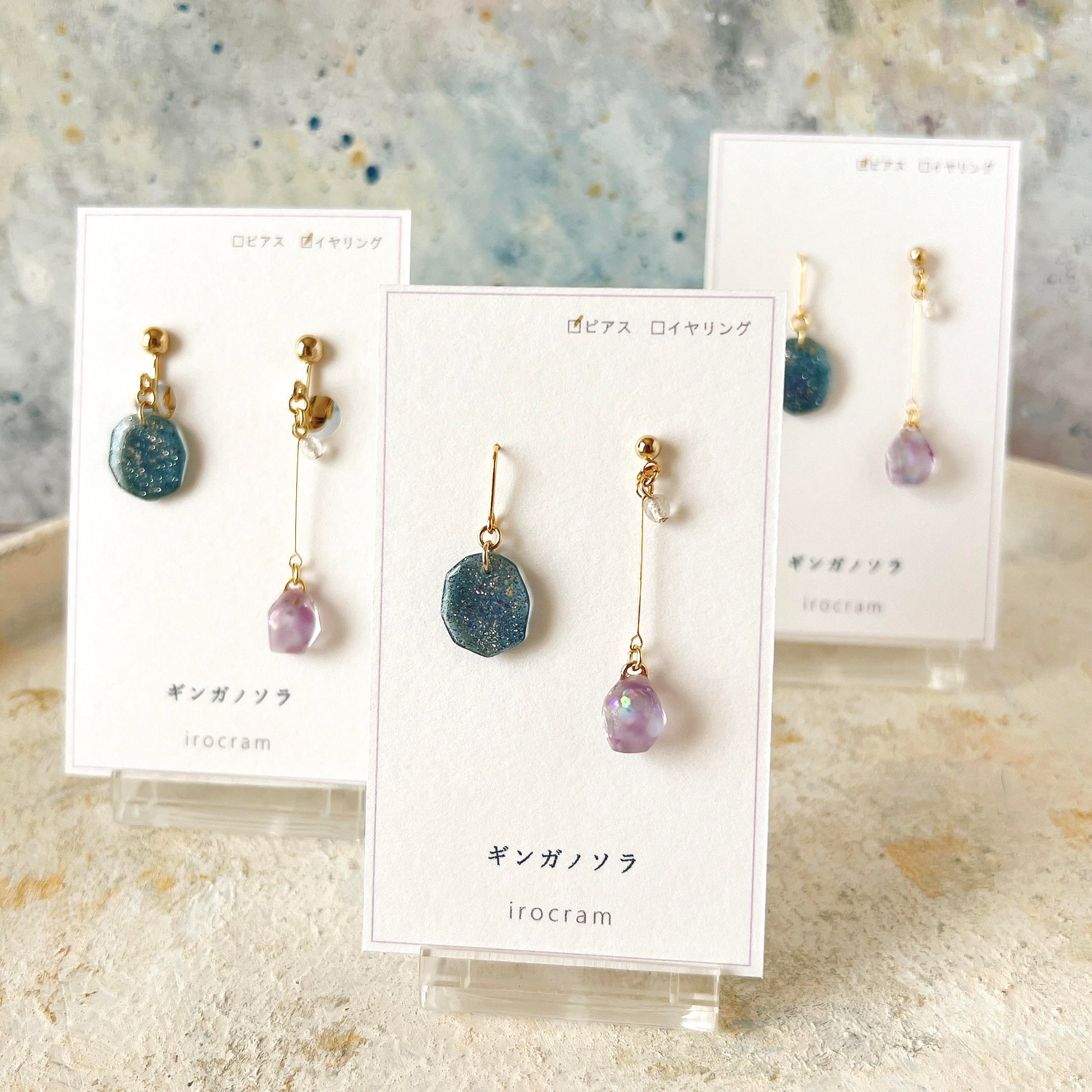 銀河をイメージして製作したソラノシリーズの耳飾りです。