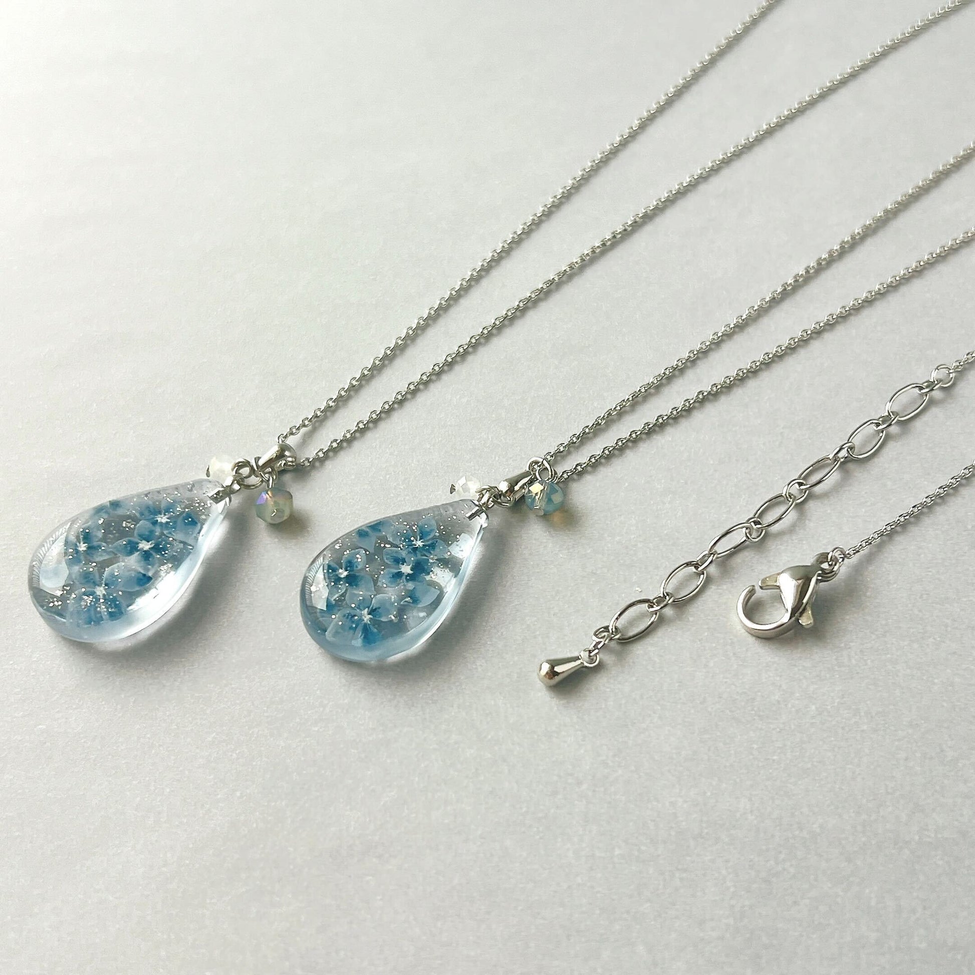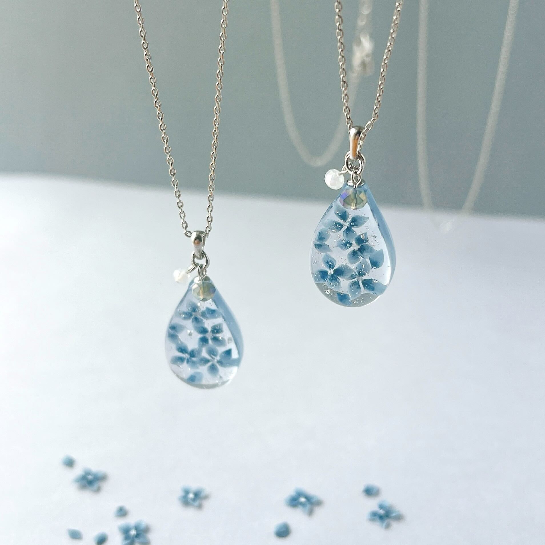 少し暗めで落ち着いた印象の紫陽花のネックレスです。
