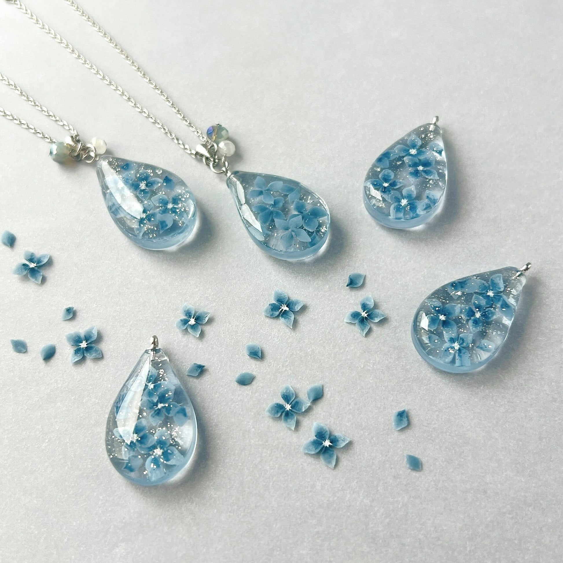 レジンの型から制作したオリジナルの雫型のモチーフに