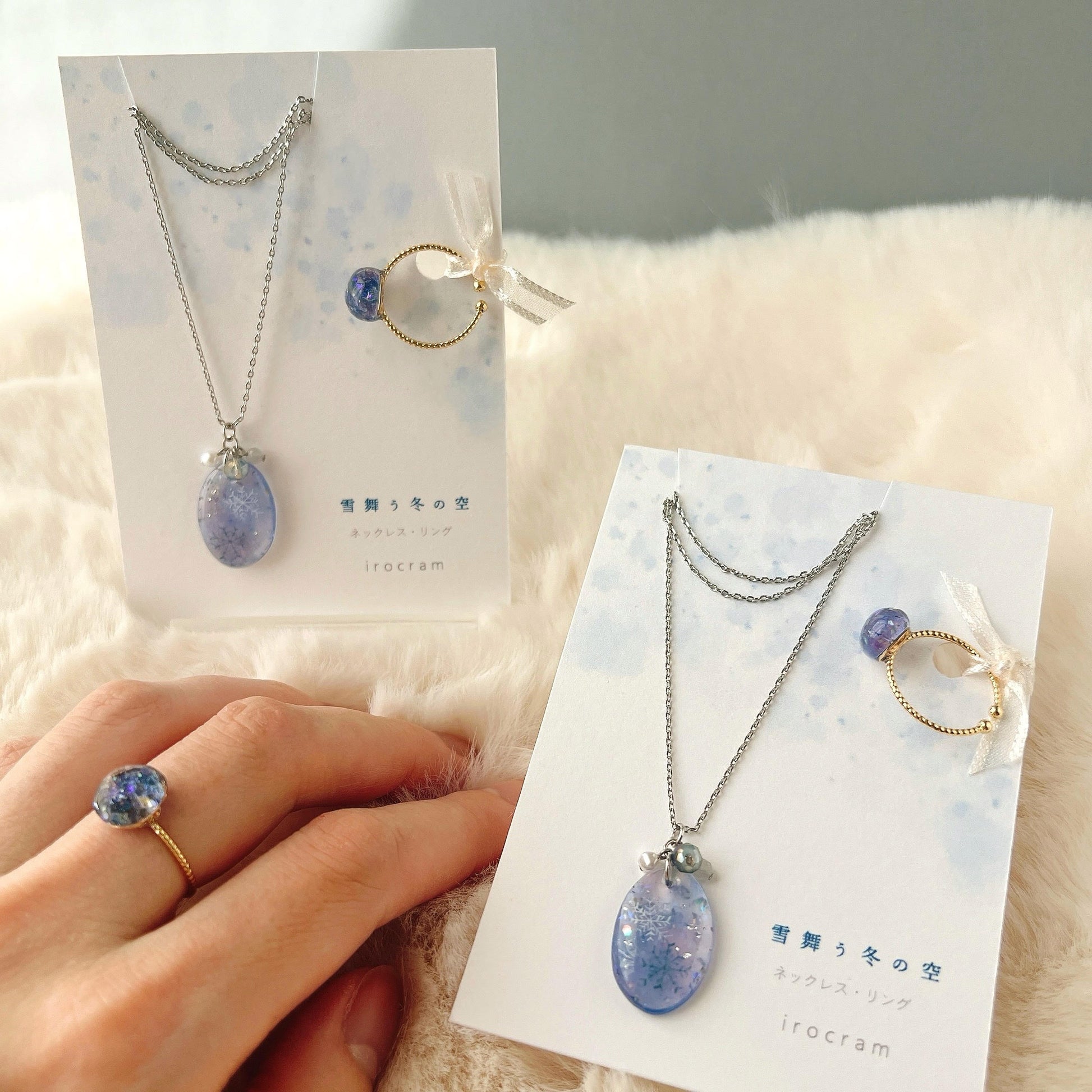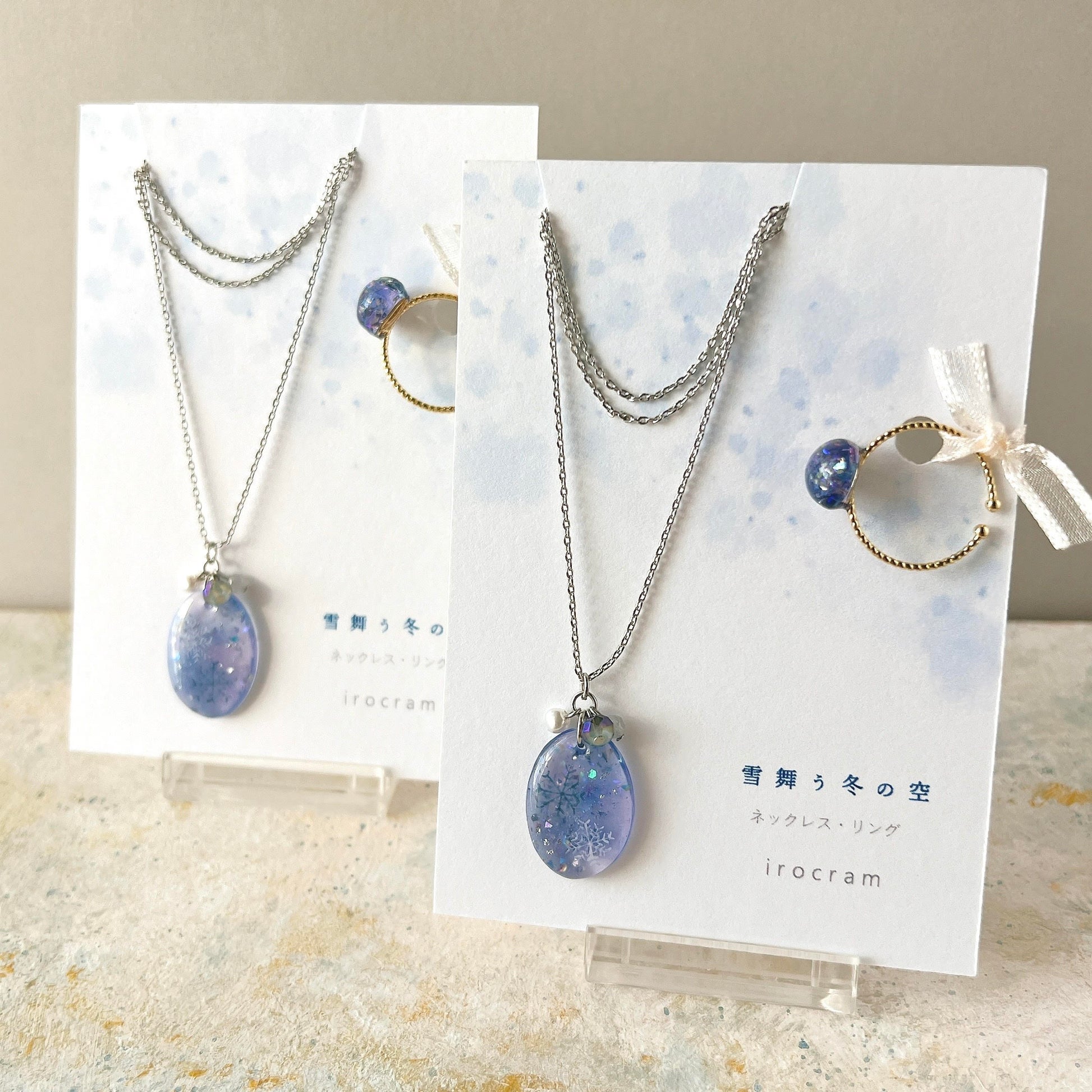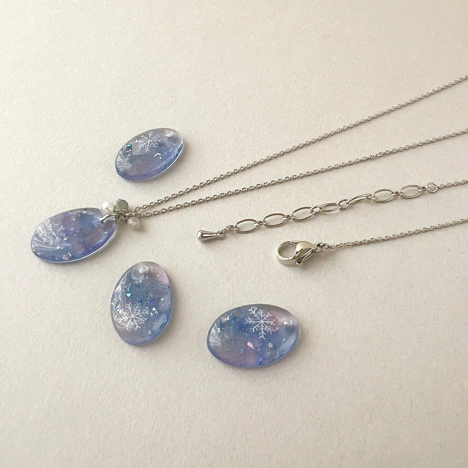 ネックレスの雪の結晶はブルーとゴールドを混ぜた色でも描いており
