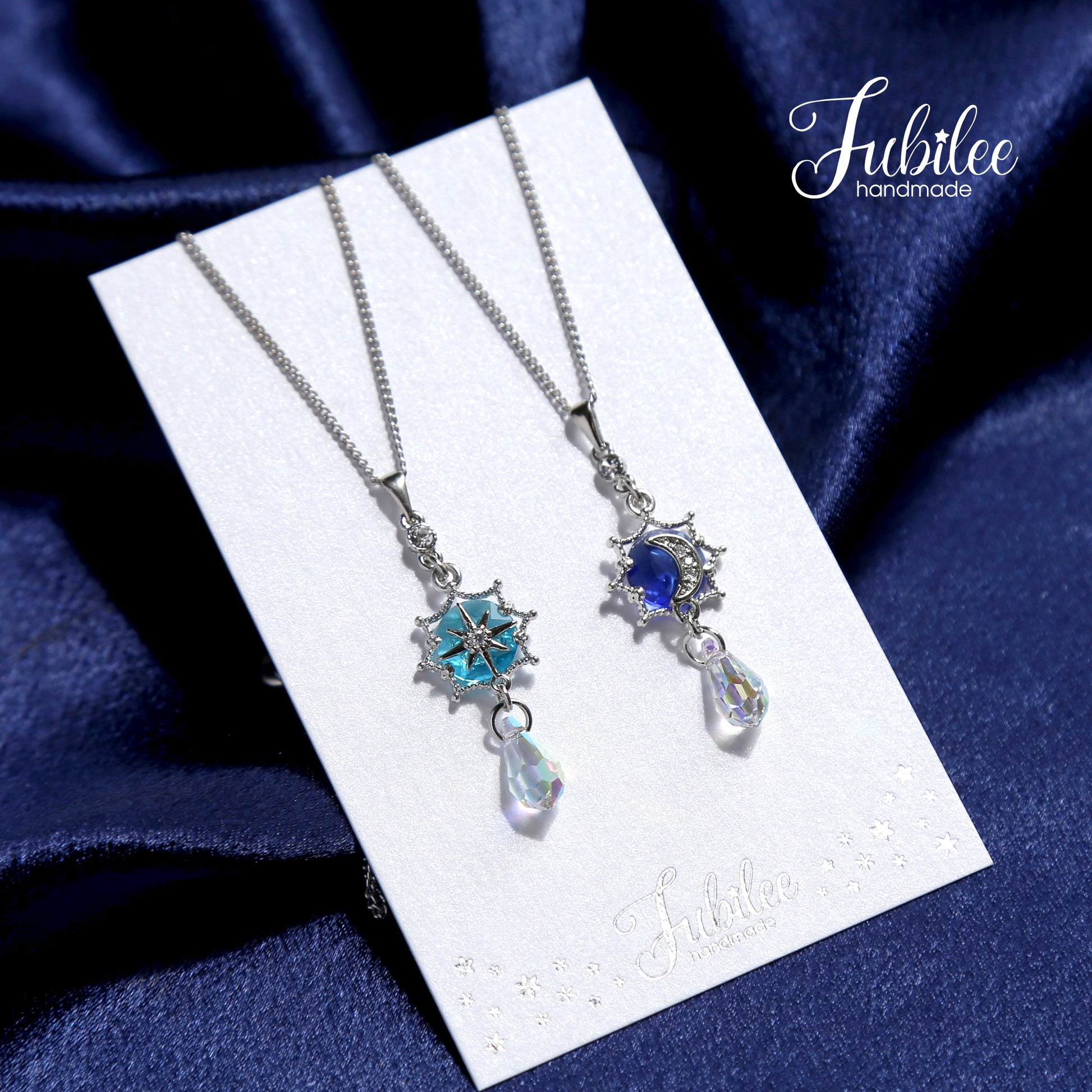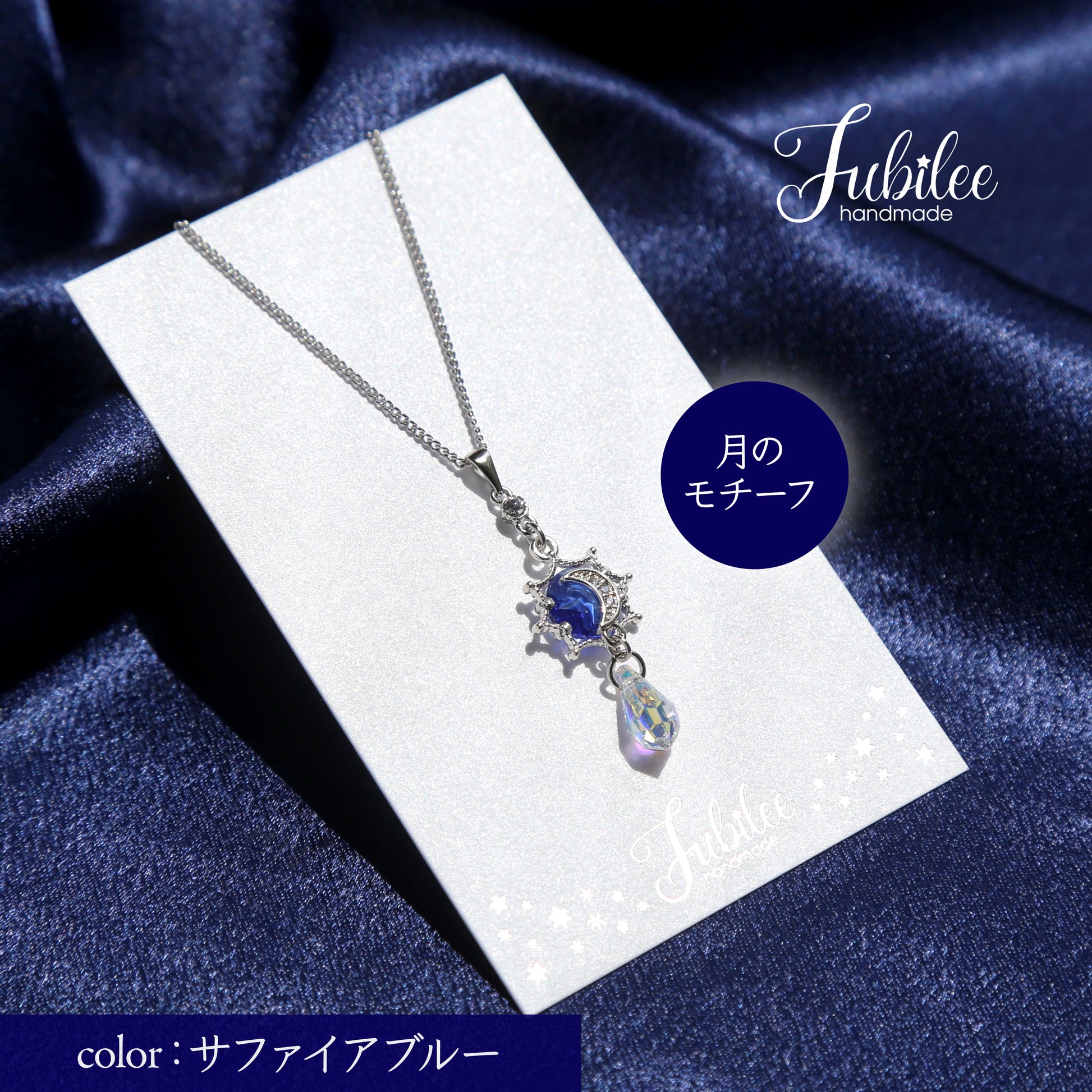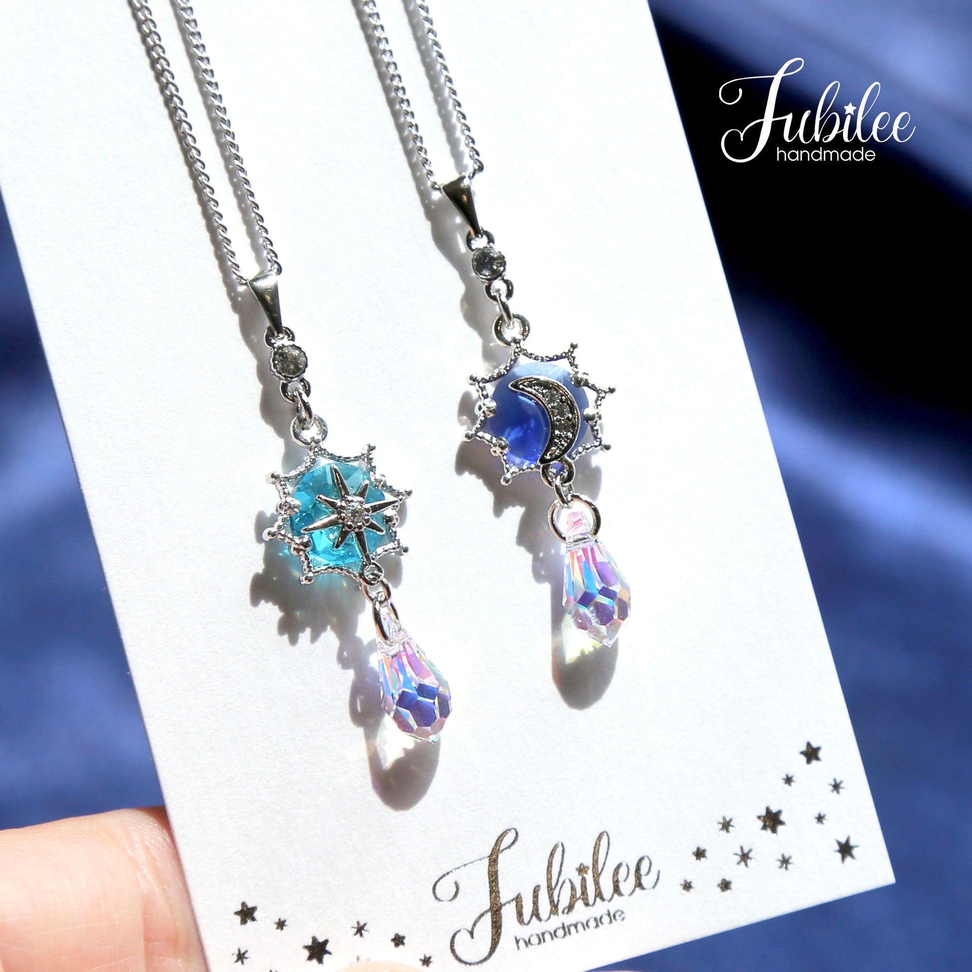 繊細な星と月のモチーフに、雫型のクリスタルガラスを組み合わせました。