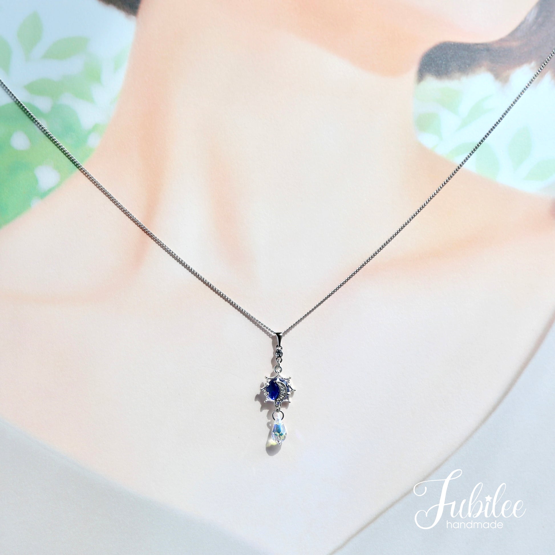 透明感あふれるブルーカラーに、キラキラと揺れるオーロラカラーのクリスタルガラスが幻想的なアクセサリーです。