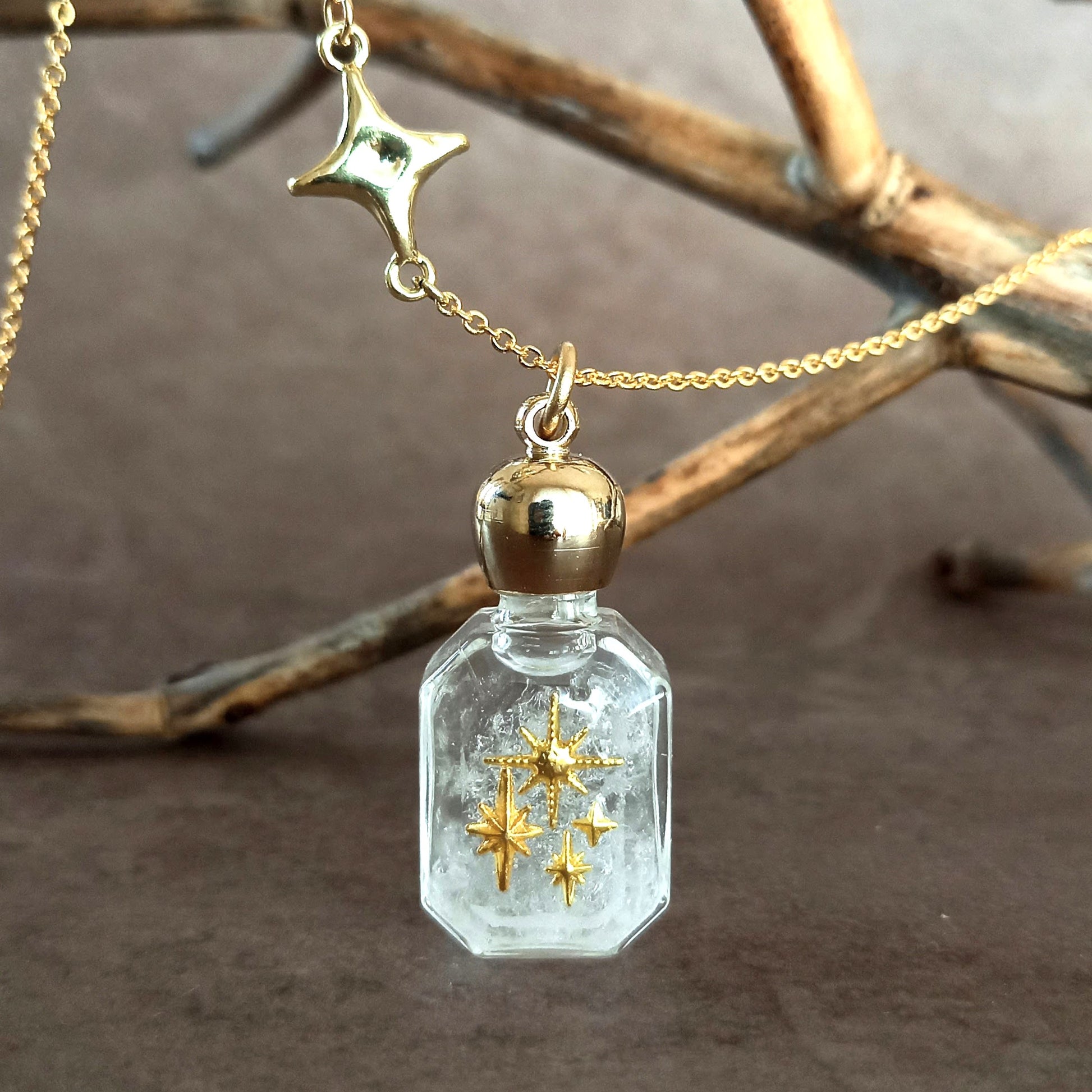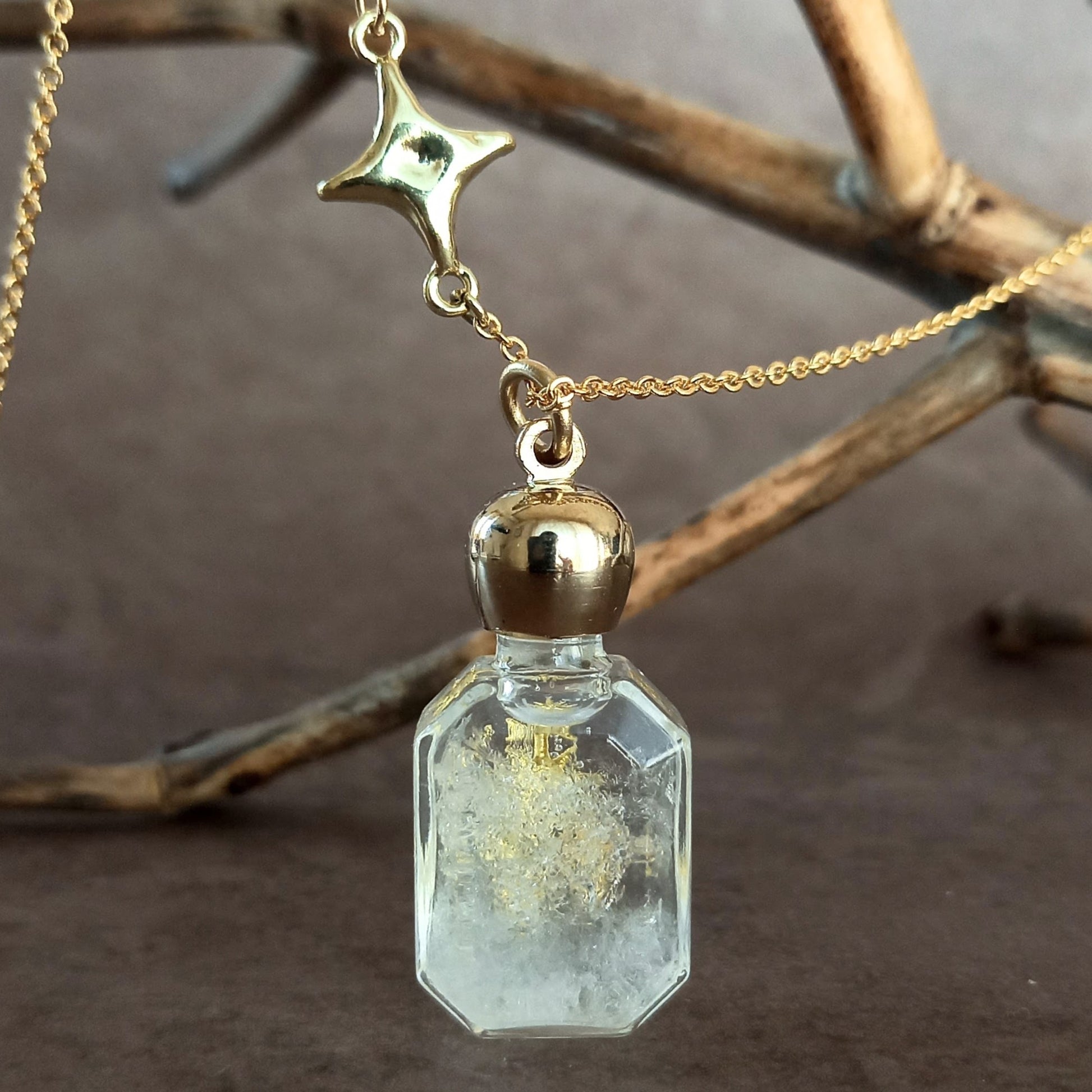 香水瓶ネックレス エメラルドボトル Pleiades【ストームグラス】
