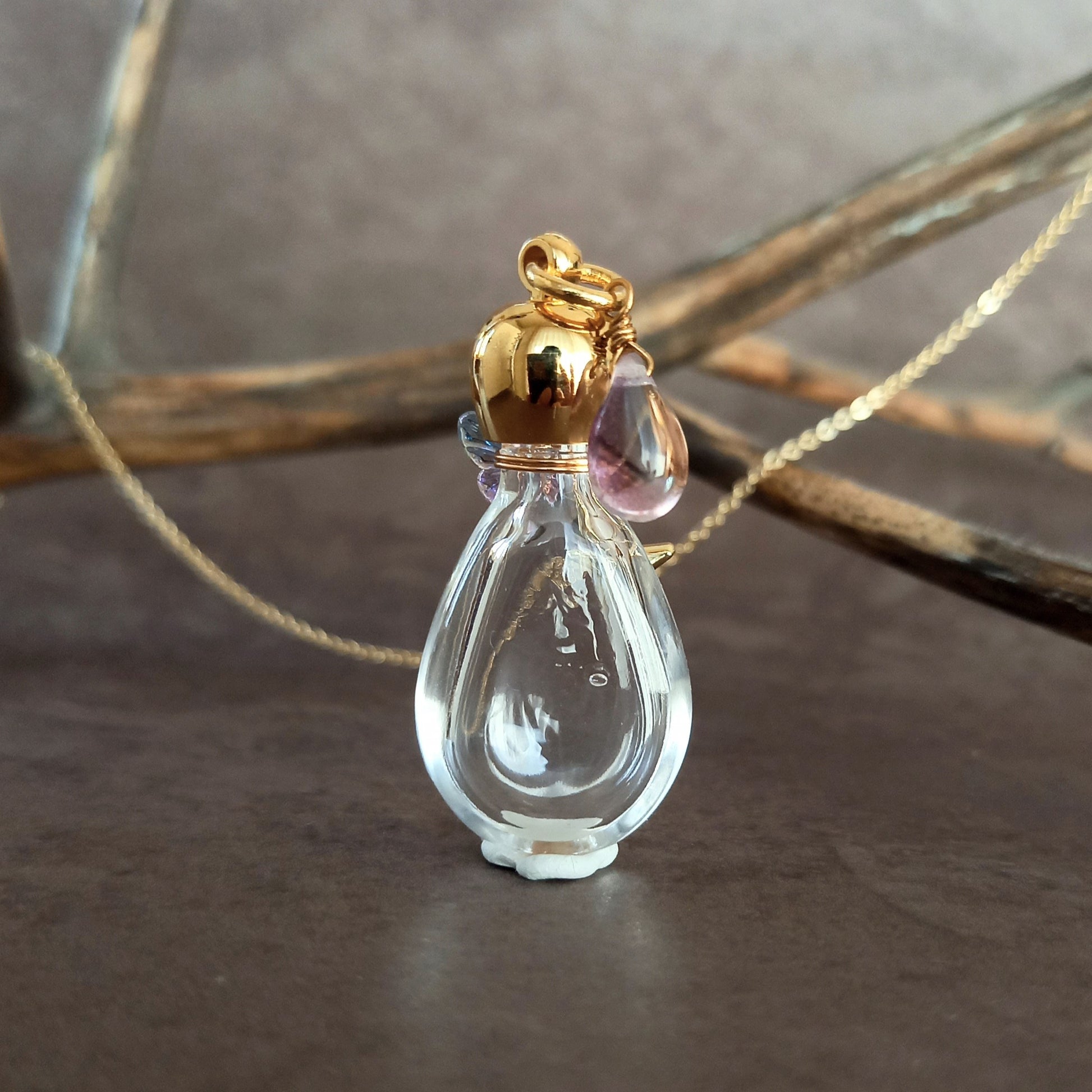 香水瓶ネックレス ドロップボトル Magic Hour【ストームグラス・シャボン玉ネックレスに変更可能】