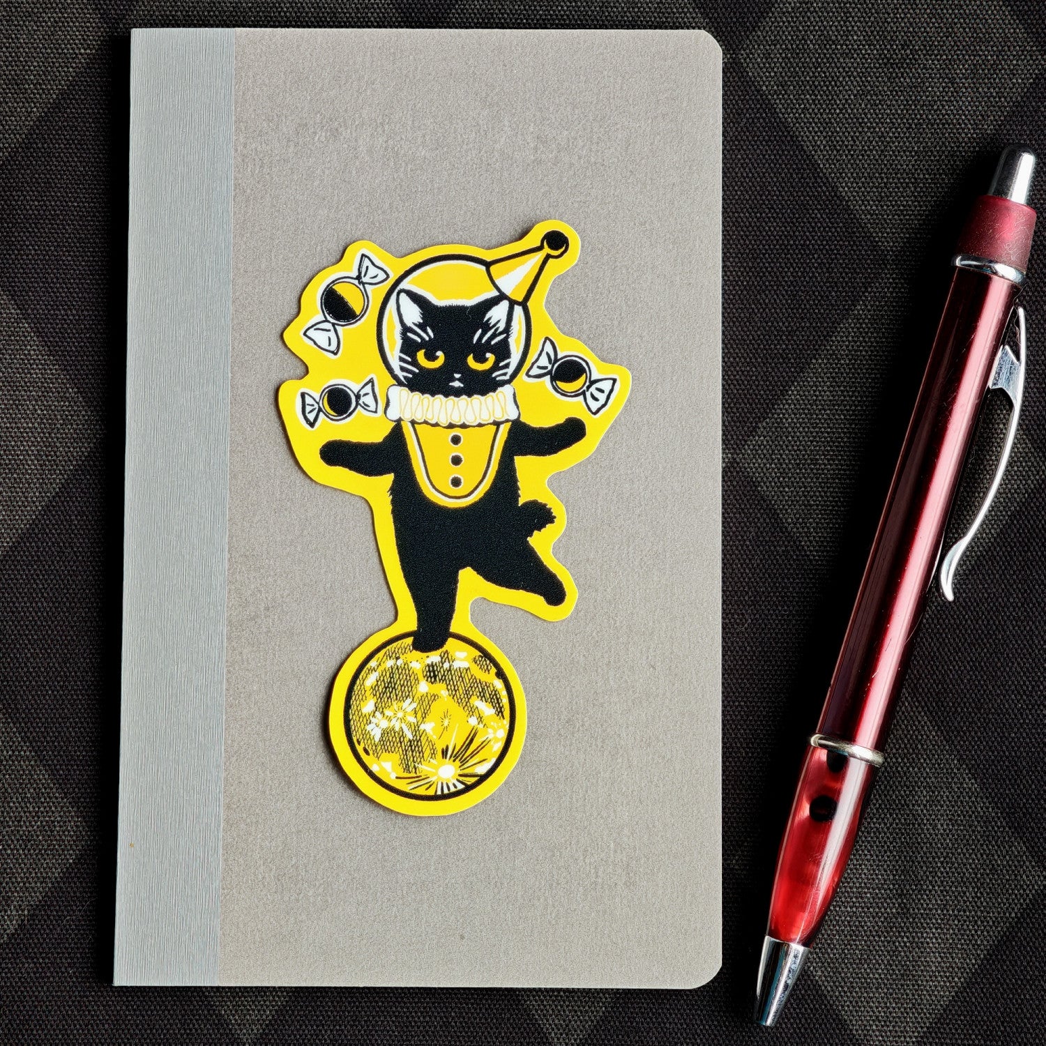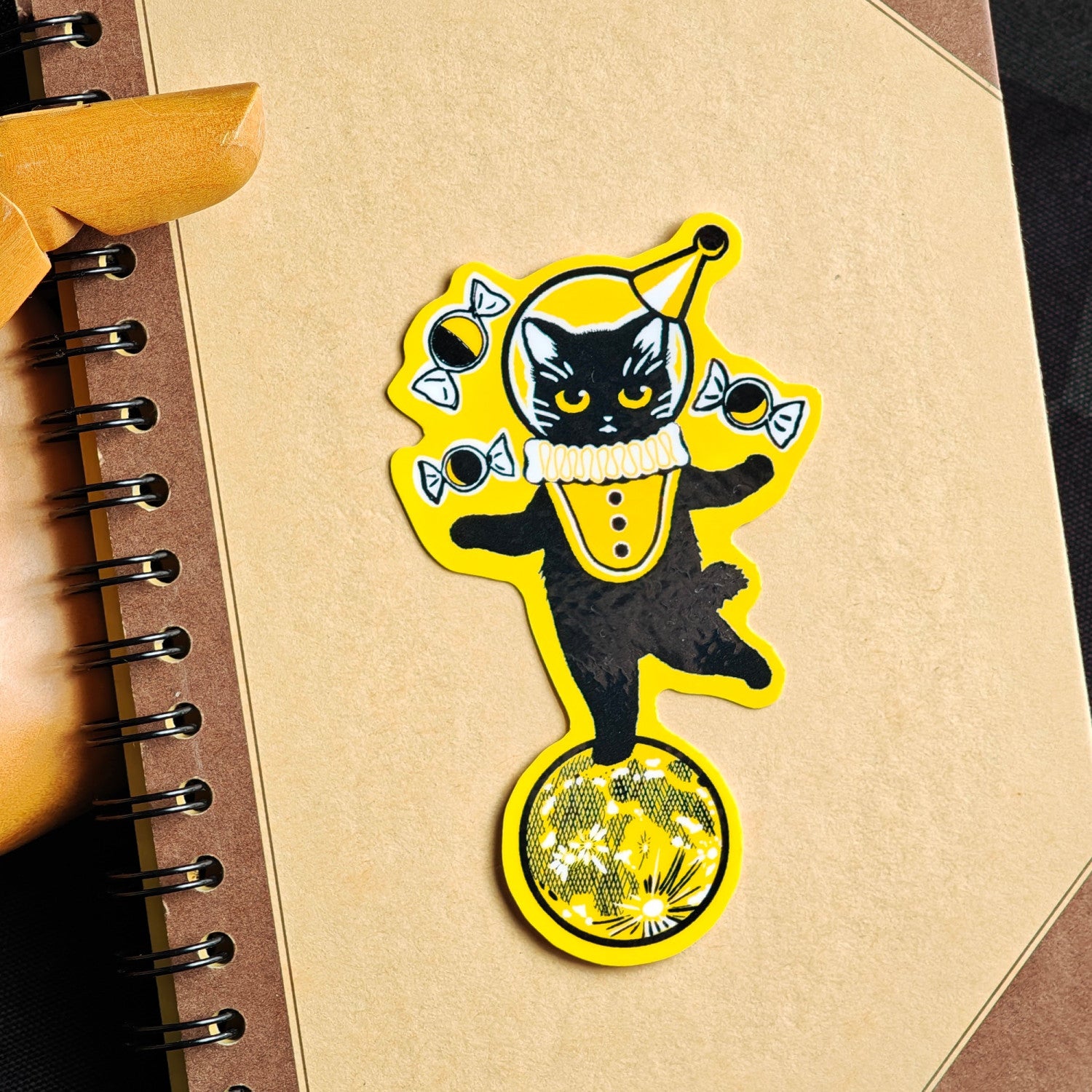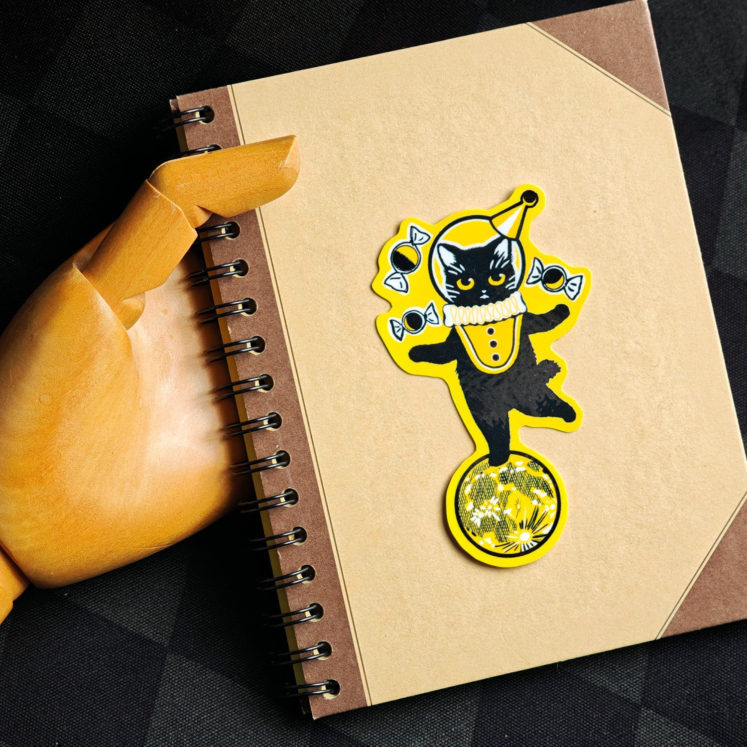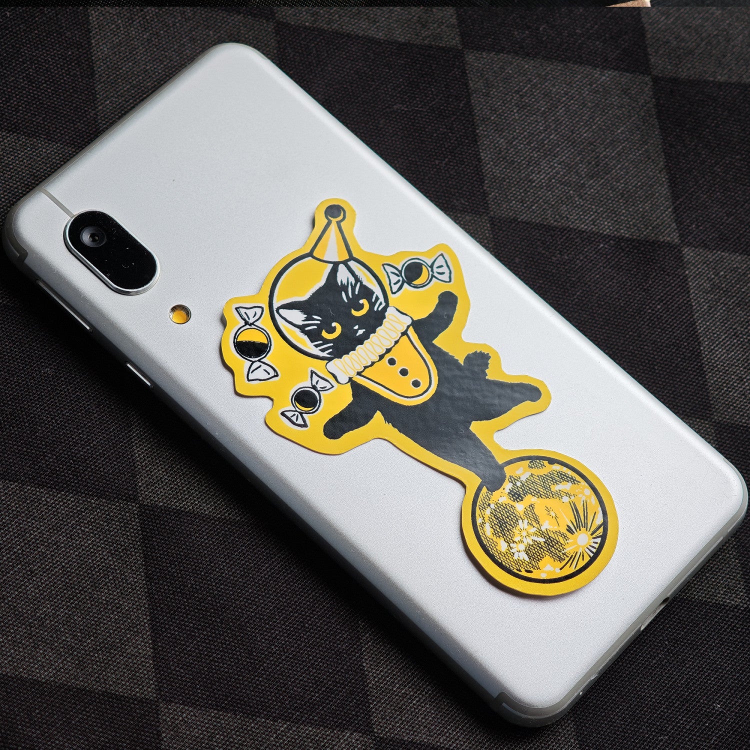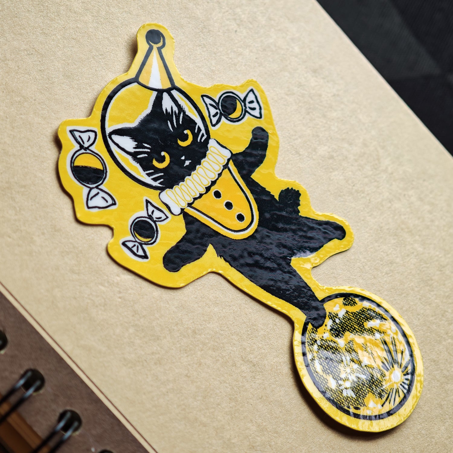 黒猫の眼と背景がキラキラ光るメタリックステッカーです。