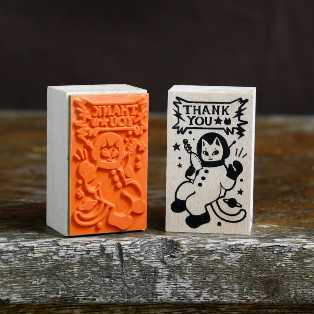 クラフト紙に赤や紺のインクで押すと可愛いです。