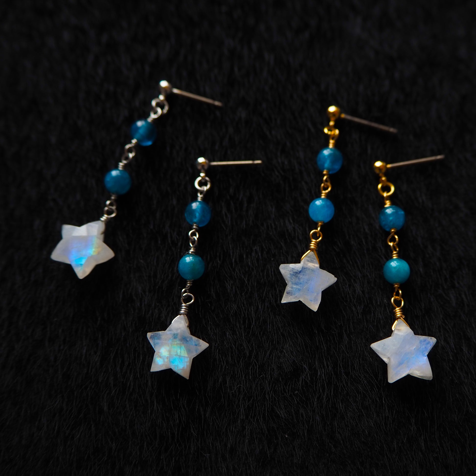 シラーがとても美しい、高品質なムーンストーンの流れ星イメージのピアス&イヤリングです。