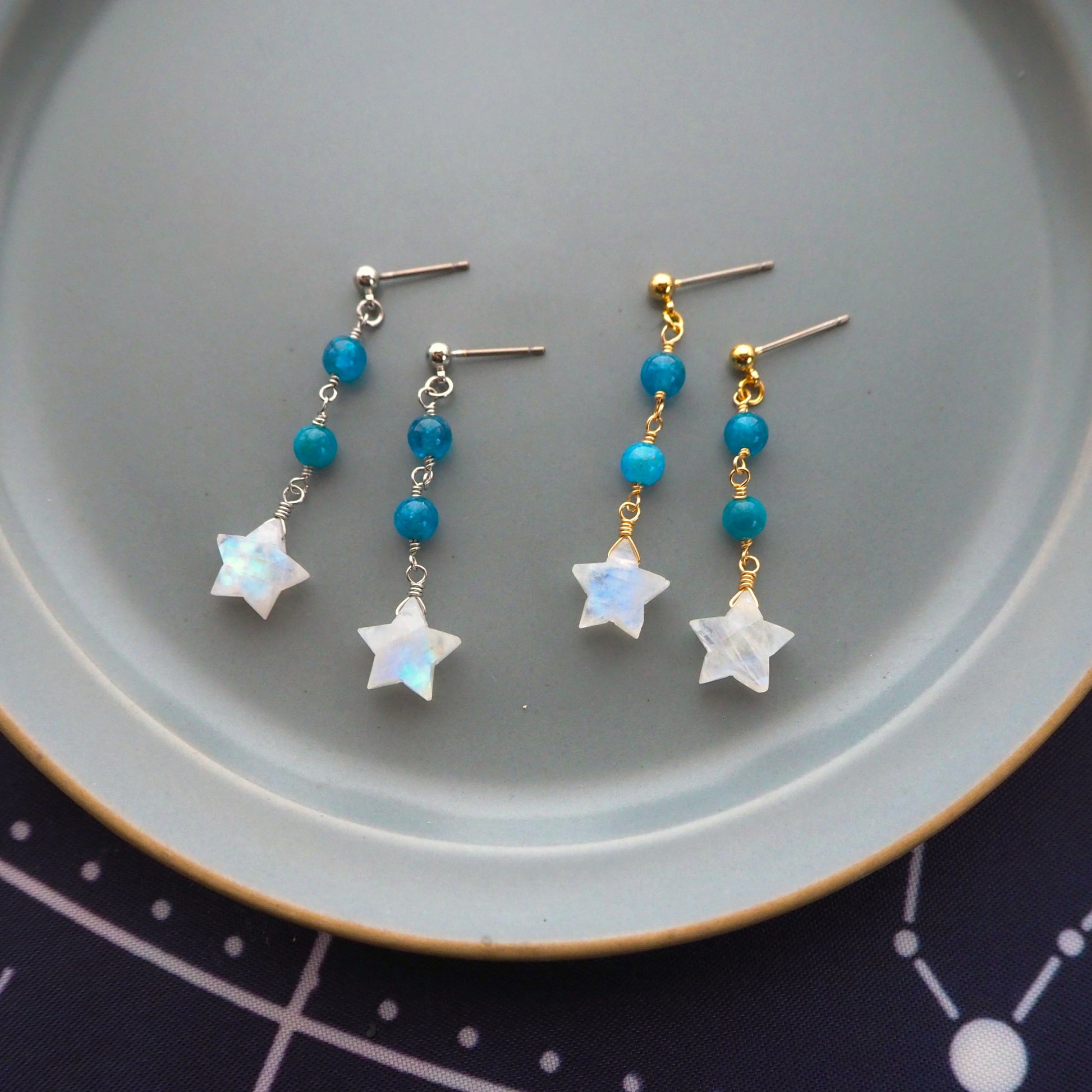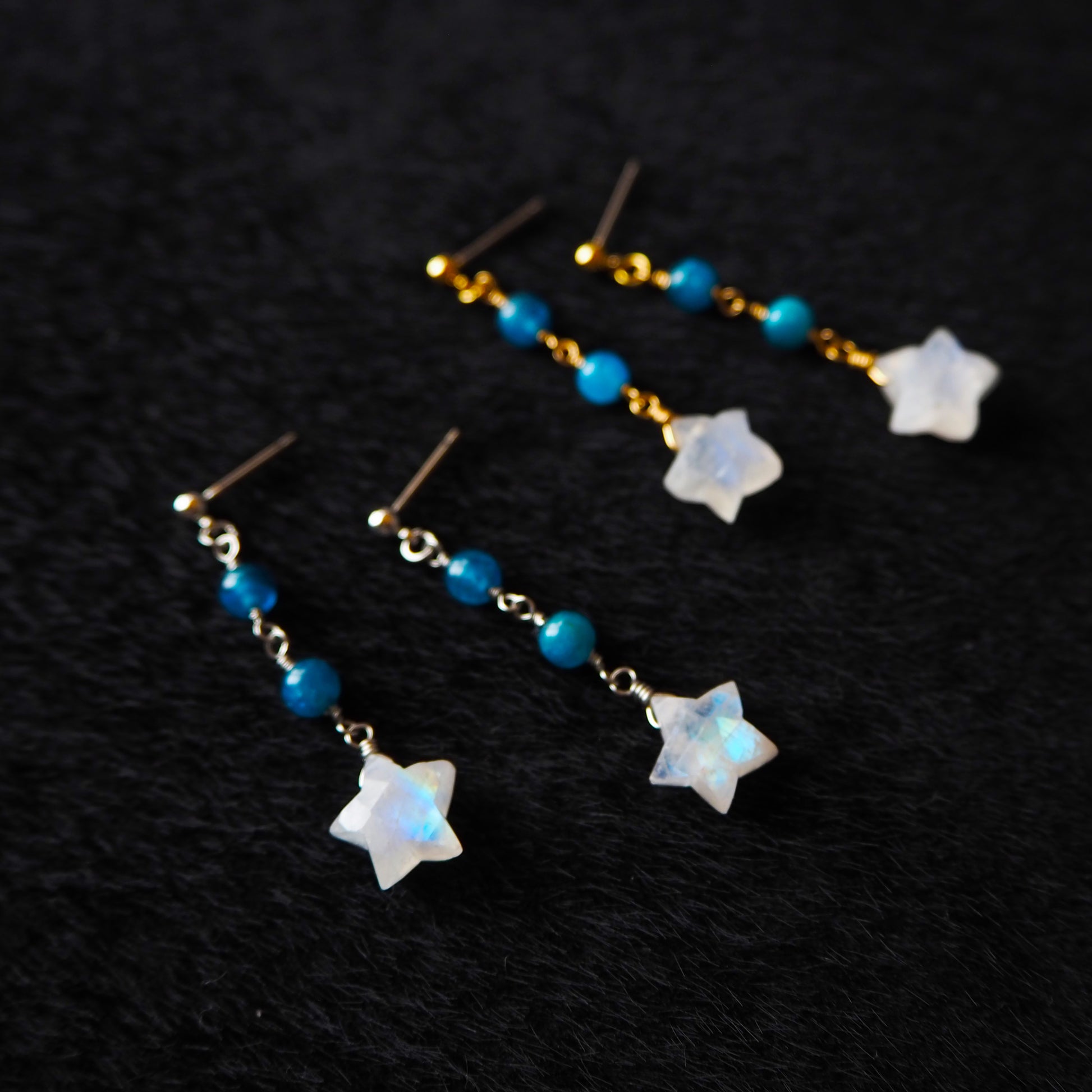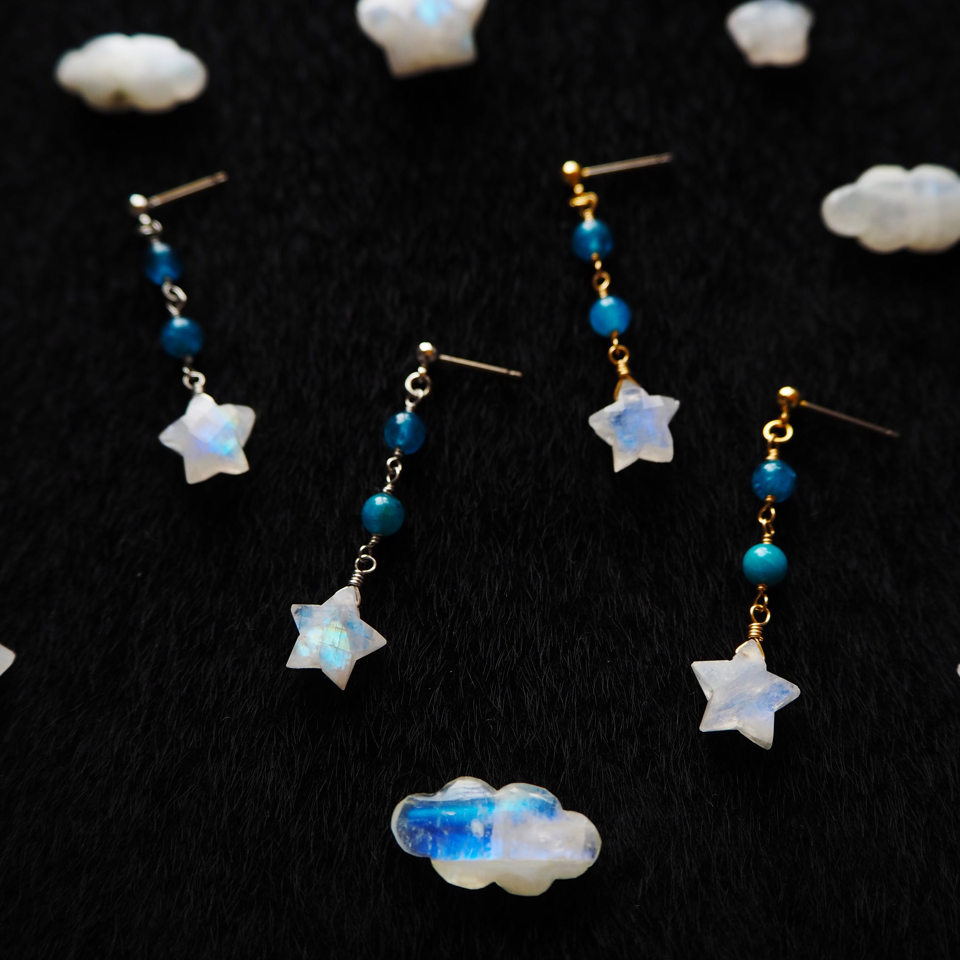 ムーンストーン 流れ星の耳飾り/天然石アクセサリー