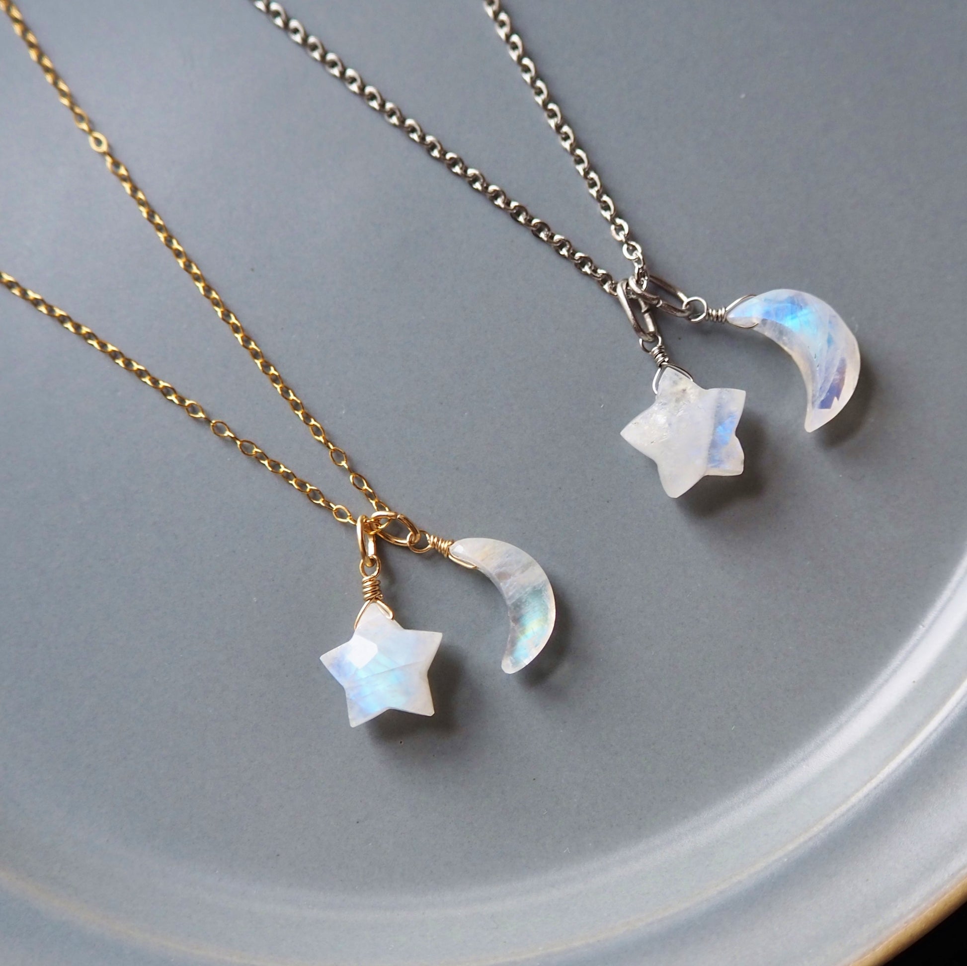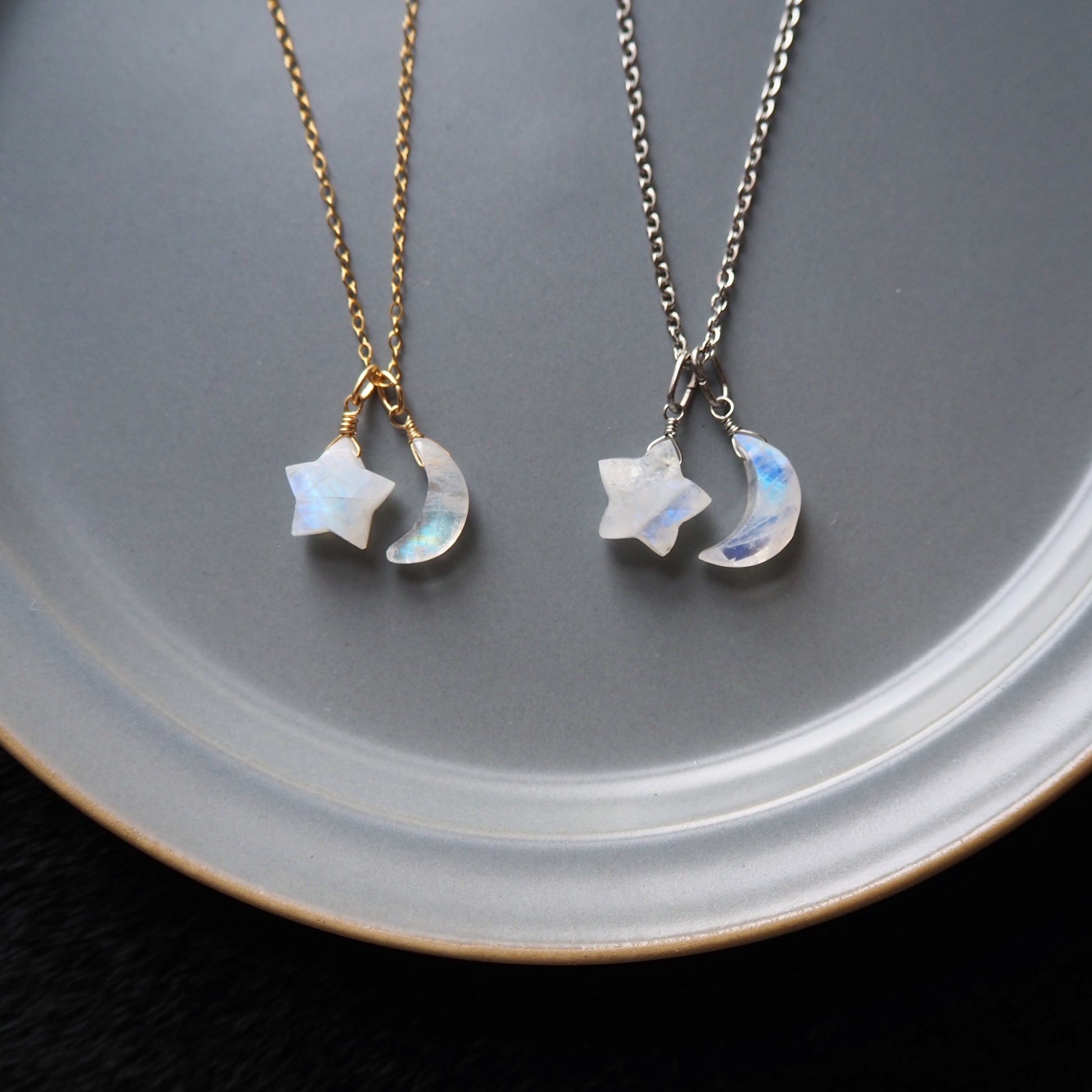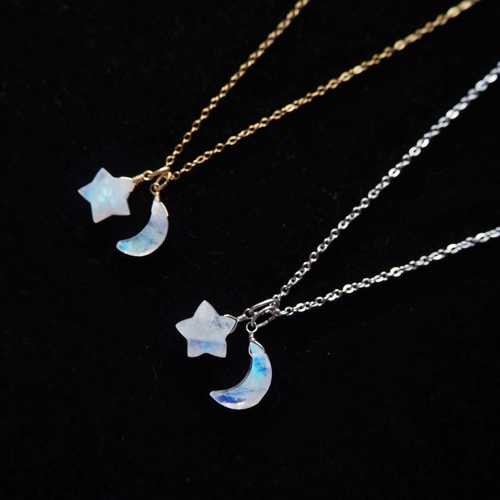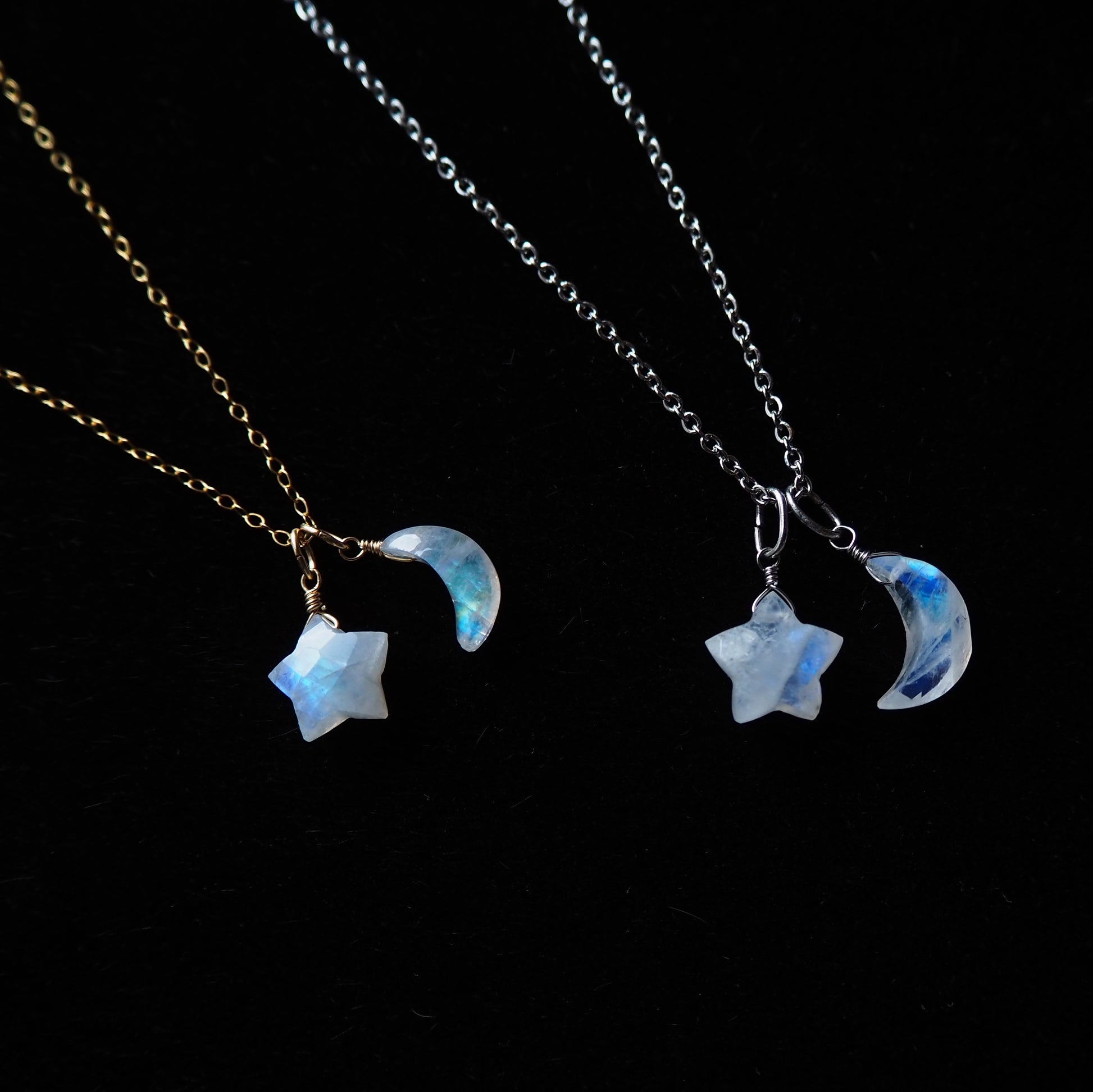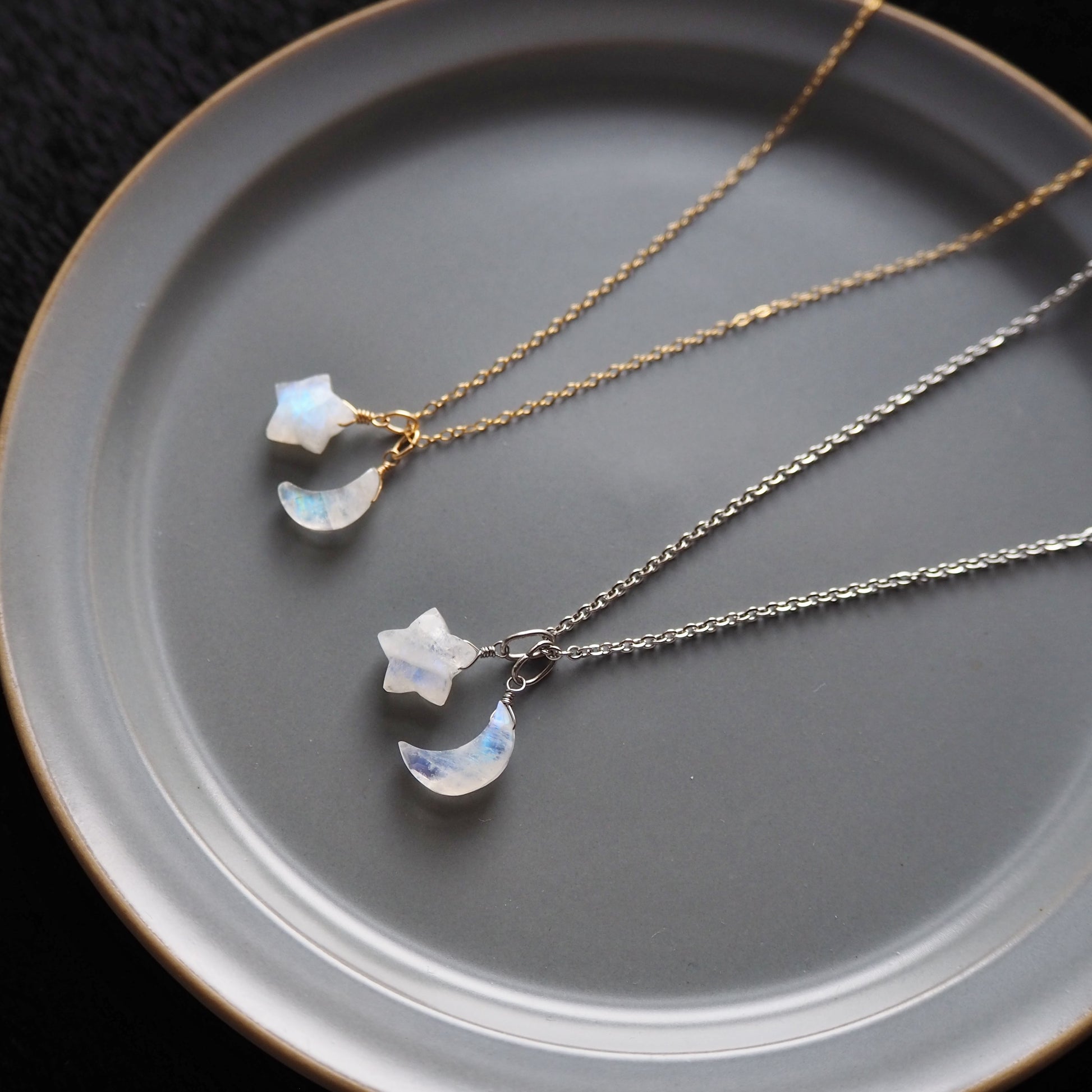 【3WAY】ムーンストーン 星×月ペンダント/天然石アクセサリー