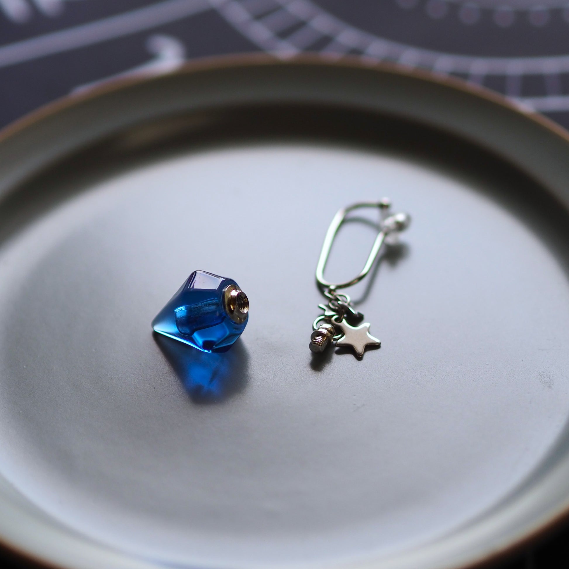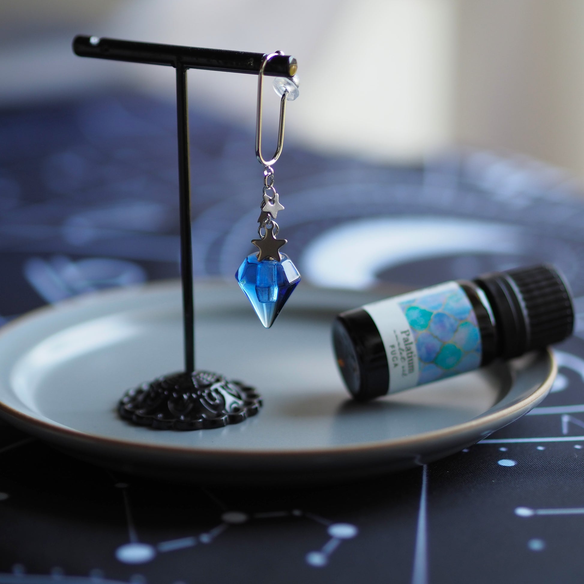 お気に入りの香りを持ち歩ける香水瓶のイヤーフックです。