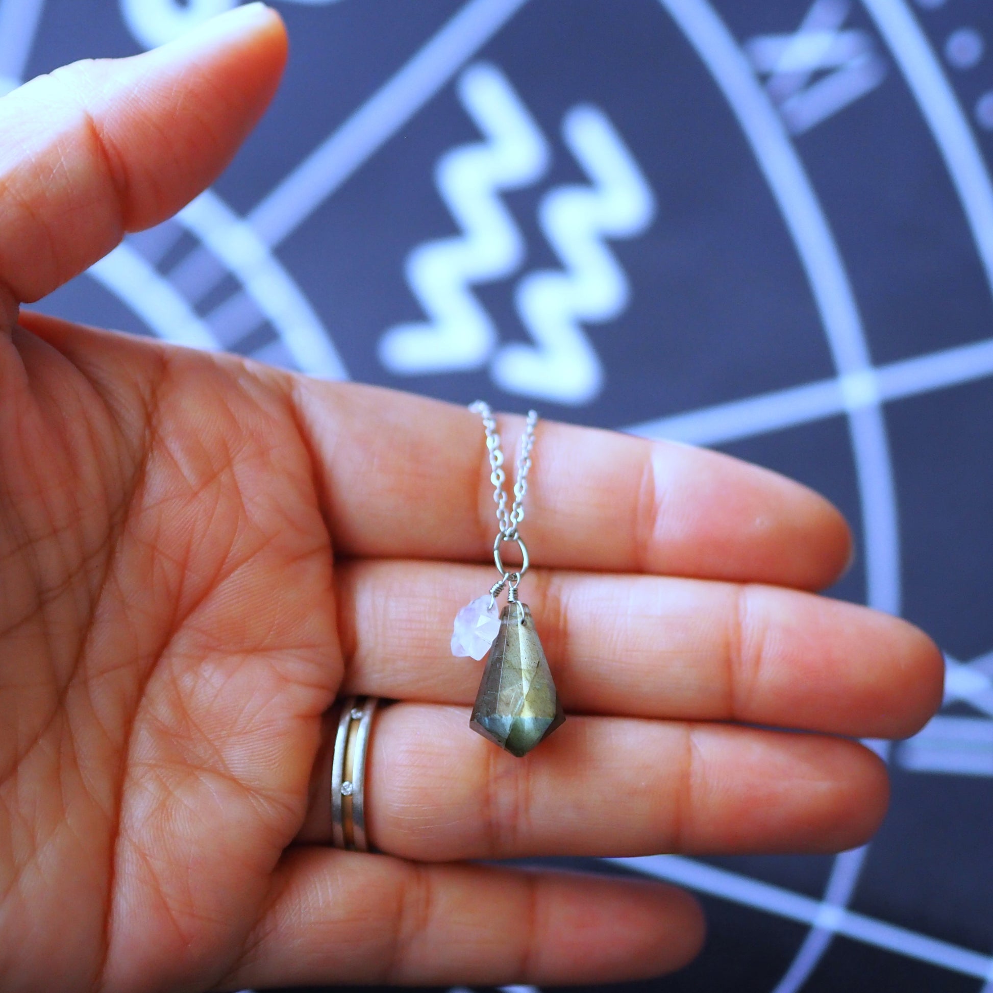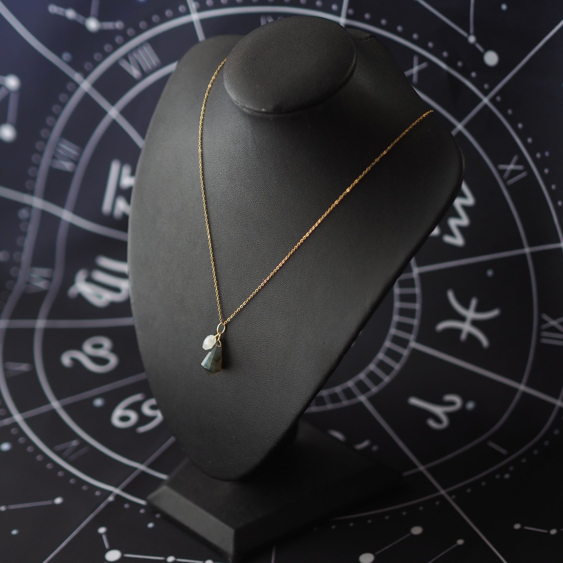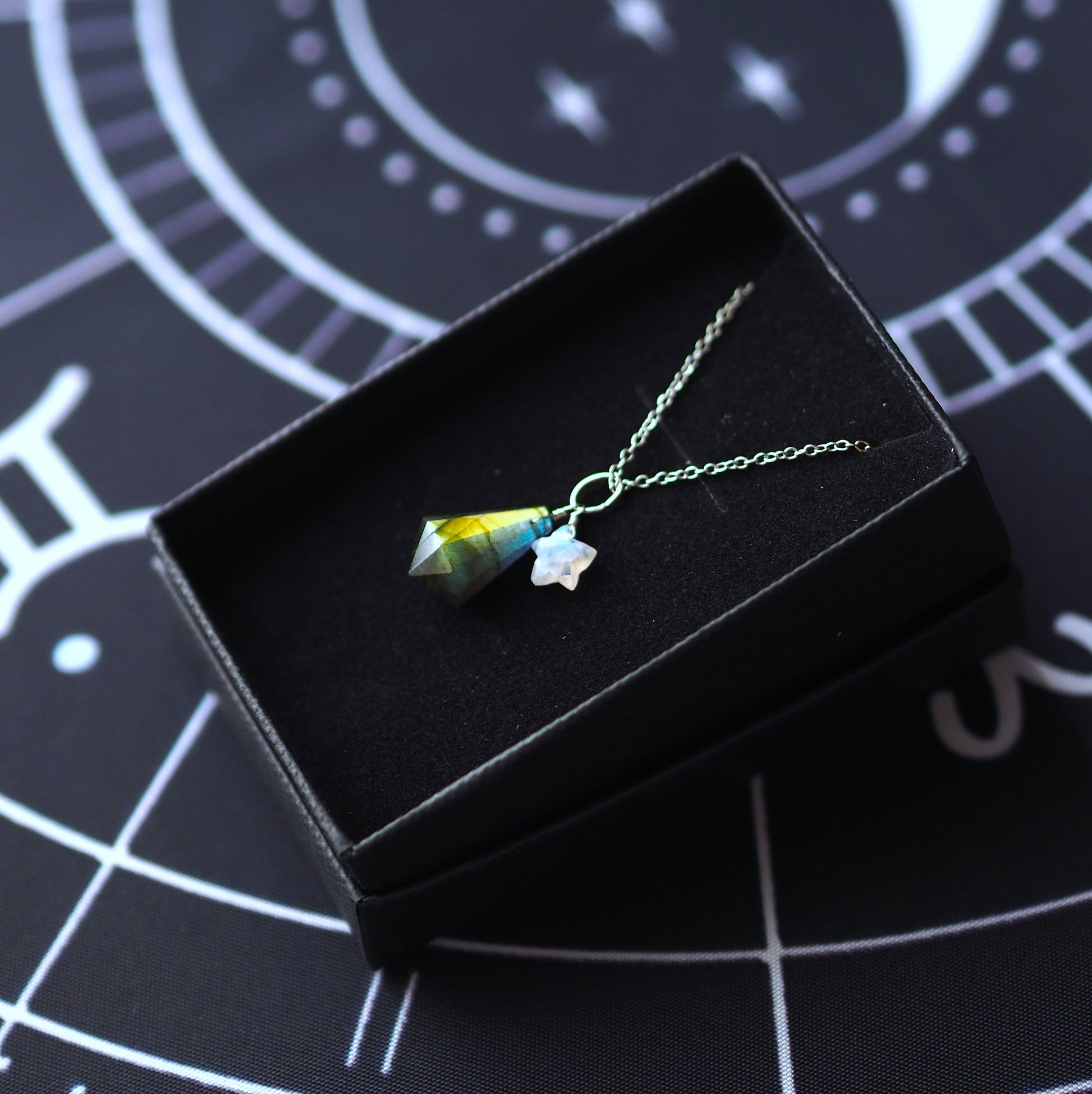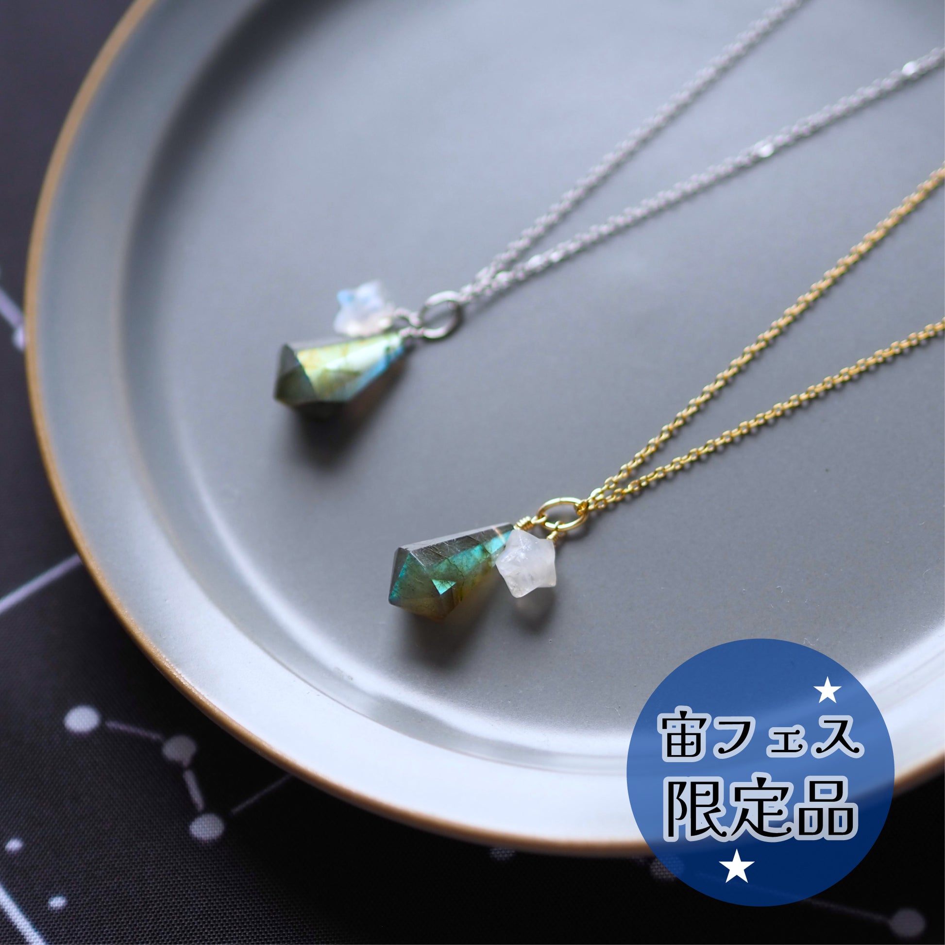 光源によって表情を変える天然石ラブラドライトとムーンストーン。