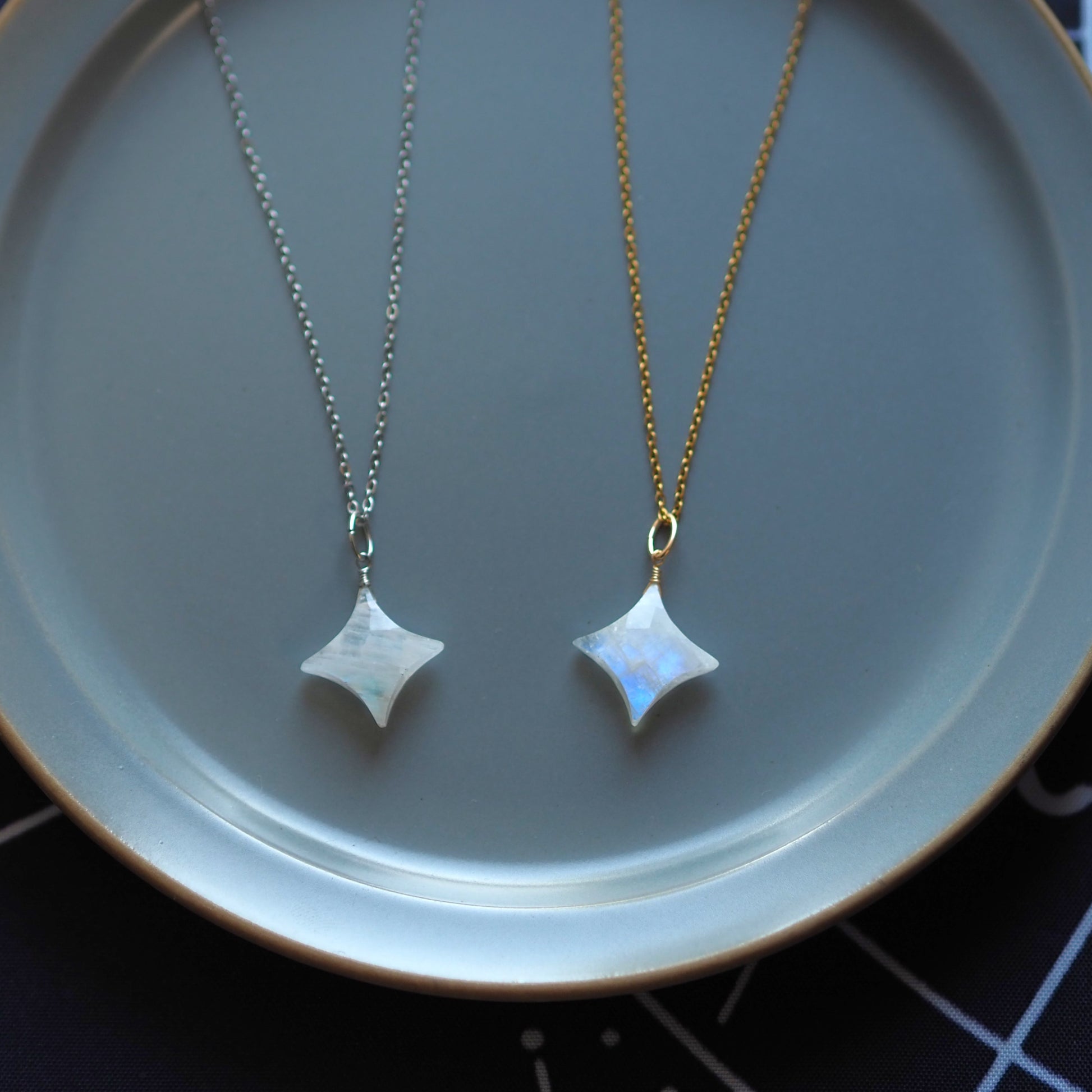 可愛らしいトゥインクル型のムーンストーンのペンダント。